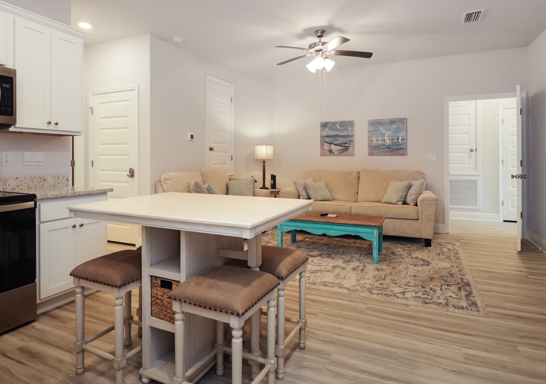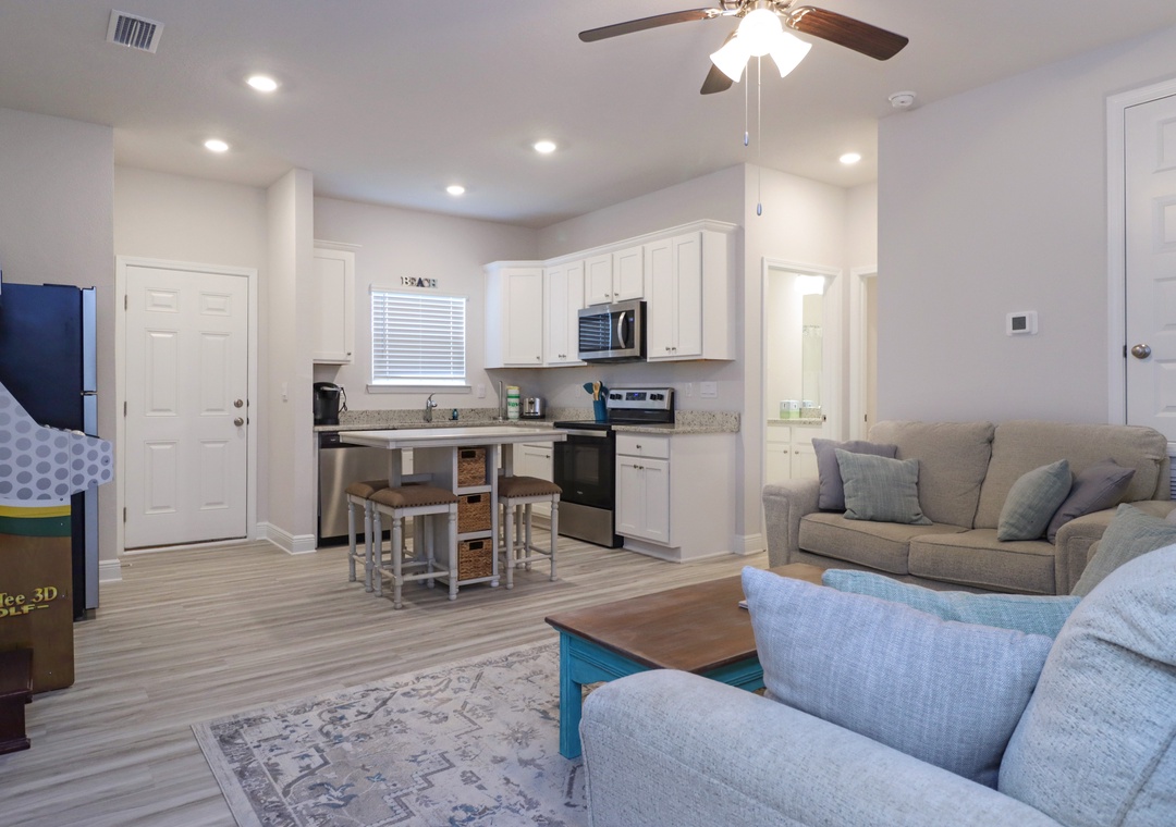 The Location was great and 6 seater street safe golf cart was awesome! We had plenty of beach items to pick from and used the cornhole on the beach while watching the sunset. There was plenty of space and all the comforts from home. The “subdivision downtown area“ within the complex was nice with ice cream shop and coffee shop and restaurants. The check-in was slightly different than normal Airbnb‘s. I’ve stayed in requiring a separate portal to get all your codes and such, so make sure to get access into the portal which is through an email link they send you.
