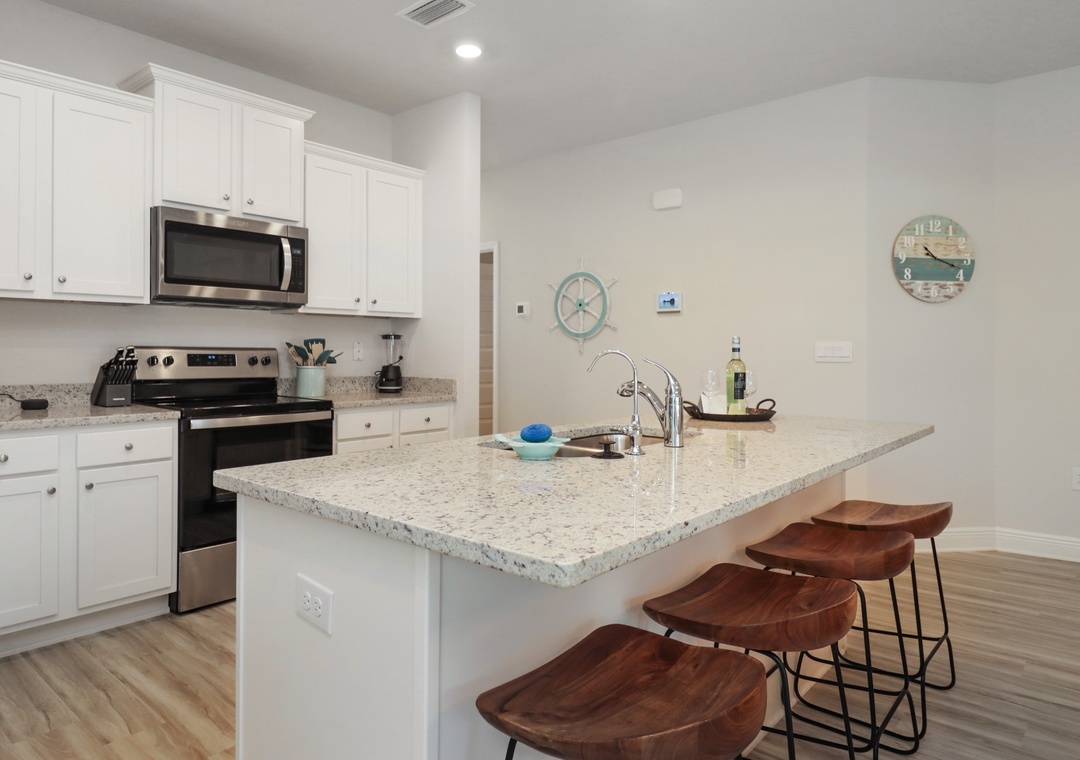 Thank you for your detailed review, Gary. We're glad you found Windmark to be a calm and family-friendly community, and that the golf cart and boardwalk system made getting around easy. We appreciate your feedback on the kitchen and cleanliness and will use it to improve future stays. It's great to hear you enjoyed the pool, beaches, and local amenities. We look forward to welcoming you back to Windmark.Visit Florida Beaches staff