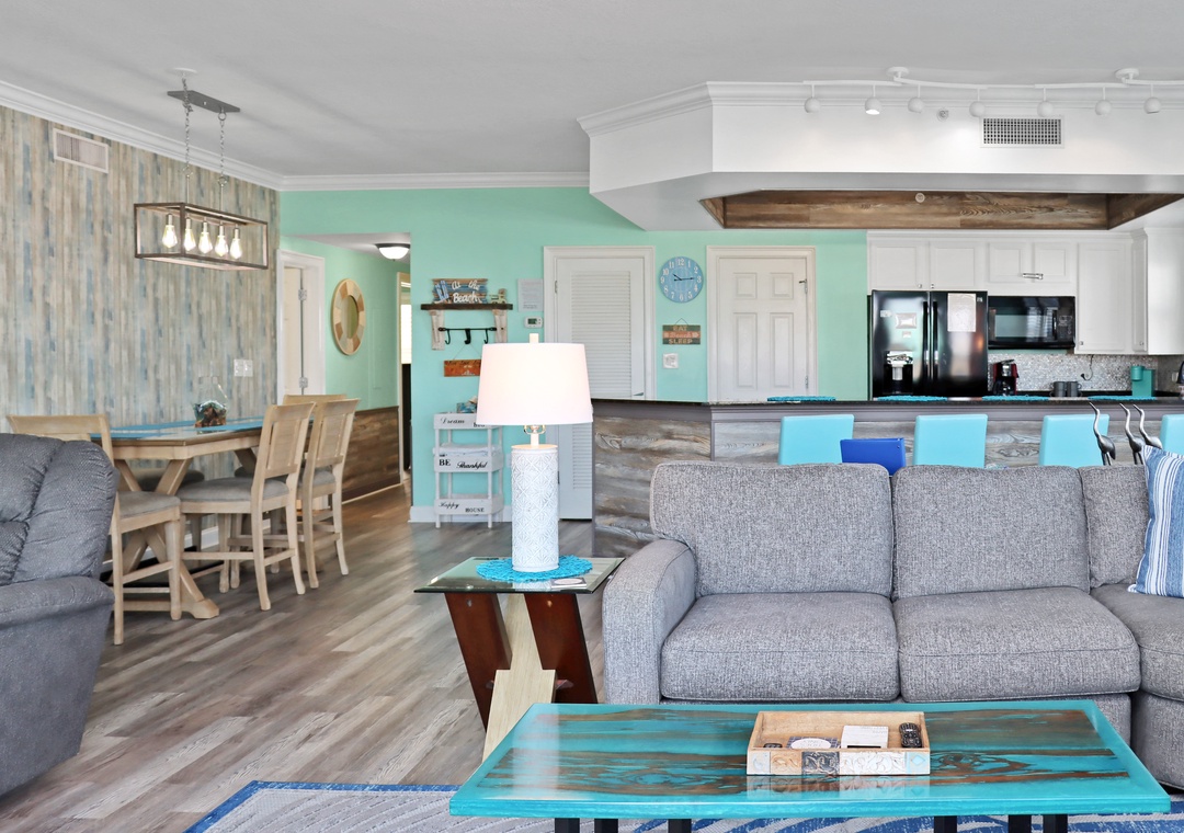 Discover the ultimate beachside retreat at Paradise Shores 200, a luxurious 3-bedroom, 3-bathroom condo that promises an unforgettable stay. As a corner unit, this condo boasts expansive decks on two sides, accessible through sliding glass doors in the master bedroom and living room, perfect for soaking in the breathtaking sunsets on the western side of the building. Designed with an open floor concept, this single-level unit comfortably accommodates up to eight guests, offering ample space for relaxation and enjoyment. Each room provides stunning beach views, ensuring a serene coastal atmosphere throughout. Additionally, the two guest bedrooms overlook the vibrant community pool, located just one floor down, adding a touch of fun to your stay. Whether you're lounging on the decks or exploring the beautiful surroundings, Paradise Shores 200 is your ideal home away from home.