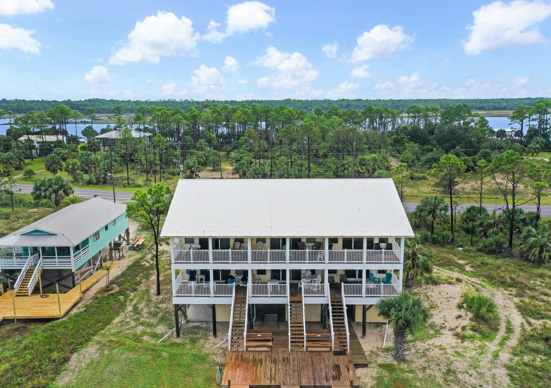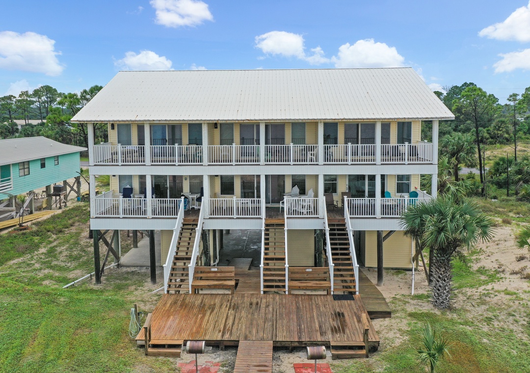 Click Here To Learn More!Pelican Landing 2 is in a Gulf Front building of three townhouses. The property sits on Indian Pass Road and has a very wide, private beach just beyond its steps. Located less than a mile from the Famous Indian Pass Raw Bar and about 2 miles from the Indian Pass Boat Launch, you’ll be tucked in between the only two other places you’ll need on vacation. There’s lots to discover along the natural shoreline of Indian Pass. Surf fishing, crabbing, shelling, boating, watching sunsets, building bonfires or even catching a sunrise. These are favorites of visitors to this quiet step off the beaten path.