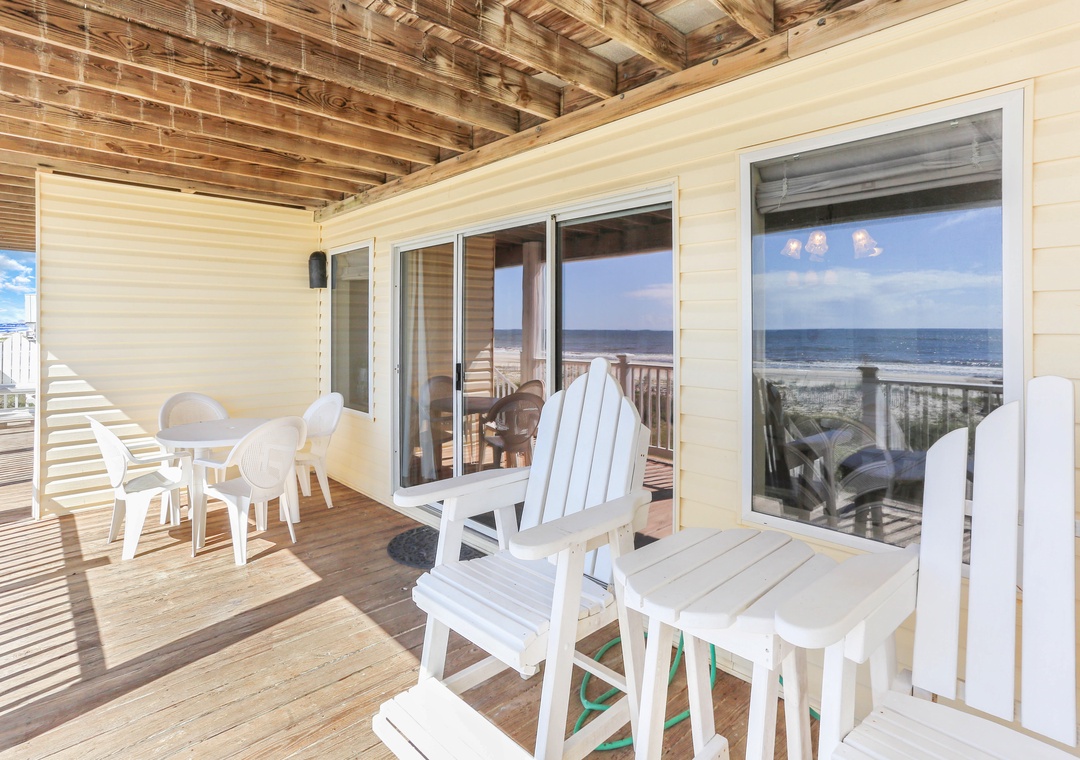 This was an ok place to stay. The views were excellent! The cleanliness was livable, but not outstanding. The hoses outside to wash sand off were a plus! Outlets outside for fish knives would have been helpful! The bathrooms are huge, but the showers are so tiny and I'm not even 5 foot tall! The dolphins swimming by daily is exciting and the pelicans are plentiful! Fishing was great, lots of sharks and catfish caught! The water...was muddy and looked like chocolate milk and we ended up with a mud pit in front of the most awesome viewing deck!! We did get some high surfs due to Elsa for a few hours that brought some of the mud up! But it was stuck there for the remainder of our vacation. The outdoor walkway and deck to the ocean was amazing and if you walk a mile down to the point, you might find sand dollars! This beach should have been placed on a top 10 list for shells! The only thing that would have made this better was clearer water and less sharks! The murky water made it a little worrisome to wade too far out, especially after the number of sharks we caught daily!