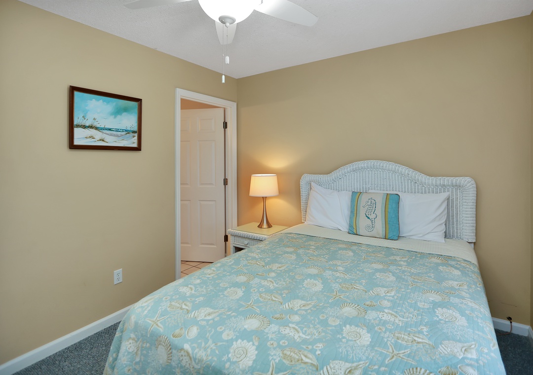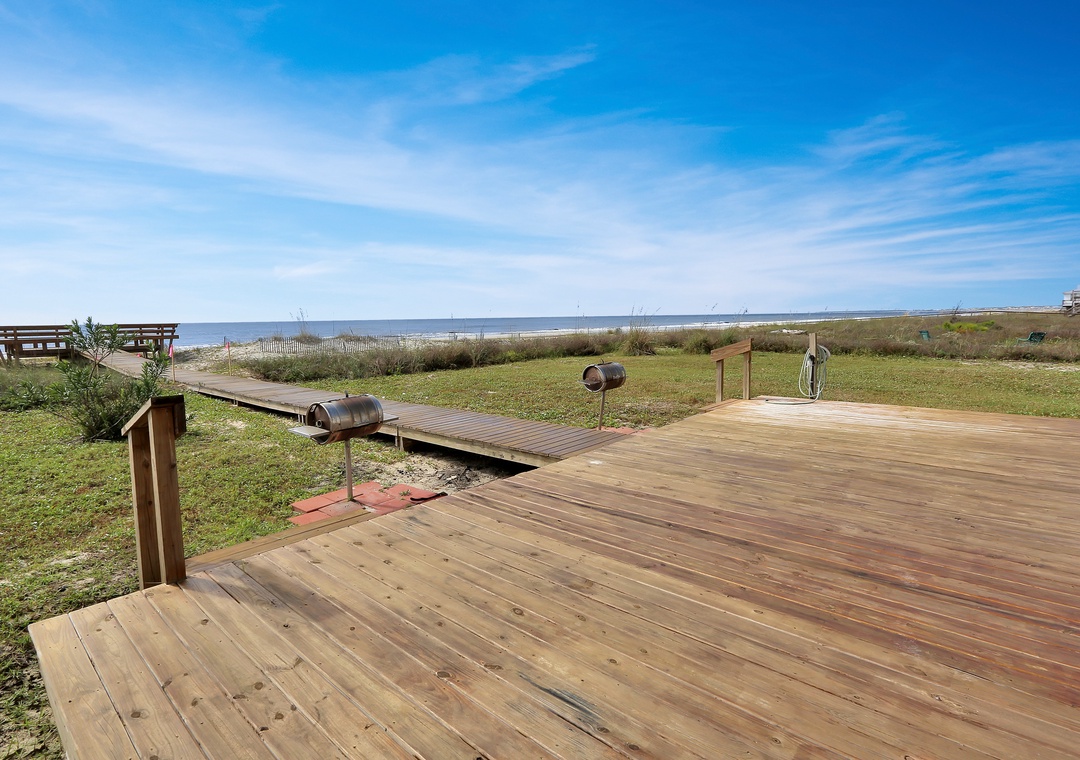 Click Here To Learn More!Floor Plan: 1st Level-Living room with TV, DVD player, radio and sliding glass doors that open out onto a gulf front covered balcony with raised balcony chairs to see over the balcony rail; dining area, all electric kitchen with breakfast bar and Bedroom #1 – w/Queen size bed connected to the living room through a full bath with large separate shower & comfort height toilet; 2nd Level-Bedroom #2 – 2 twin beds and a full bath with a large separate shower; comfort height toilet and a separate relaxing Jacuzzi tub that adjoins Bedroom #3 – a large gulf front master bedroom with king-size bed, gulf front balcony, flat screen TV, VCR/DVD, and a utility room w/washer and dryer. All rooms are equipped with ceiling fans. Ground Level Covered paved parking. Outside shower, stainless steel charcoal grill, dune walkover with comfortable seating area over the dune.