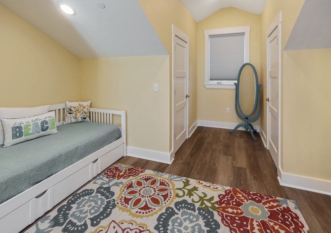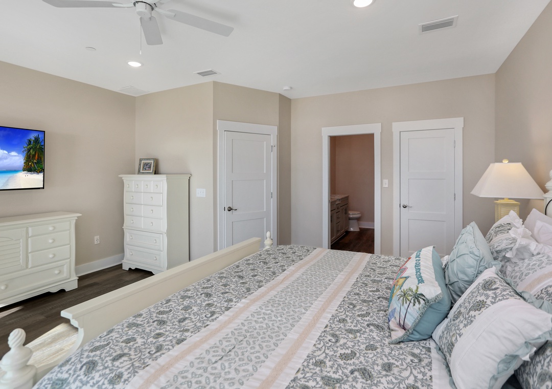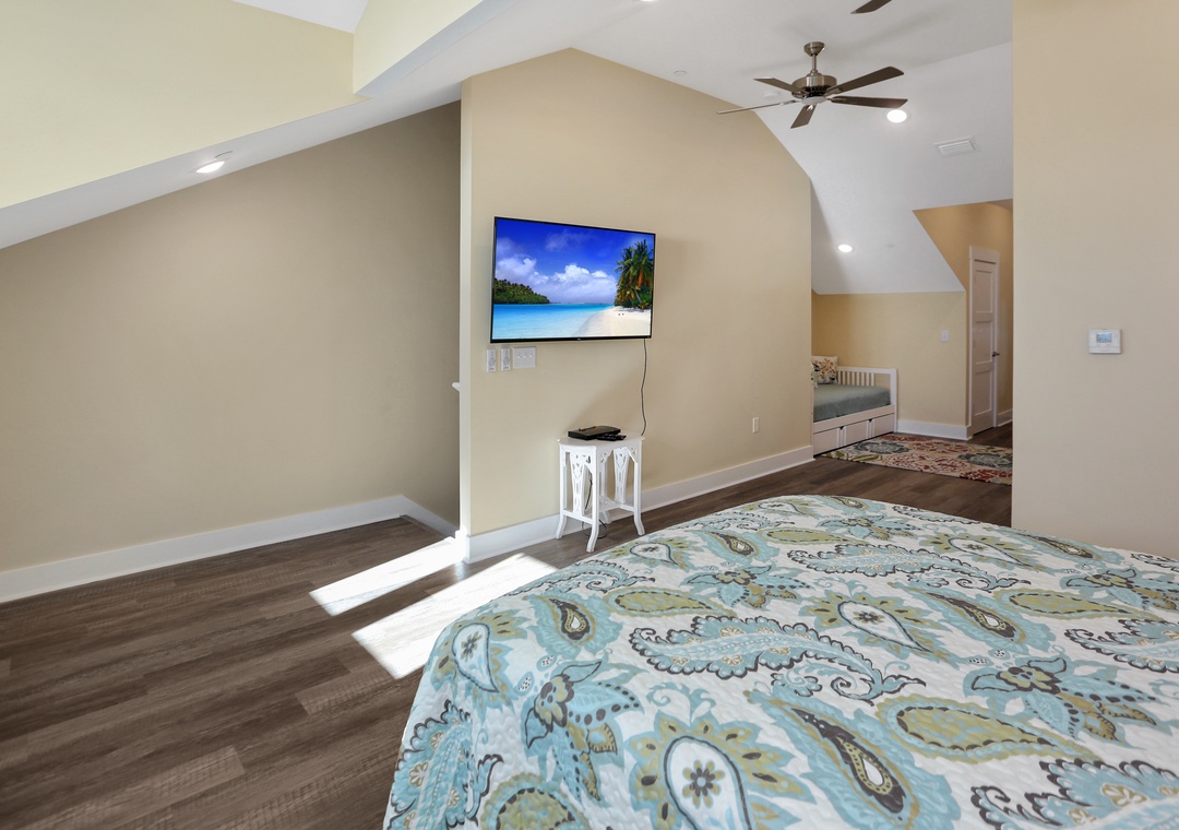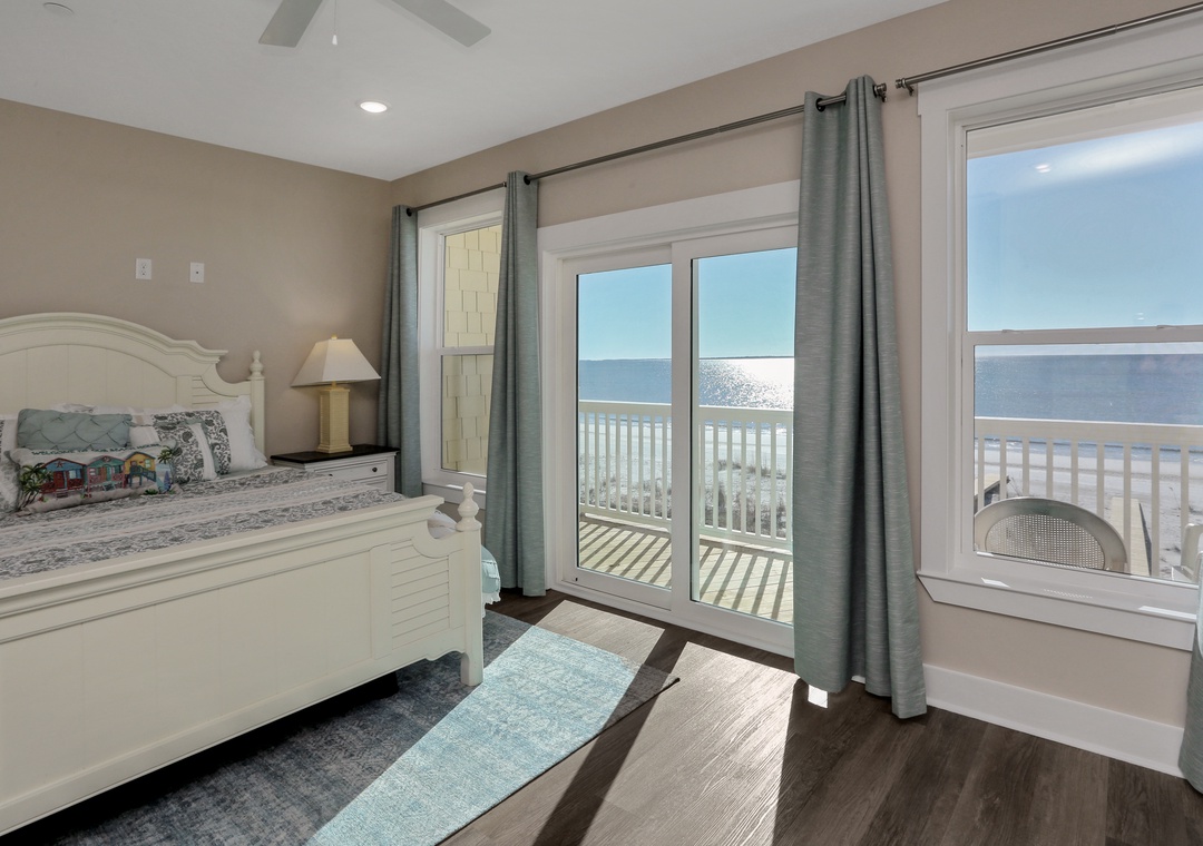 Two of the three bedrooms are located on the second level, both masters, with one being gulf front. The gulf front master opens onto a gulf front deck with breathtaking views providing a place like no other to enjoy your morning cup of coffee. The 3rd floor houses a fantastic family bedroom with sleeping for a total of five, a reading nook, and a full bath. The queen bed on this floor is adjustable, raising or lowering to your desired comfort.