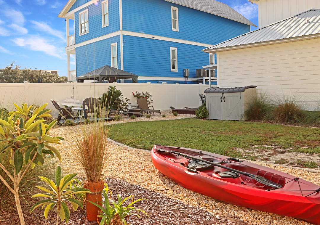 Embrace the beach lifestyle with a screened porch on the front of the house, perfect for sipping your morning coffee or enjoying a leisurely afternoon. The fenced backyard provides the ultimate private retreat, complete with a fire pit, a covered sitting area with an outdoor shower, and a gas grill.