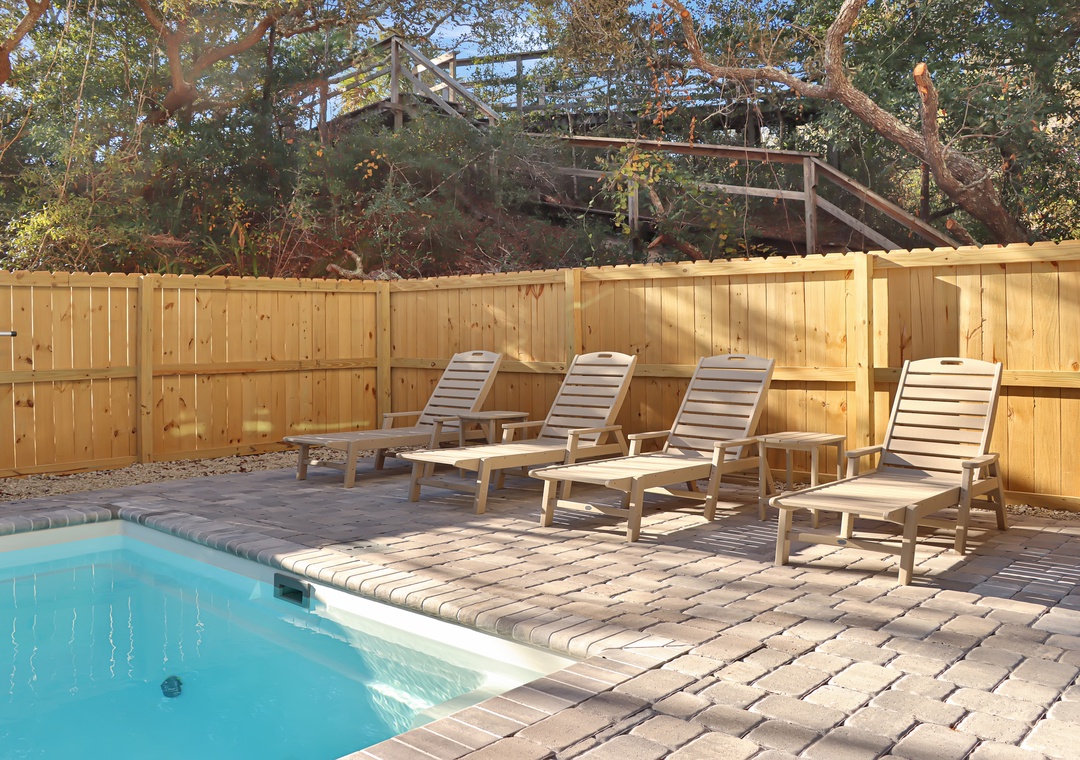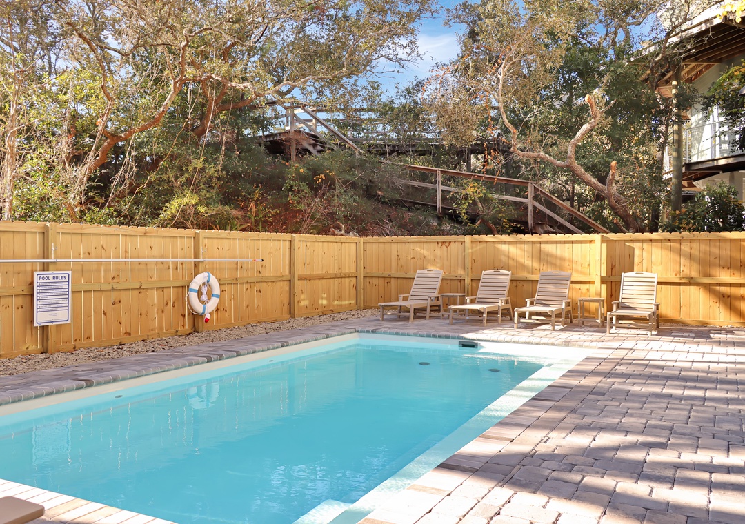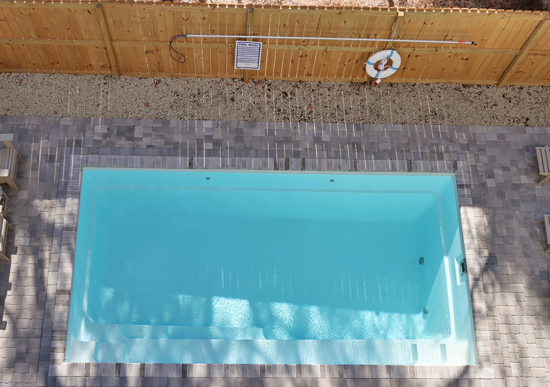 - the pool was amazing! Perfect size. Fiber glass insert. Salt water. So much fun for all ages and sizes.