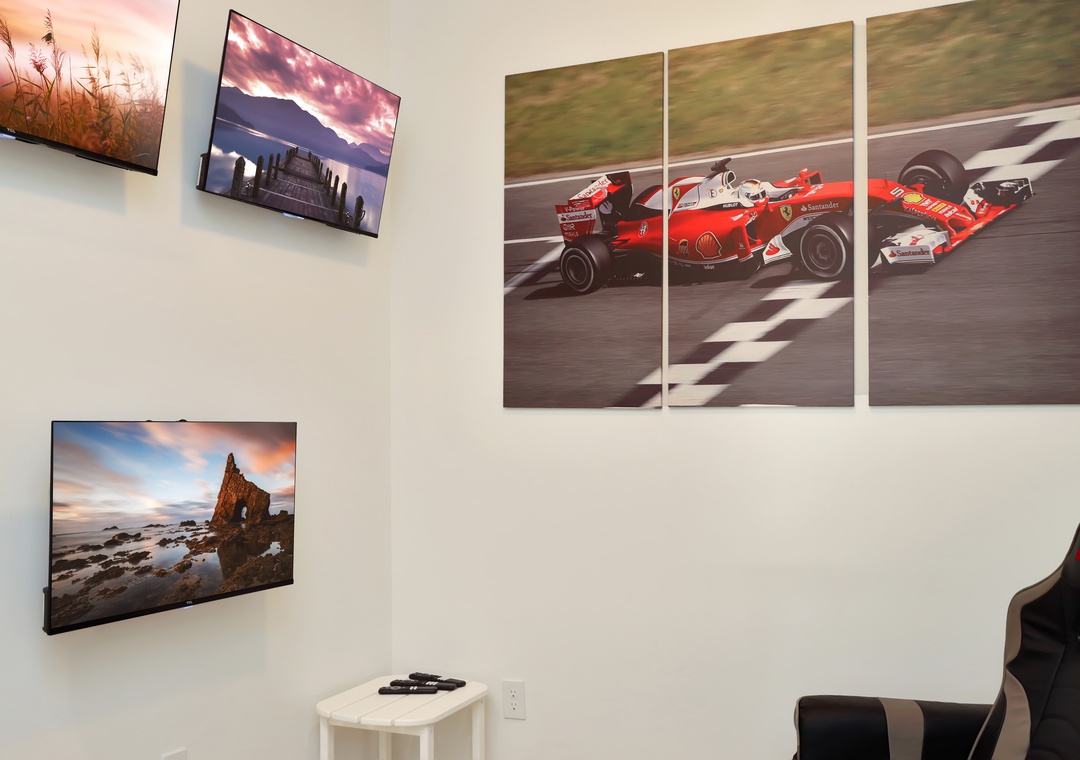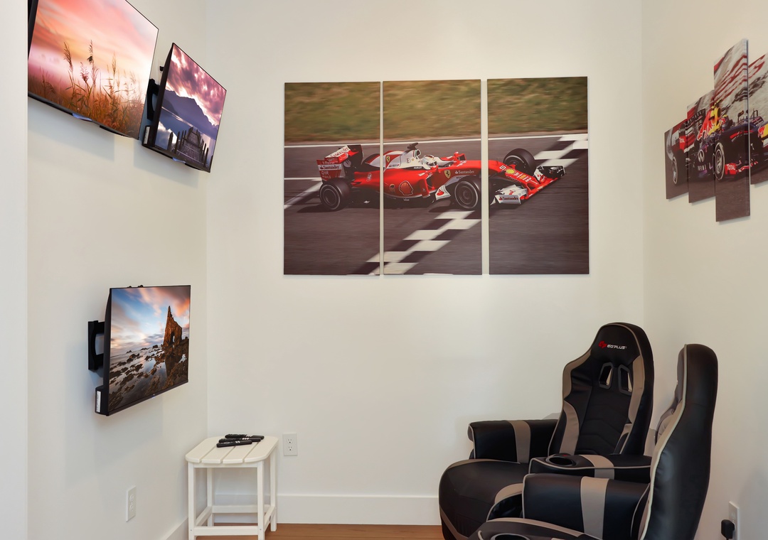 * Gaming Room with 3 Monitor Displays and Official Gaming Chairs