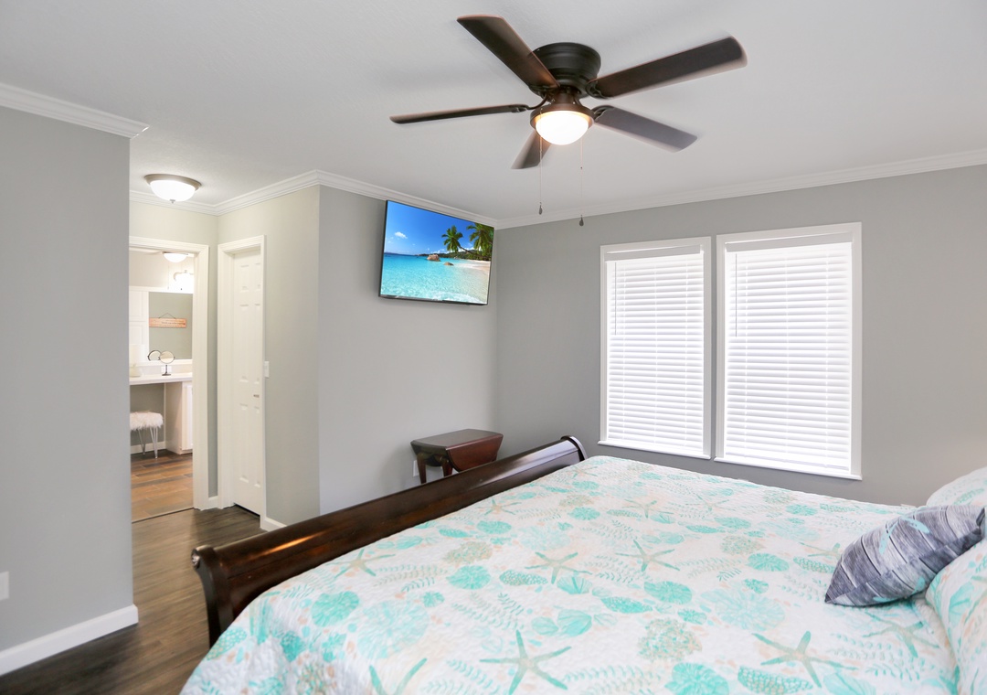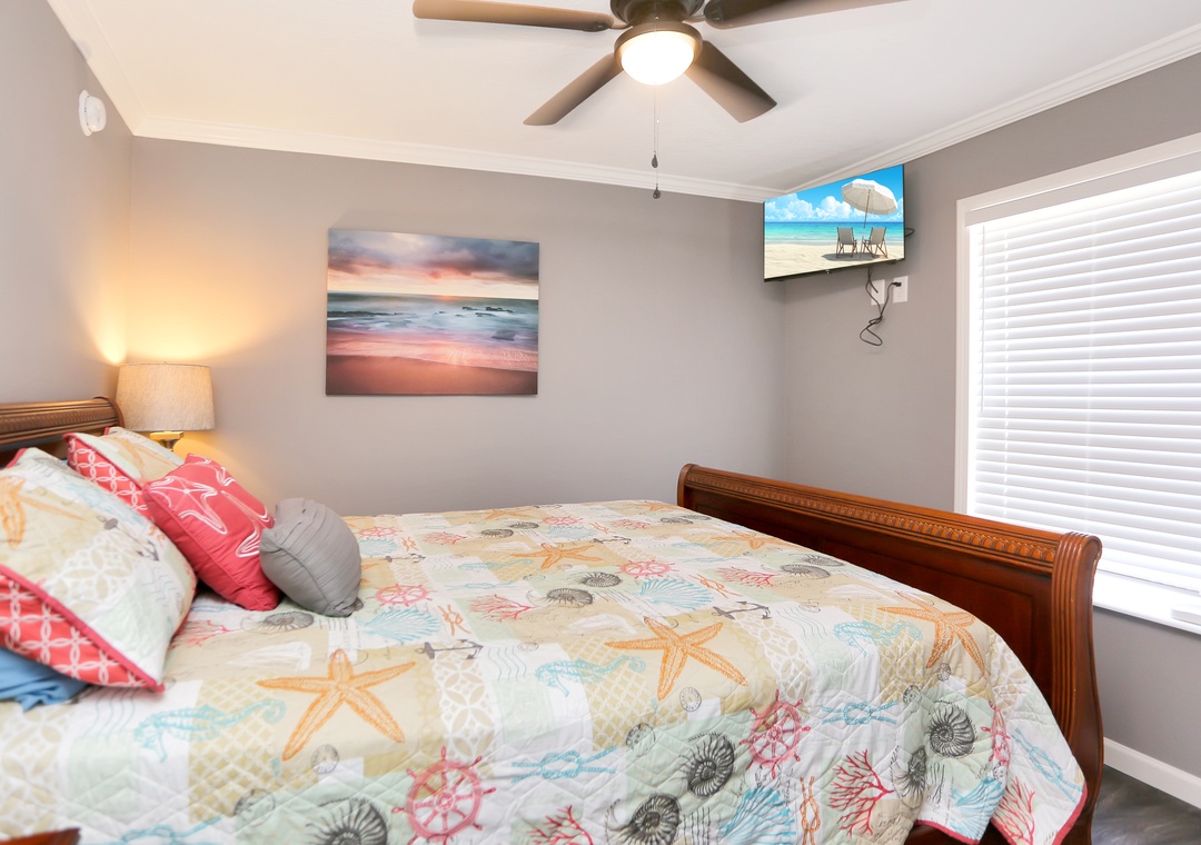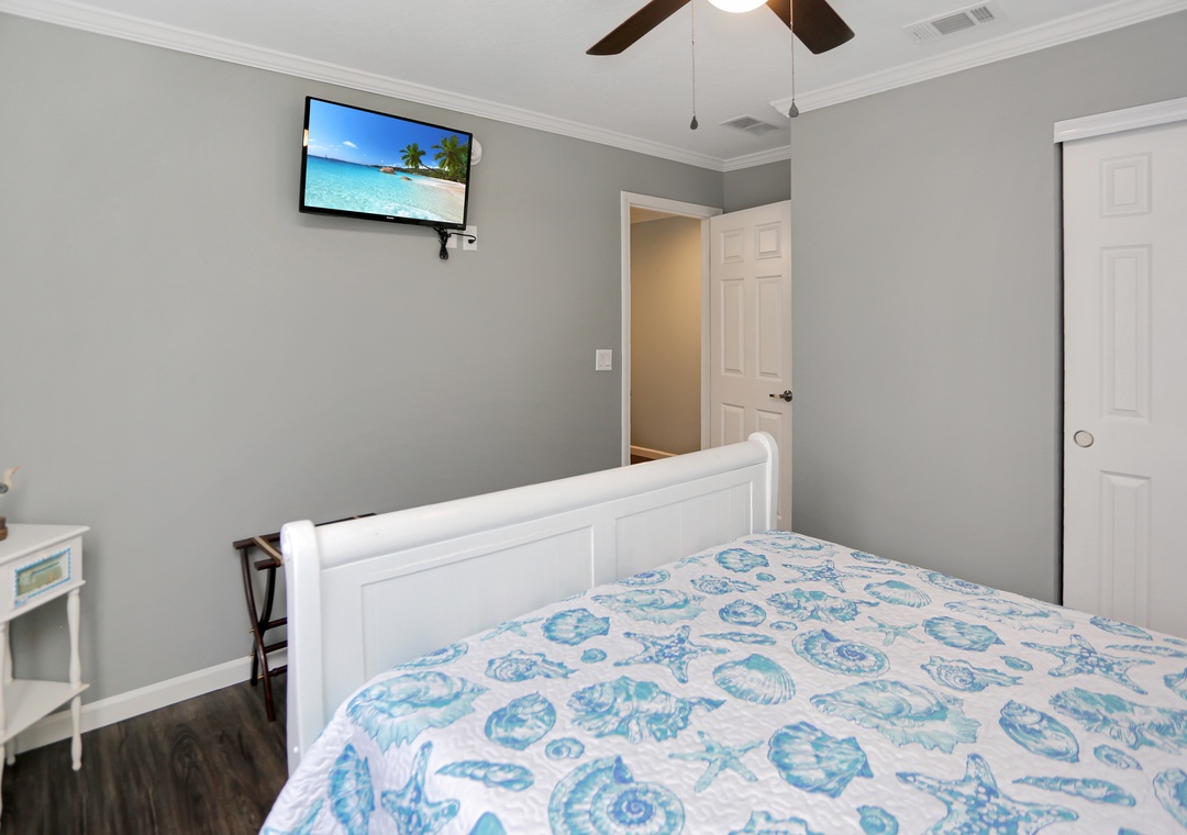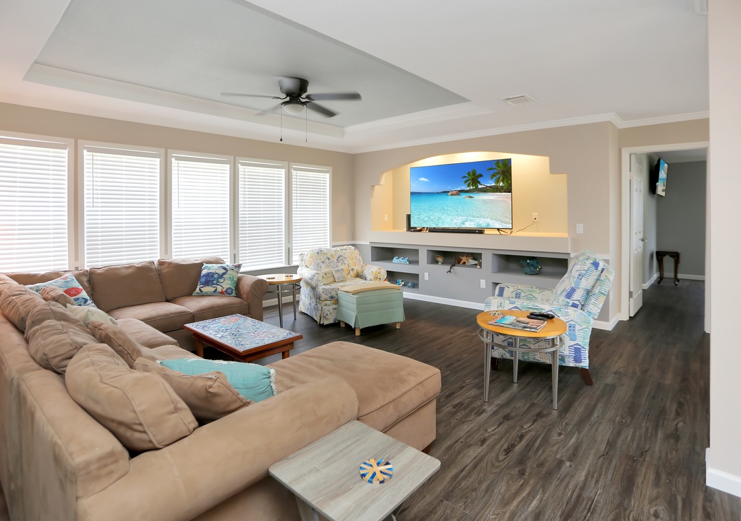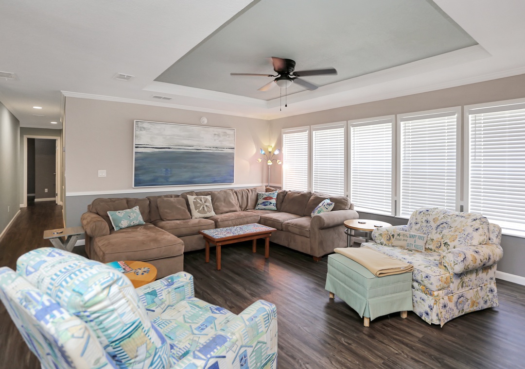 Located two blocks from convenient beach access, Salty Breeze is a single-level 5-bedroom house. On the roadside, there is plenty of parking for multiple cars or a boat. With a covered deck on the front and an open sundeck on the back of the house, the hardest decision will be dinner in the shade or out in the open. The layout of this beach home is such that space is abundant and perfect for a larger group of up to 12. The living area includes a large kitchen ideal for hanging out in, a dining area, and a living room that flow into one another.