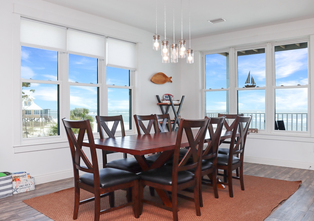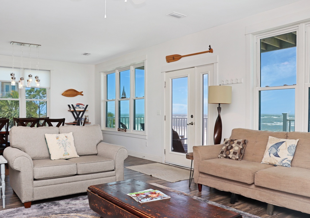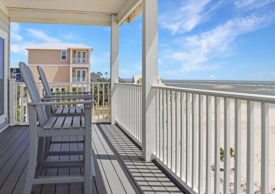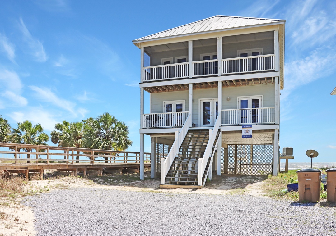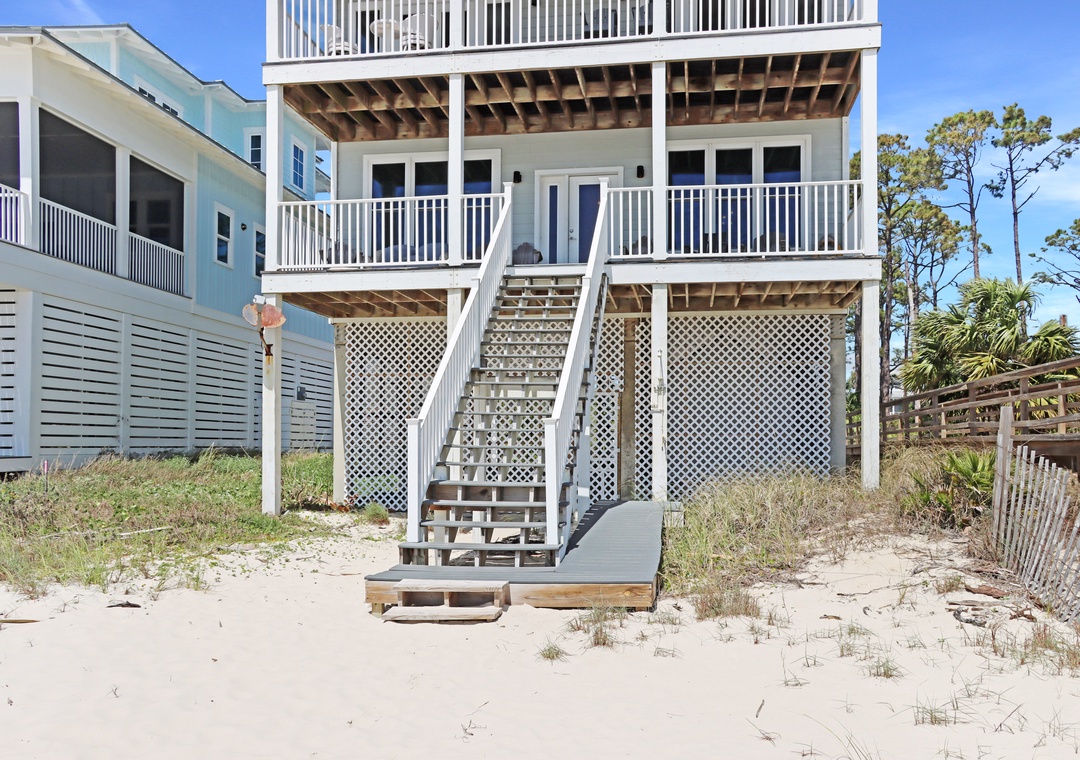 Sandpiper is a cozy beach rental right on the stunning Indian Pass. It’s the perfect spot for anyone looking to kick back and soak up some sun by the water. With the waves crashing and breathtaking views, you’ll feel right at home in this laid-back getaway. It features 4 bedrooms and 3 bathrooms that accommodate up to 10 guests—perfect for family gatherings or trips with friends. The main level has an open-concept design that combines the kitchen, dining area, and living room, all with stunning beach views through large windows. On this level, guests can unwind on the covered beachfront deck or enjoy the convenience of a cozy bedroom and bathroom. Upstairs, three additional bedrooms, including a luxurious master suite with a spa-like bathroom with a large shower and a classic clawfoot tub, and a charming bunk room with custom bunk beds, offer private deck access.