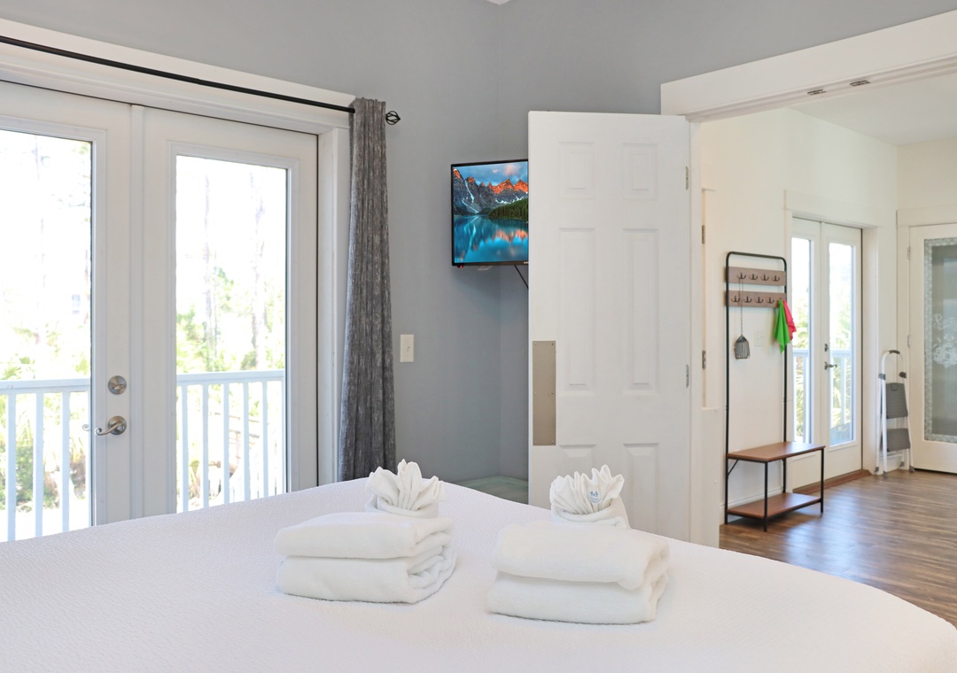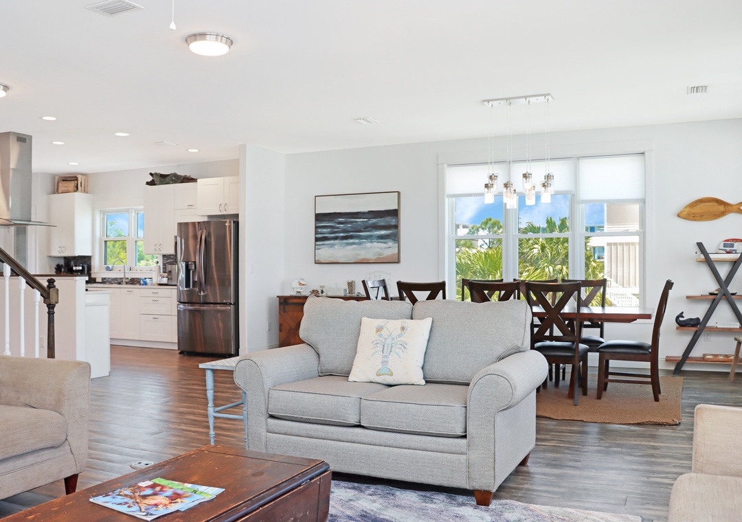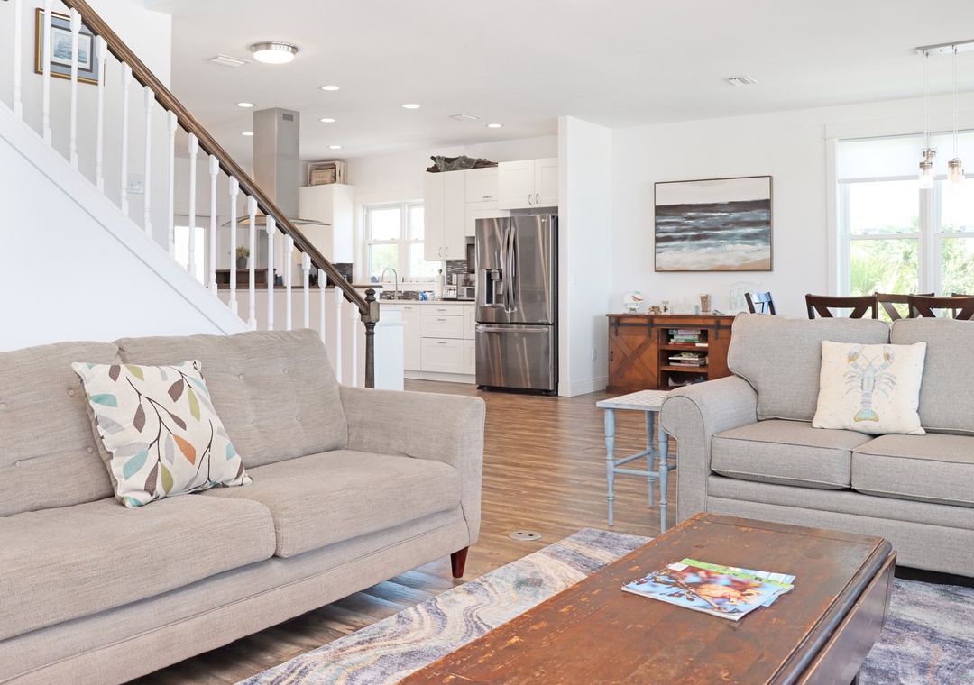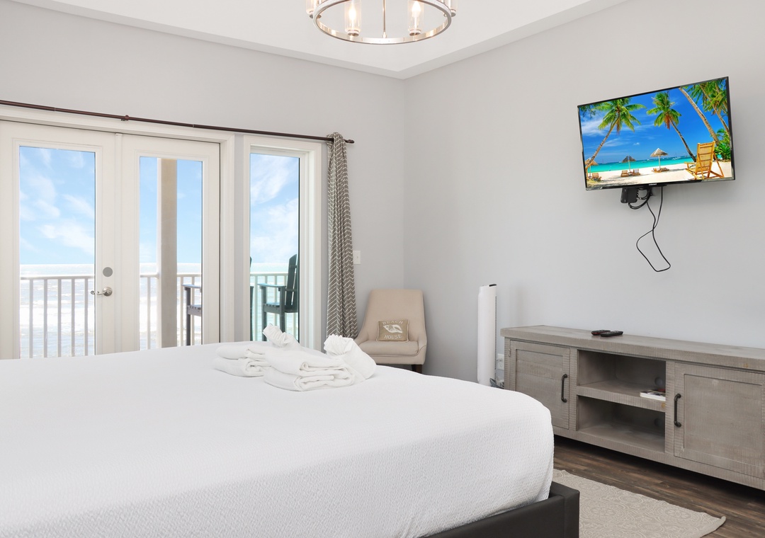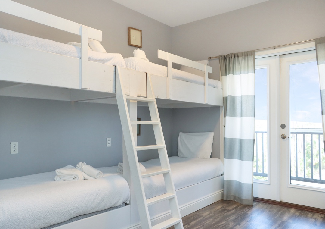 Sandpiper is a cozy beach rental right on the stunning Indian Pass. It’s the perfect spot for anyone looking to kick back and soak up some sun by the water. With the waves crashing and breathtaking views, you’ll feel right at home in this laid-back getaway. It features 4 bedrooms and 3 bathrooms that accommodate up to 10 guests—perfect for family gatherings or trips with friends. The main level has an open-concept design that combines the kitchen, dining area, and living room, all with stunning beach views through large windows. On this level, guests can unwind on the covered beachfront deck or enjoy the convenience of a cozy bedroom and bathroom. Upstairs, three additional bedrooms, including a luxurious master suite with a spa-like bathroom with a large shower and a classic clawfoot tub, and a charming bunk room with custom bunk beds, offer private deck access.