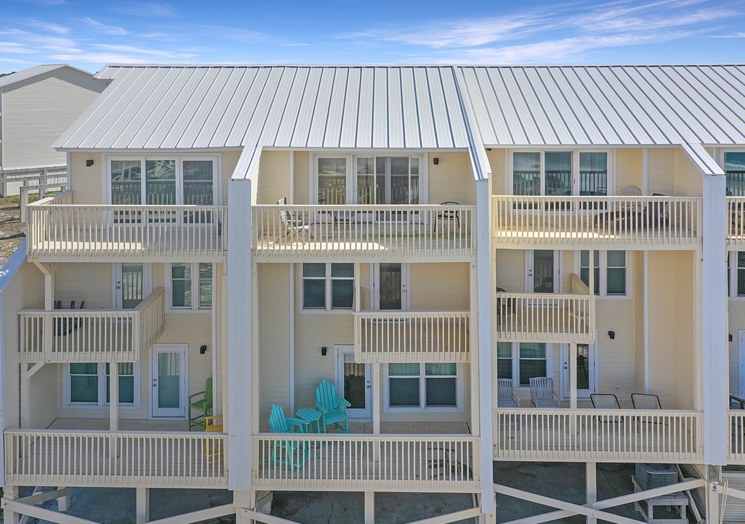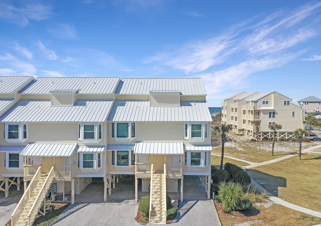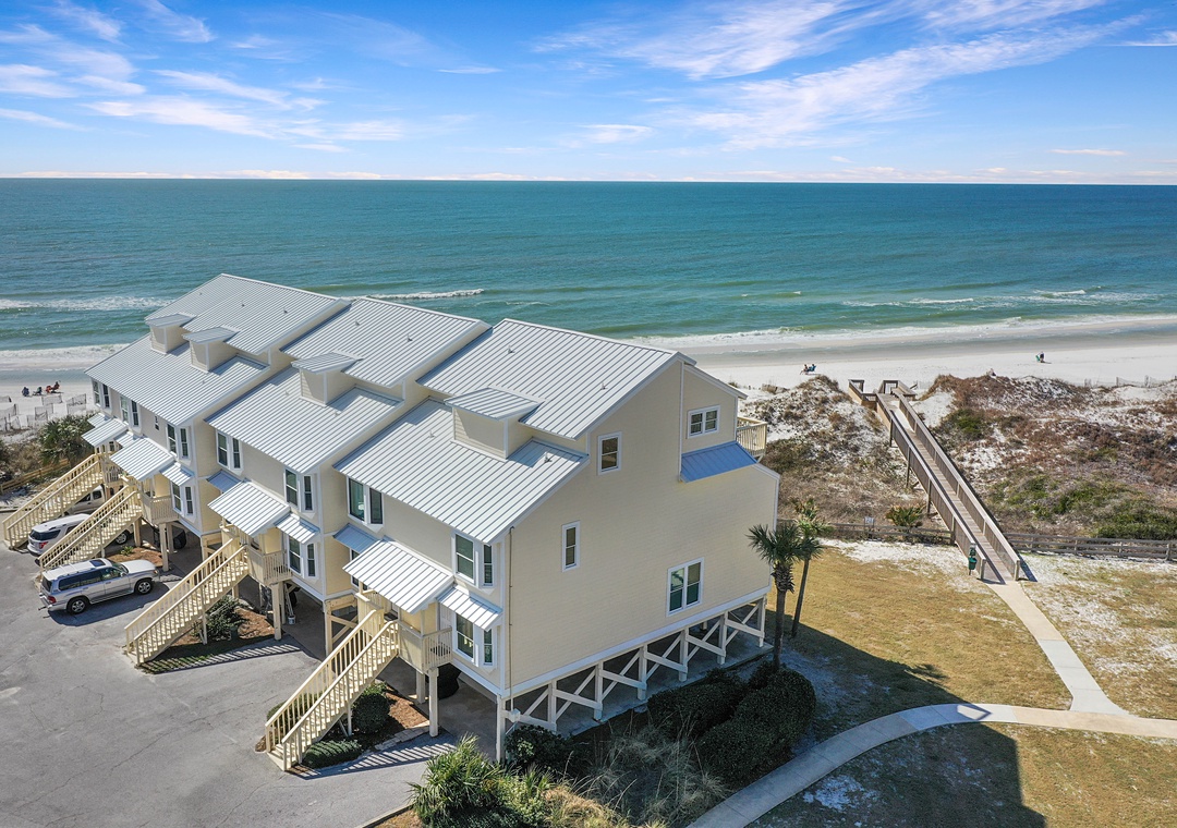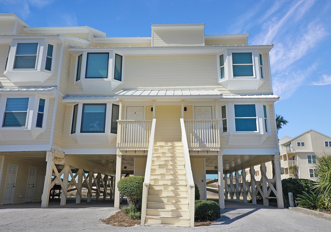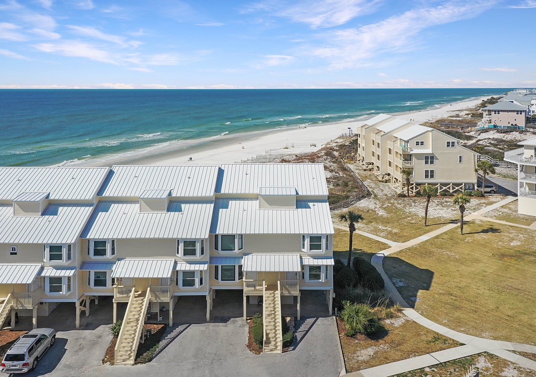 Click Here To Learn More!Simple in design and décor, B-2 is highlighted by its magnificent views. From nearly every room on every floor, the Gulf of Mexico looks as though it is close enough to touch. It almost is, and access to the beach is a breeze with the community boardwalk just steps from the townhouse. The property’s layout is easy to navigate and allows some separation from free time and sleep time with the living level on the main floor, two bedrooms on the second floor, and the master suite standing alone on the top floor.
