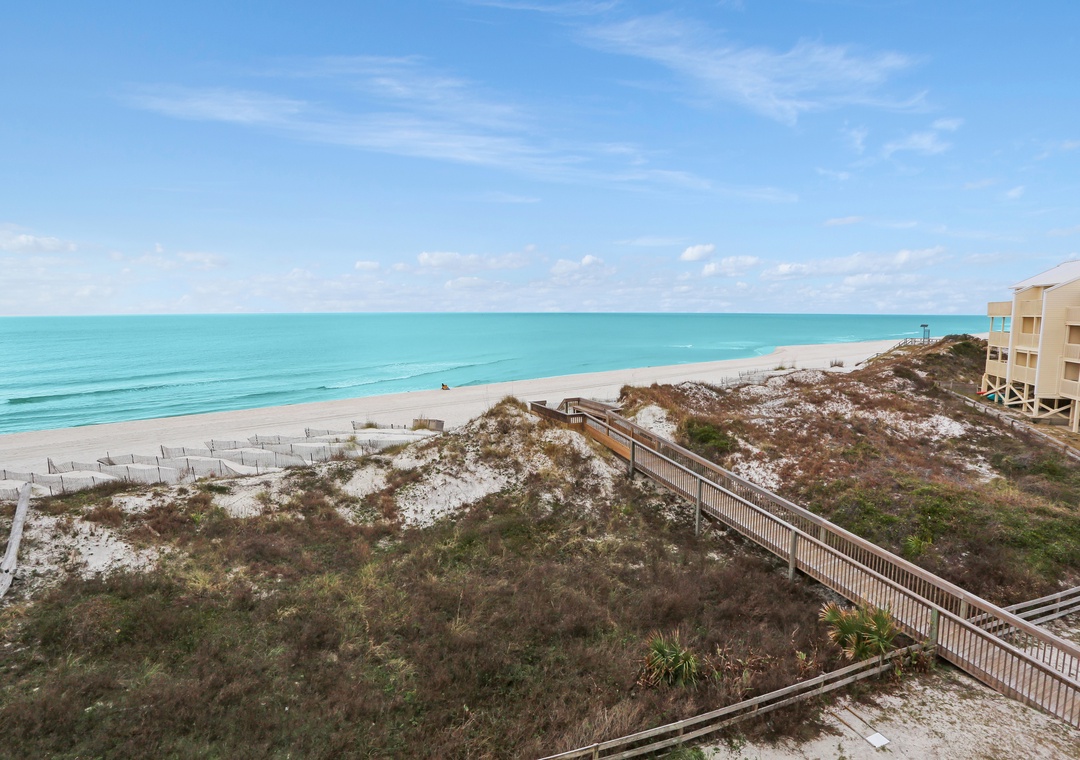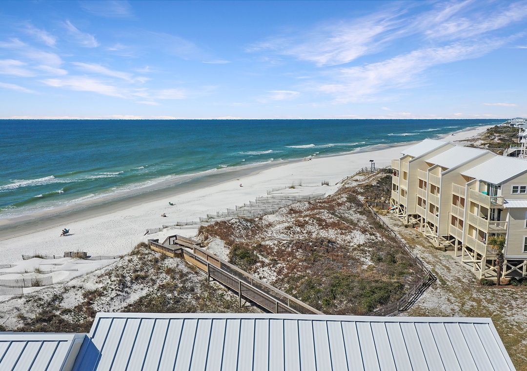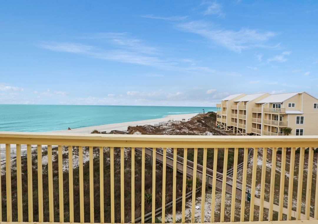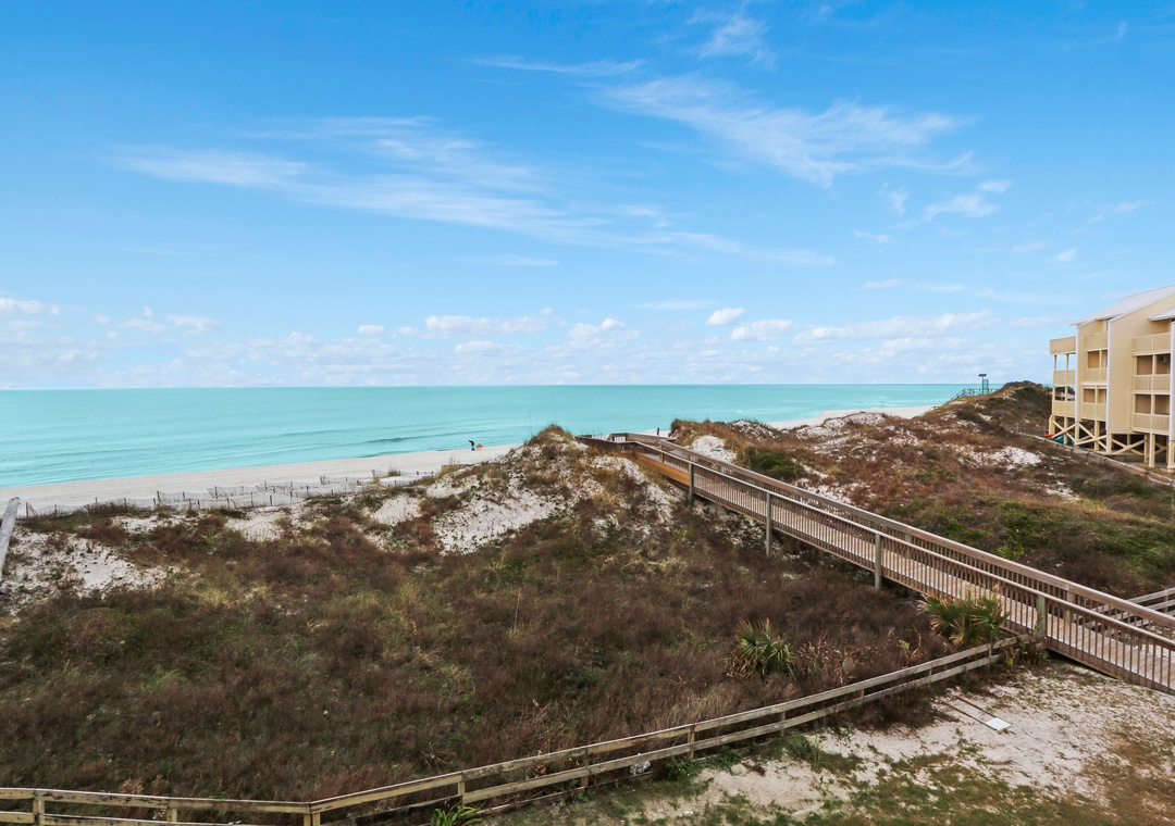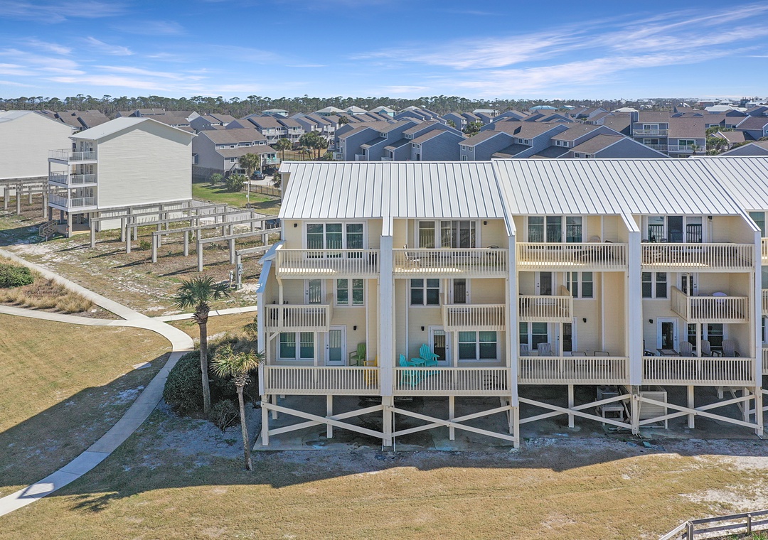 Click Here To Learn More!Simple in design and décor, B-2 is highlighted by its magnificent views. From nearly every room on every floor, the Gulf of Mexico looks as though it is close enough to touch. It almost is, and access to the beach is a breeze with the community boardwalk just steps from the townhouse. The property’s layout is easy to navigate and allows some separation from free time and sleep time with the living level on the main floor, two bedrooms on the second floor, and the master suite standing alone on the top floor.