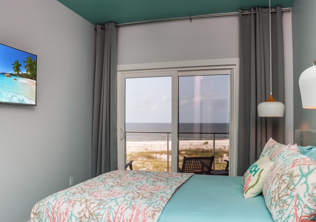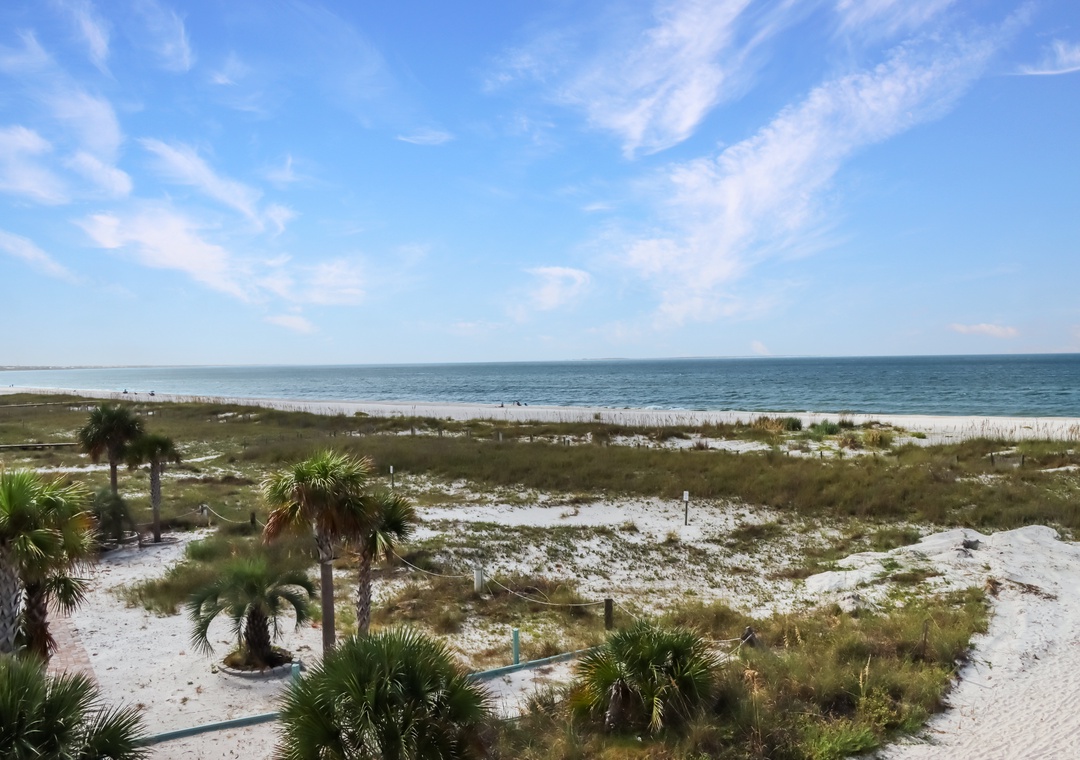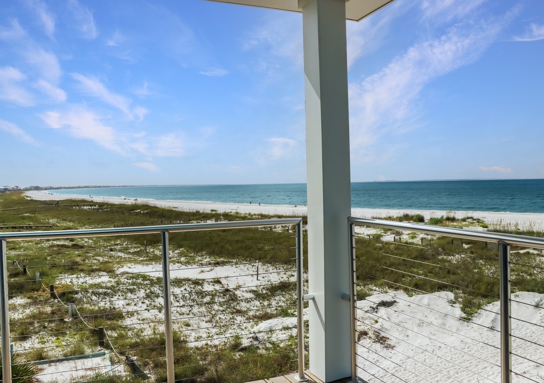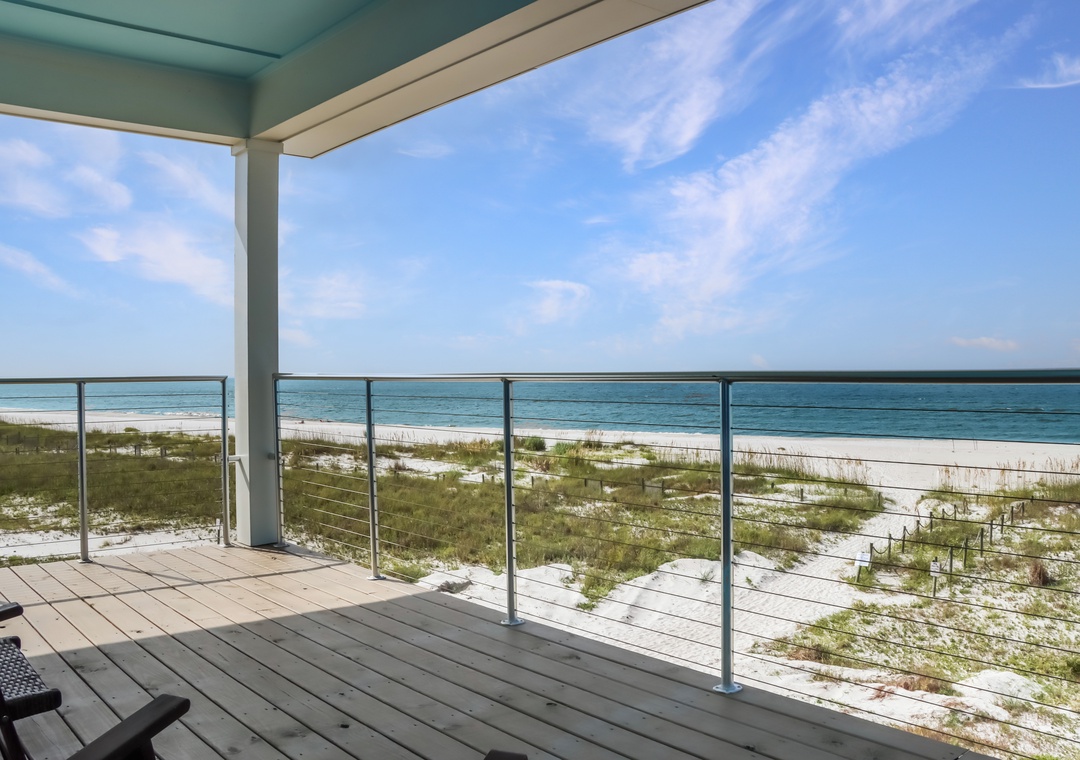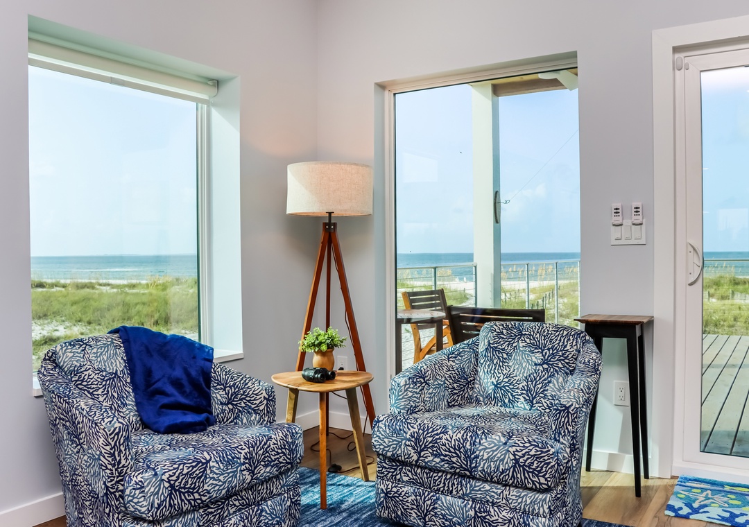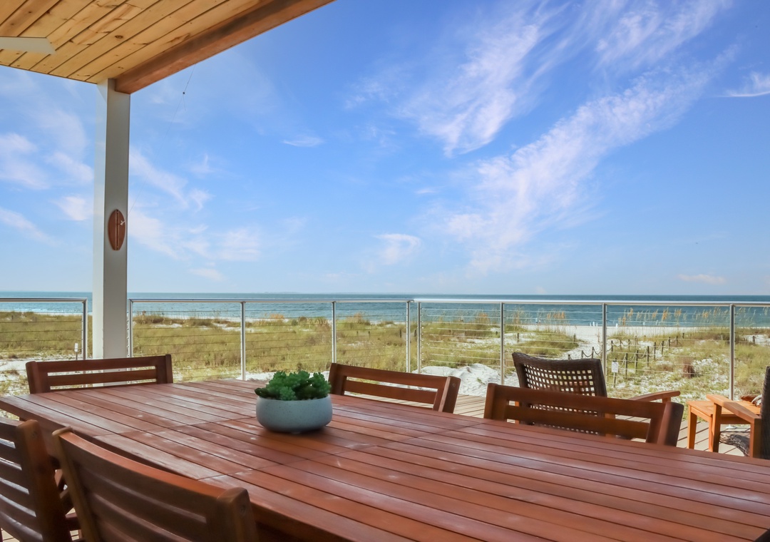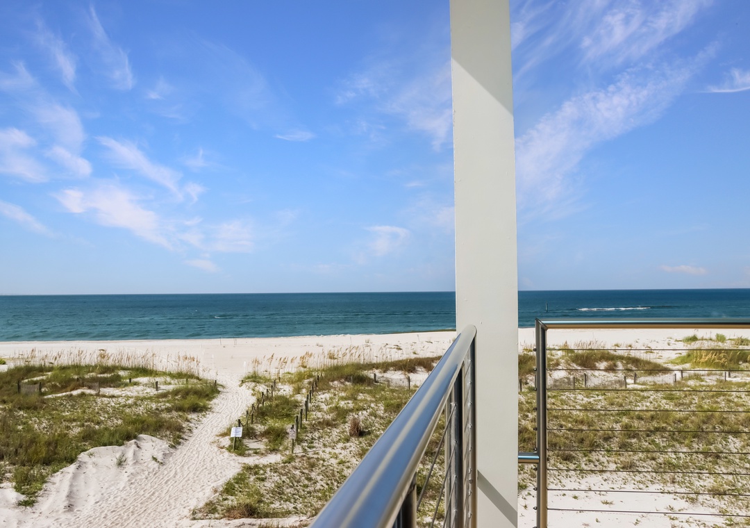 As you enter this magnificent home, you are greeted with an expansive open living area, filled with natural light from surrounding windows and sliding glass doors. Admire breathtaking views of the Gulf as you unwind in the spacious living room, or whip up a gourmet meal in the modern kitchen. The dining area offers a perfect vantage point to enjoy panoramic beach views as you savor your culinary creations.