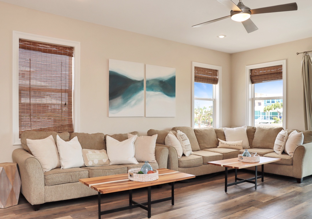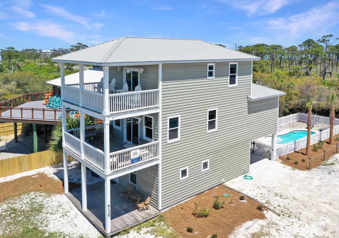 Searenity offers more than just a place to stay-it's a home away from home. Enjoy the breathtaking gulf views from the multiple levels of decks, perfect for al fresco dining or simply relaxing to the sound of the waves. The living area, designed to accommodate up to twelve guests comfortably, is a spacious and inviting spot with multiple sofas, ensuring everyone can unwind and enjoy each other's company in the evenings. Located a short drive from the St. Joseph Peninsula State Park, the fishermen in the group will appreciate the fish cleaning station provided, which ensures your catch of the day is prepared with ease. Embrace the coast charm, unwind comfortably, and create unforgettable memories at our beachside oasis. Book your dream vacation today!