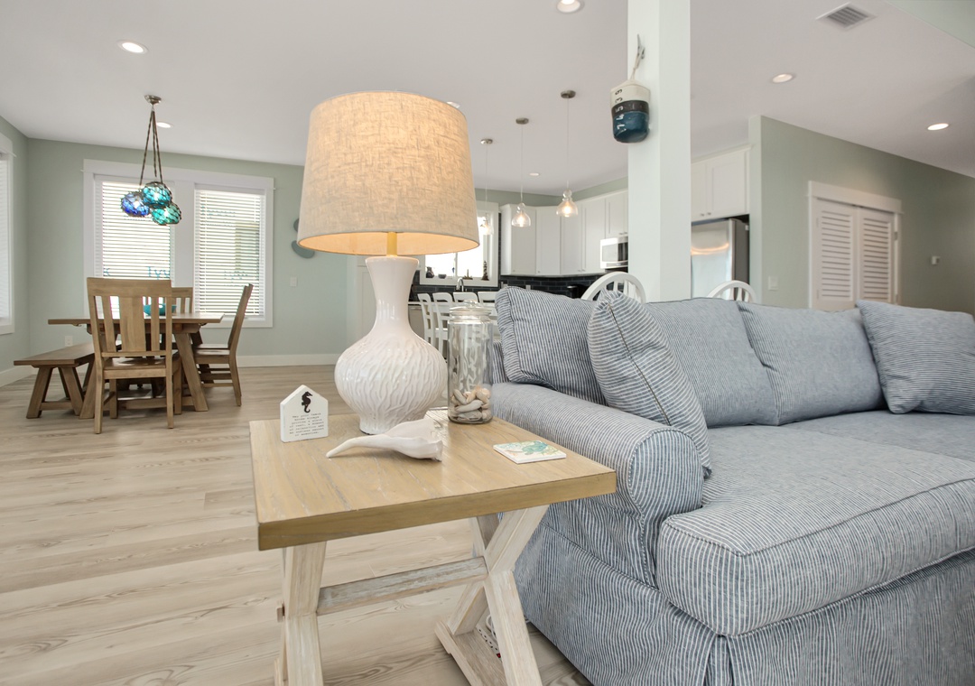 We really enjoyed our stay at this property! We have stayed in several homes in Mexico Beach and this one was one of our favorites. There were 9 of us staying here and we had plenty of room for everyone. The house is BEAUTIFUL, well stocked & all of the beds and furniture are very comfortable. The deck over the beach was just perfect for gathering and the outdoor table was an added bonus that most other houses don't have! The red tide and high winds kept us indoors for a good part of the week but the house was so nice and we were still able to enjoy the week with our family. The only negative thing that we would say is that there is no access to a closet outside for beach toys, chairs, etc. This isn't the end of the world, it just would have been helpful to know ahead of time because that is something we have always had at previous homes & we could have planned accordingly. We come back to Mexico Beach every year and I'm sure we will be back to Shore Looks Good!