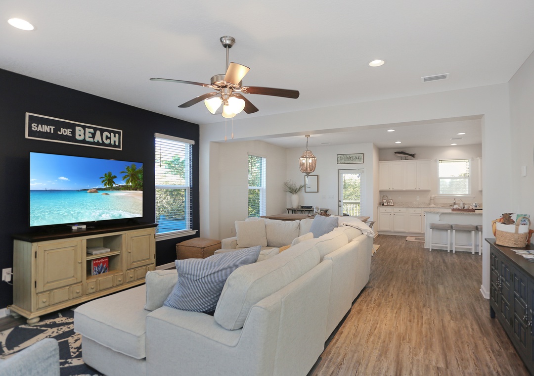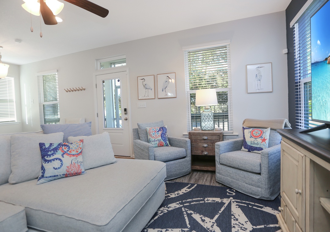 There’s not much need for a vehicle once you park the car in the spacious driveaway at Song of the Sea. Walking to the beach is an easy trek using the maintained community boardwalk. WindMark Beach Town Center is an easy walk or bike ride away when you're not enjoying the calm waters. There’s something for everyone here, from ice cream and specialty sweets to local craft beer on tap. Shops and restaurants include Bruno’s Pizza, Wave Aesthetic Spa, Rest and Relaxation Rentals, The View on Old 98, Fit as a Fiddle, Bow Wow Beach Shop, and The Mill Mercantile and Social. There’s food, treats, spirits, and many nights live music at The Mill. You can even participate in The Mill's Wednesday Night Corn Hole Tournament.