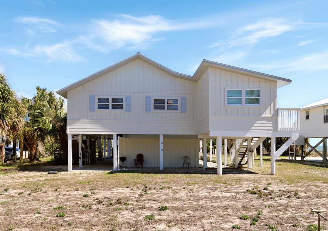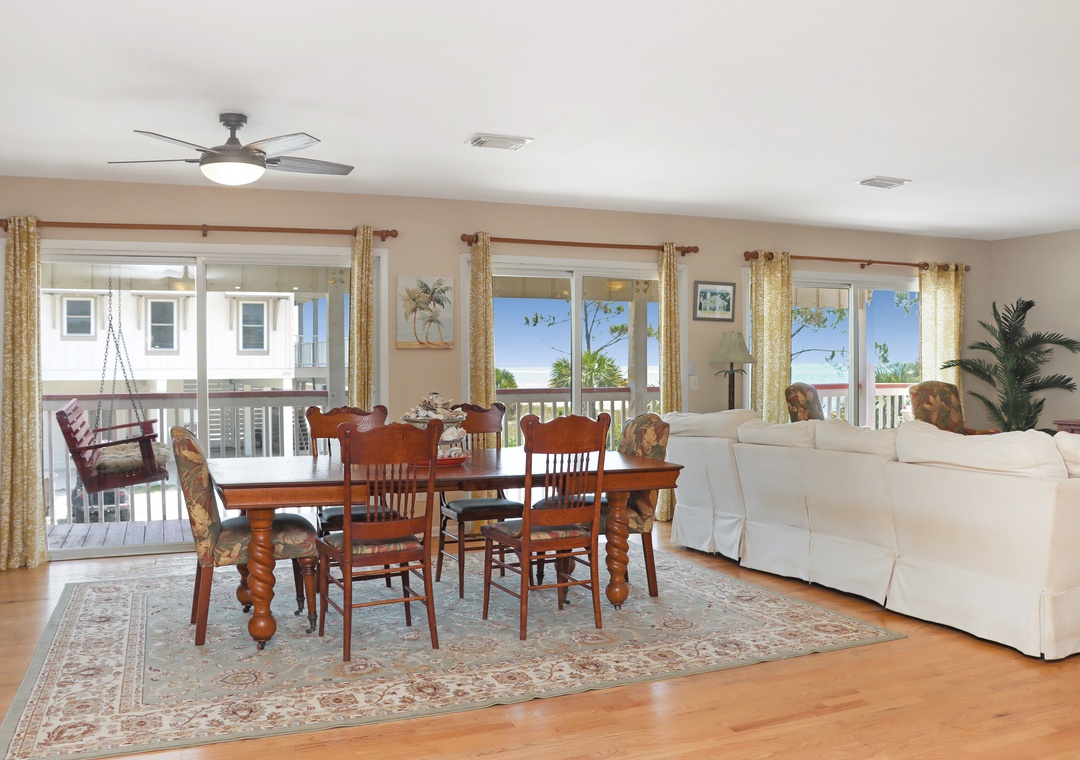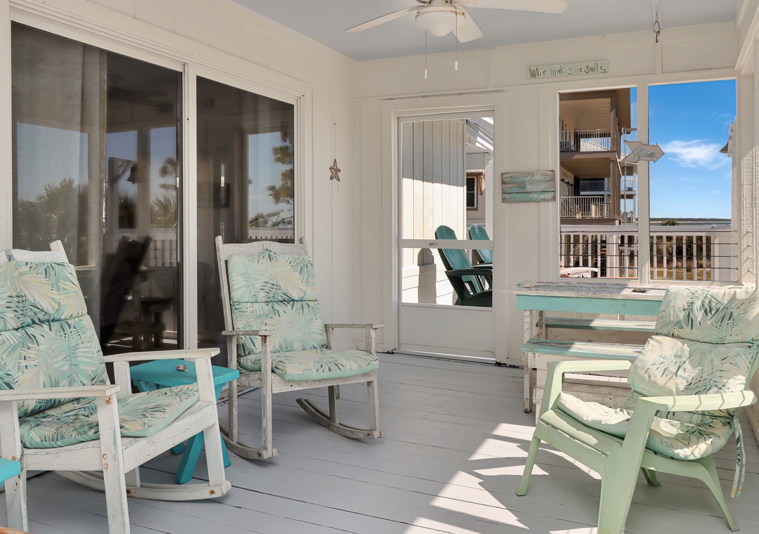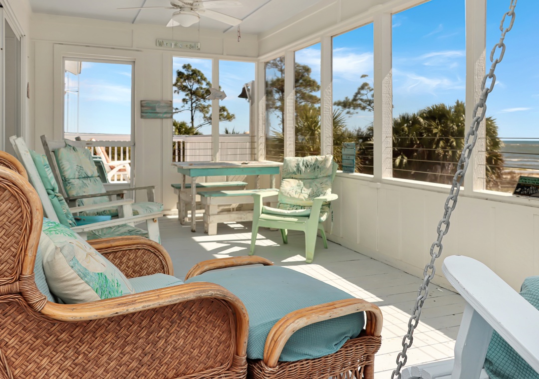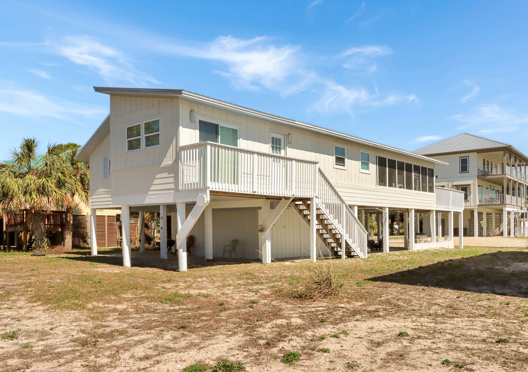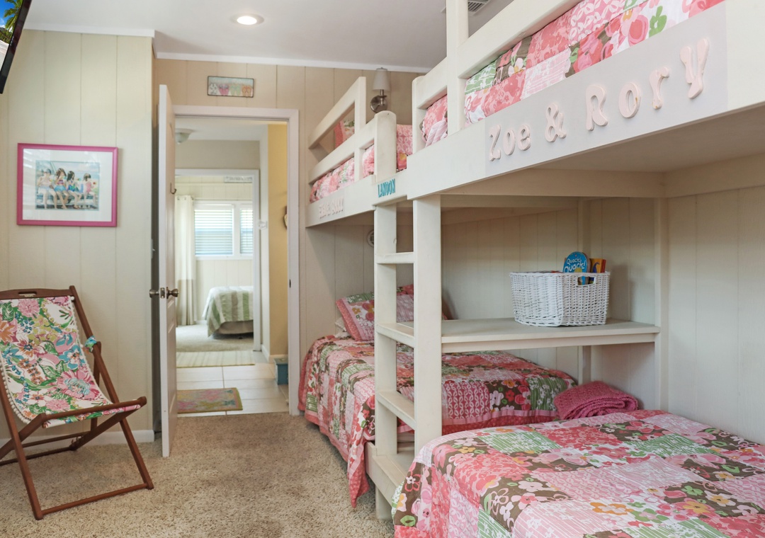 Recently updated with an exterior makeover, it’s no coincidence that Summer Breeze is a family favorite. Its design is tailored for the ultimate relaxation and entertainment. The location is all but beachfront and a hidden gem if easy access to the beach is essential. A house built on pilings, the four-bedroom rental is elevated one story but comfortably arranged on a single level with an open design and a pair of bedrooms on either side. There are multiple outdoor spaces to enjoy, some that offer a private escape and others that provide an area for entertaining the entire group. No matter where you choose outdoors, the view will not disappoint. The kids will love the bunk room tucked between the screened porch and one of the guest bedrooms.