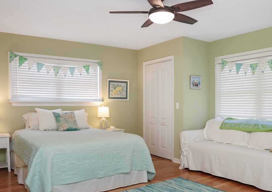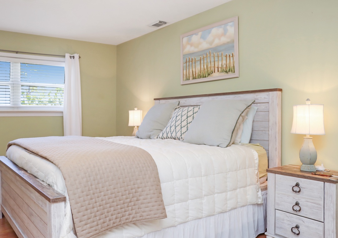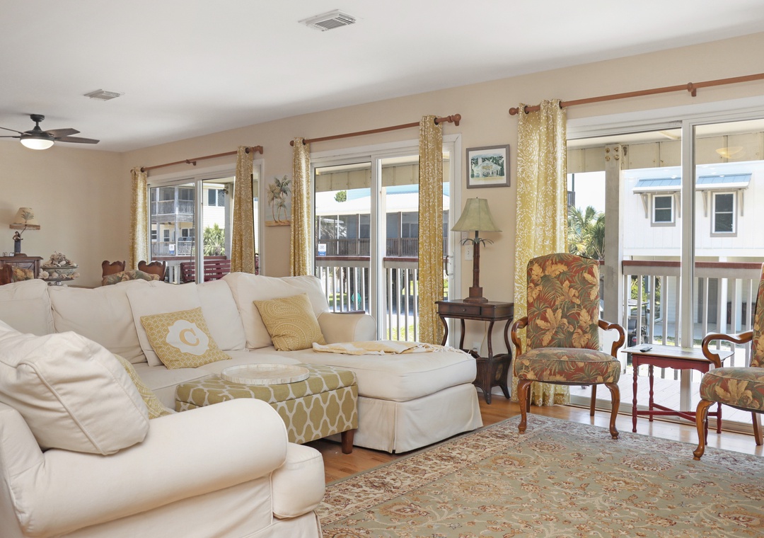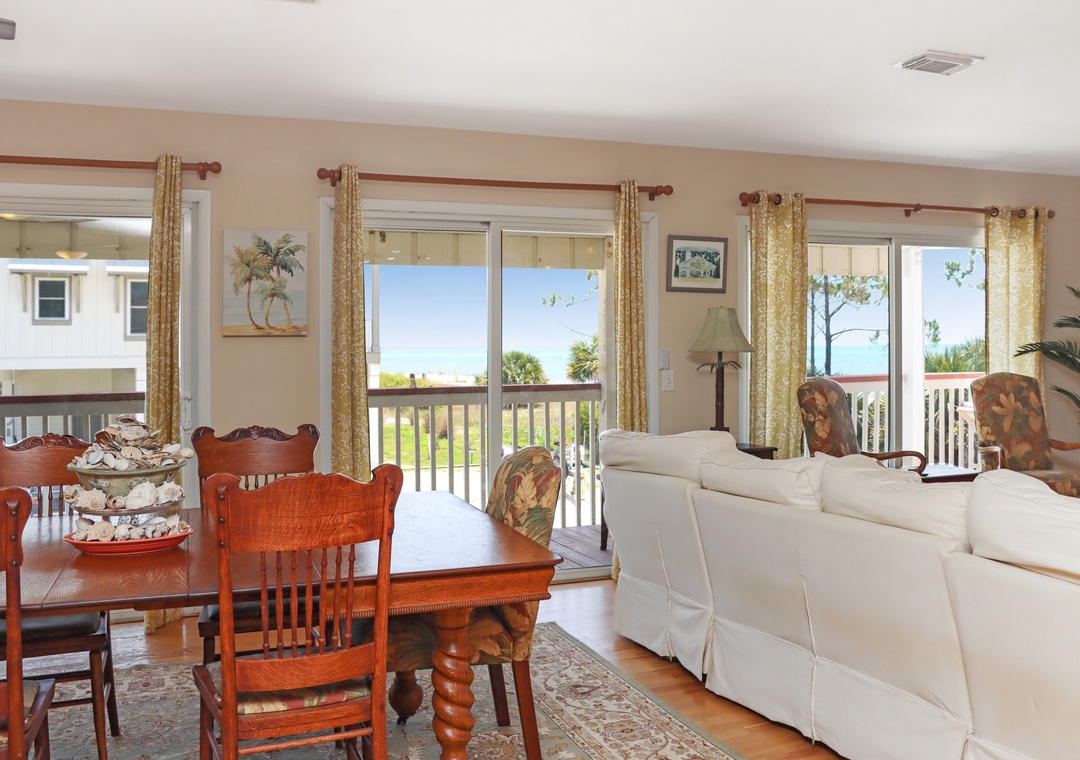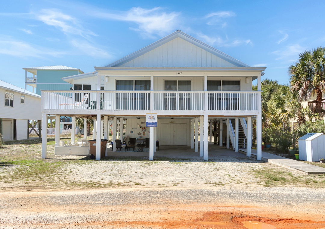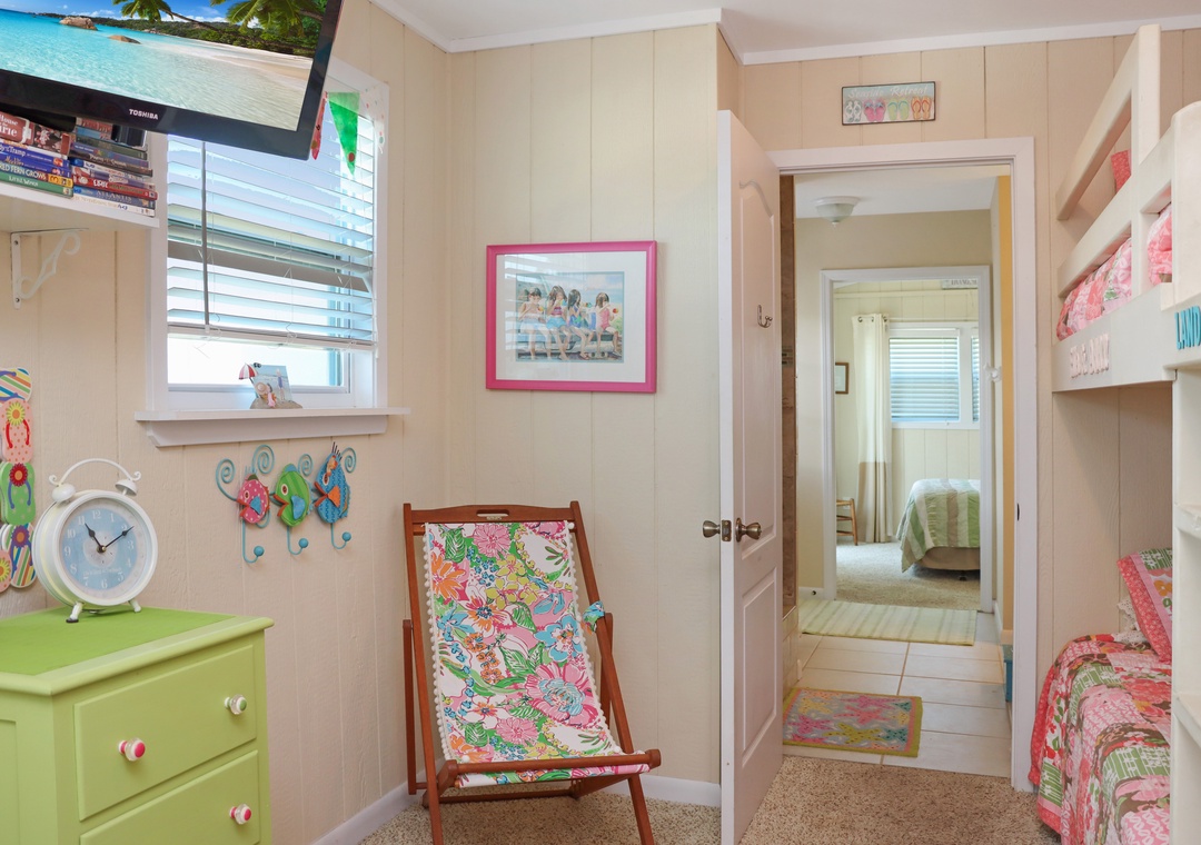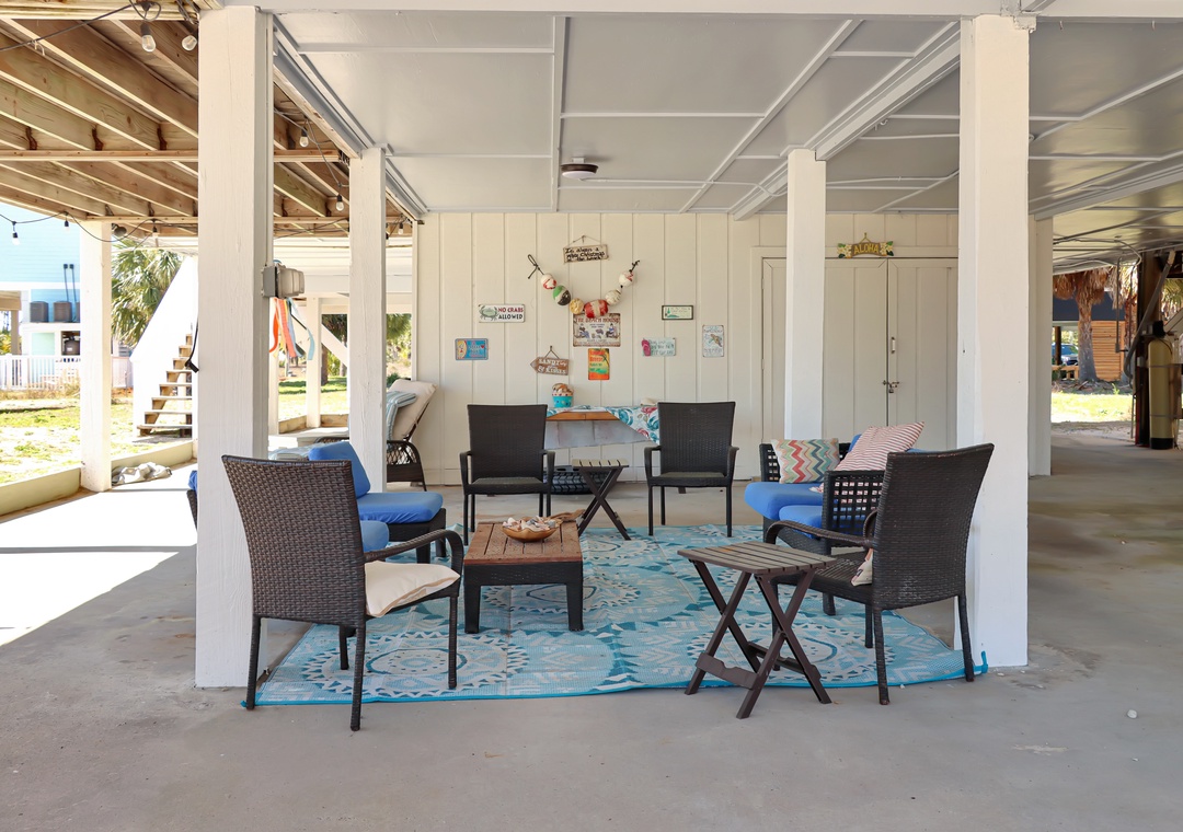 Recently updated with an exterior makeover, it’s no coincidence that Summer Breeze is a family favorite. Its design is tailored for the ultimate relaxation and entertainment. The location is all but beachfront and a hidden gem if easy access to the beach is essential. A house built on pilings, the four-bedroom rental is elevated one story but comfortably arranged on a single level with an open design and a pair of bedrooms on either side. There are multiple outdoor spaces to enjoy, some that offer a private escape and others that provide an area for entertaining the entire group. No matter where you choose outdoors, the view will not disappoint. The kids will love the bunk room tucked between the screened porch and one of the guest bedrooms.