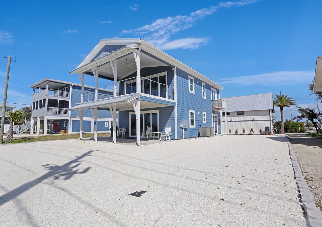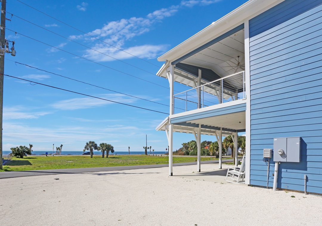 Vacationing in Mexico Beach is meant for outdoor enthusiasts, those who spend most of their day on the water or sand. However, there are times when it is necessary to be inside the vacation home. So why not combine the two? Sunny Beach Retreat B is a ground-floor duplex where the boundary between inside and outside gets slightly unclear. Because the westward-facing sliding glass doors open nearly the entire width of the house, the outdoors can pour in, crossing that line from in or out. With this, the unobstructed gulf views are incredible from every spot in the living area. Easily step from the living room onto the covered patio, where you can access a gas grill and outdoor shower. A vacant lot is between the house and the beach, so nothing impedes that fantastic view. Access to the beach is also quite simple, with a pedestrian crossing at Hwy 98 and a beach ramp winding its way to the sand.