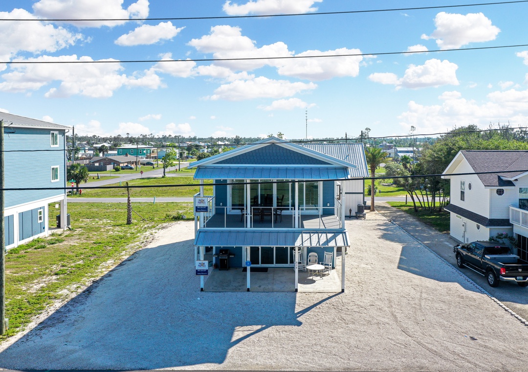 The newly built, 2 bedroom/2 bath duplex has a simple design maximizing comfort and space. Entirely on the ground level, you will never need to walk up a set of stairs. The living area is an open space with a short hallway separating it from the two bedrooms. Each bedroom features a private bathroom with a shower, a small deck, and a TV. Sunny Beach Retreat B should be your next choice when visiting Mexico Beach.