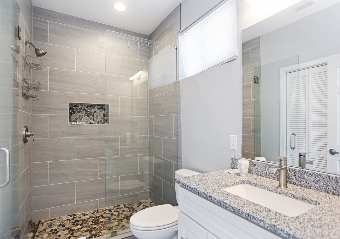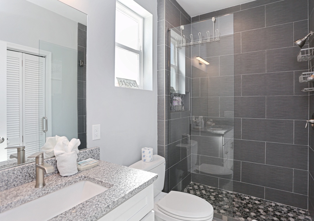 Great location with a short walk to the beach. Was nice and clean. Nice bathrooms and kitchen, especially. Not a huge dislike, by any means, but would suggest a bigger dining table to properly accommodate the nice chairs. Also could use more dinner plates. Outdoor trash cans are a little small, esp when shared with a family in the upper unit.- Reviewed On: 6/22/2025
