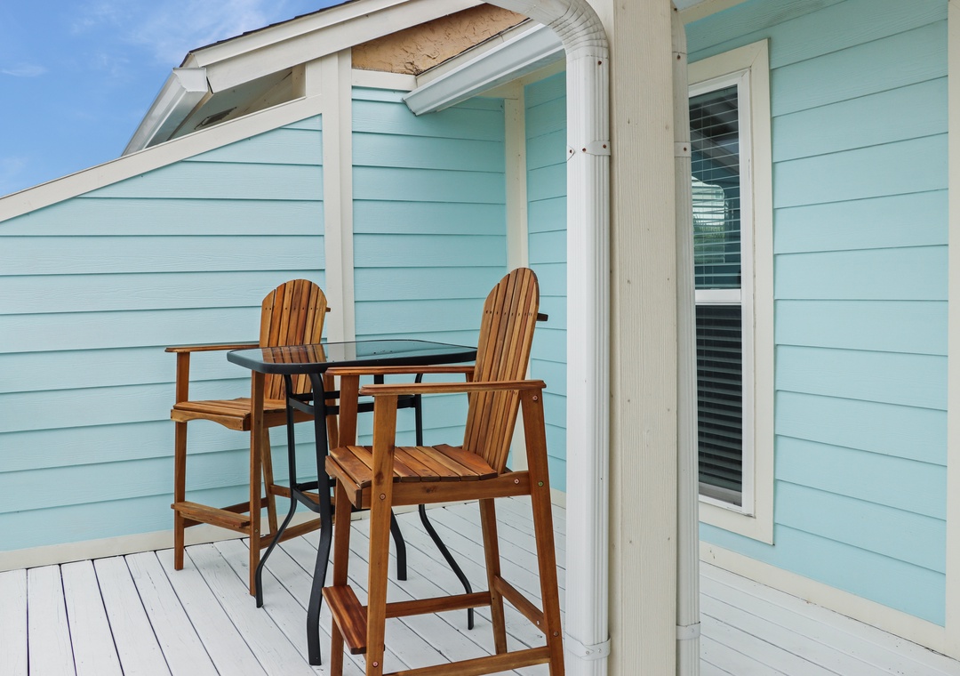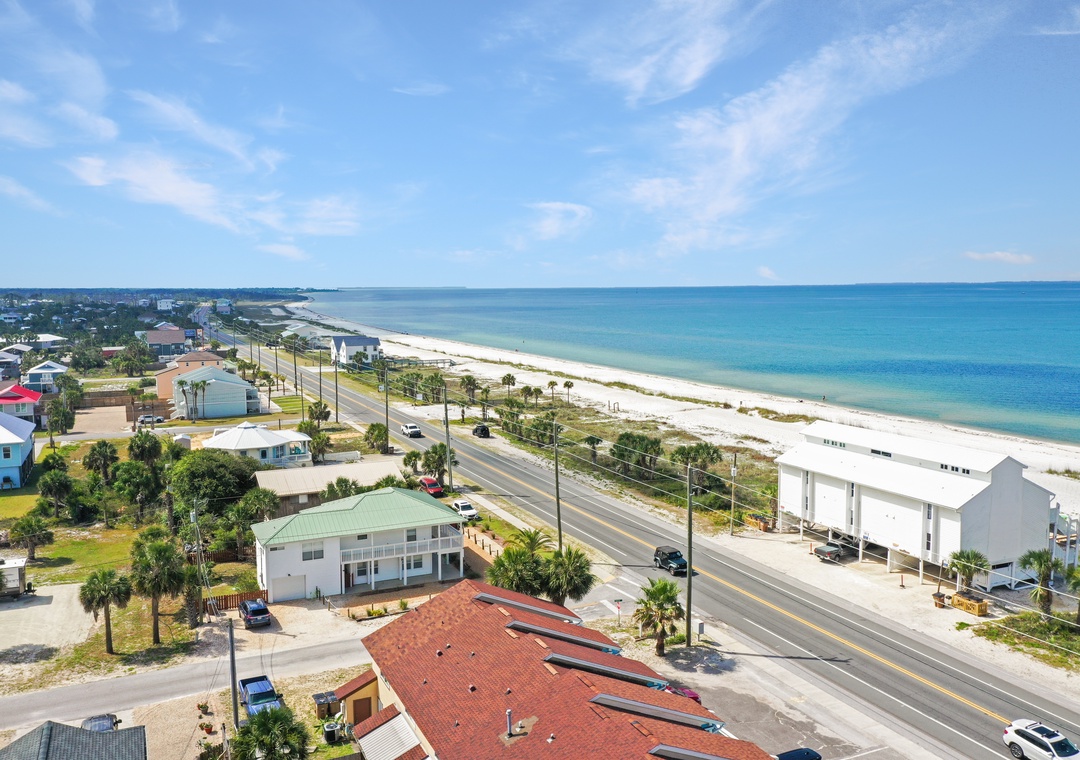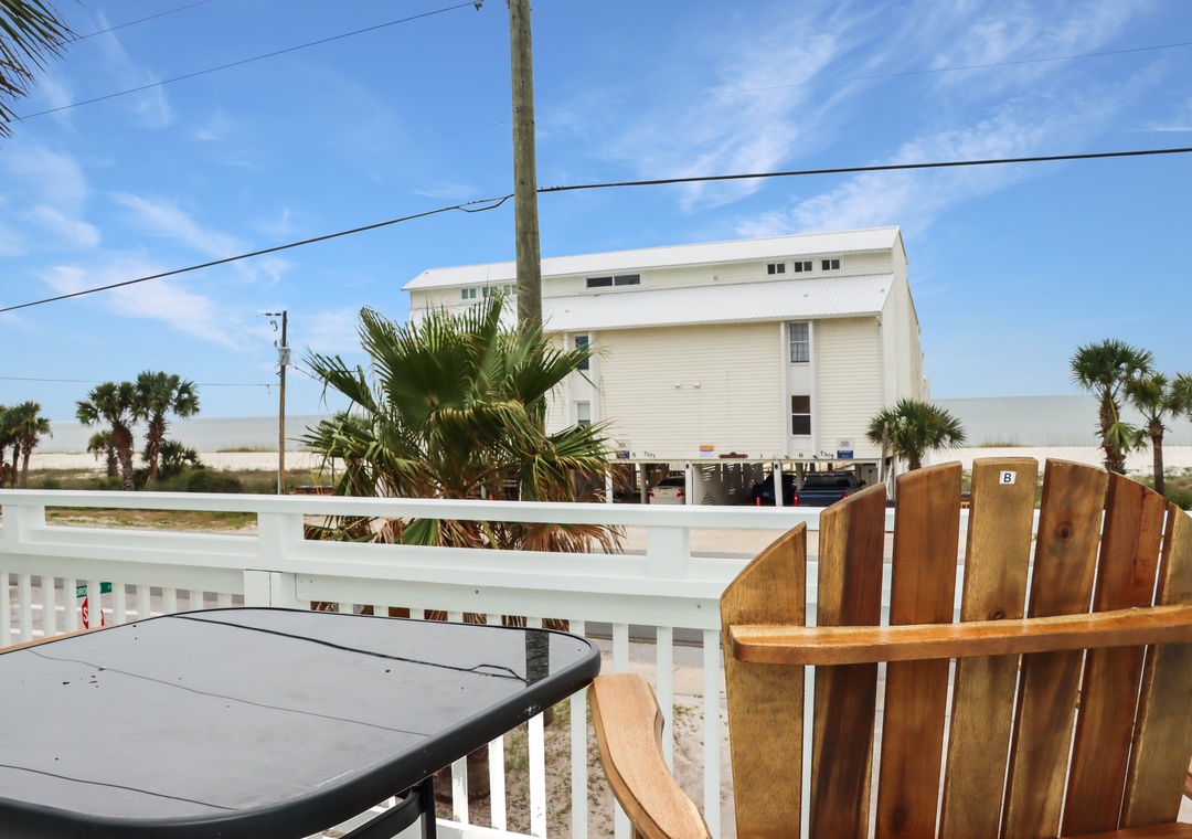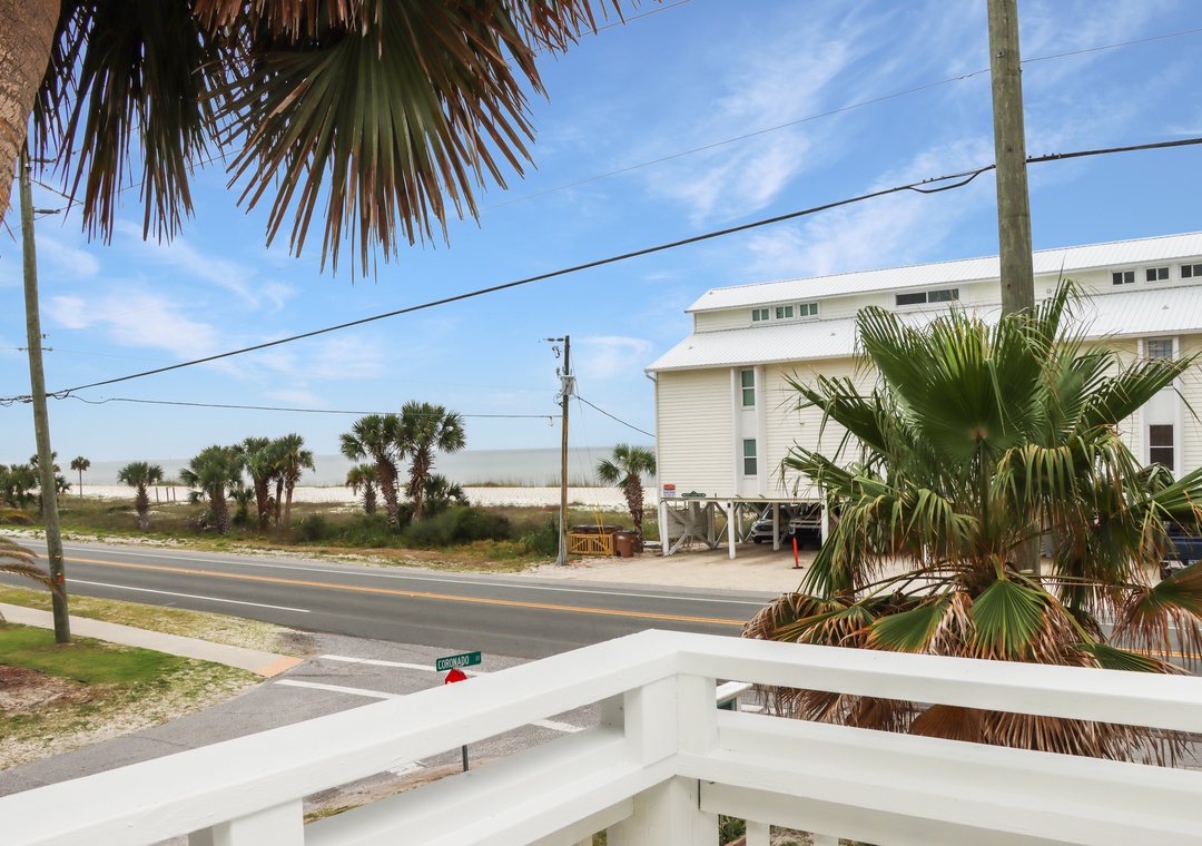 Upstairs, you'll find two bedrooms and a full bathroom. The main bedroom features a comfortable queen bed and direct access to a beach view sun deck, where you can enjoy outdoor dining and breathtaking views of St. Joe Beach.