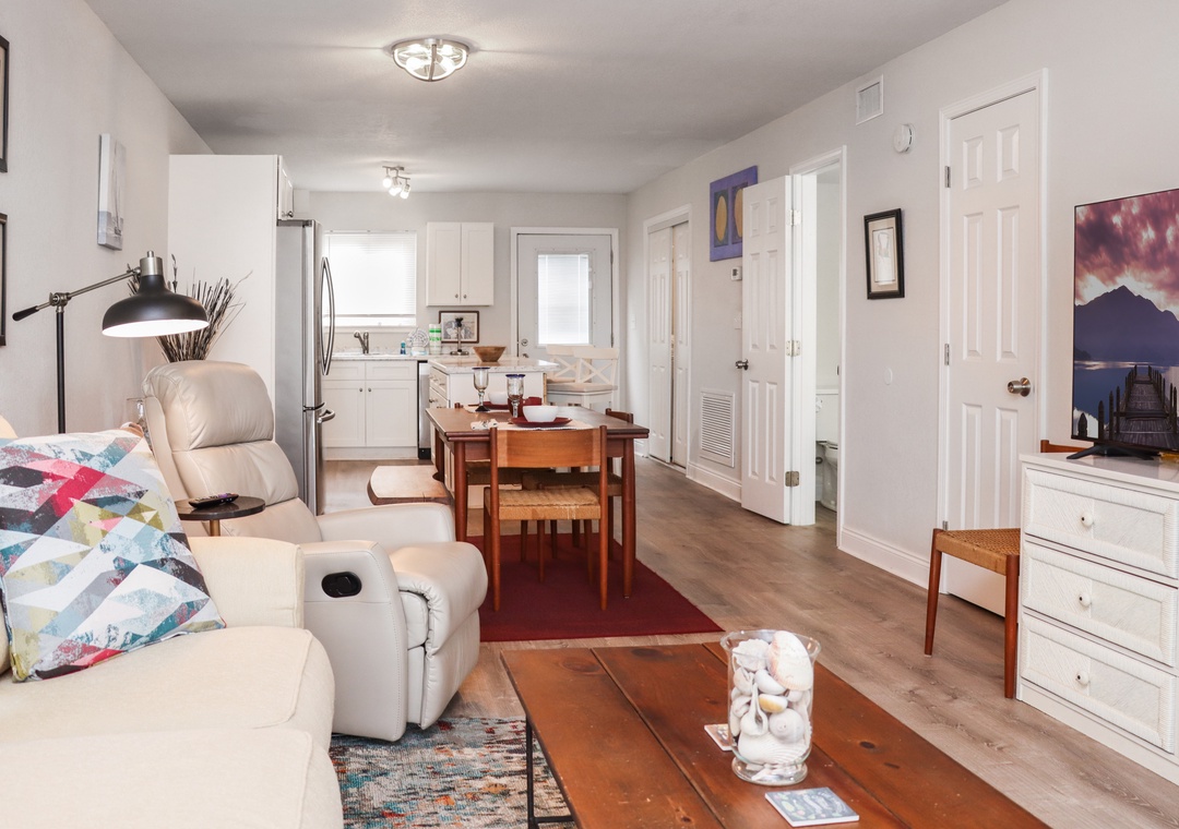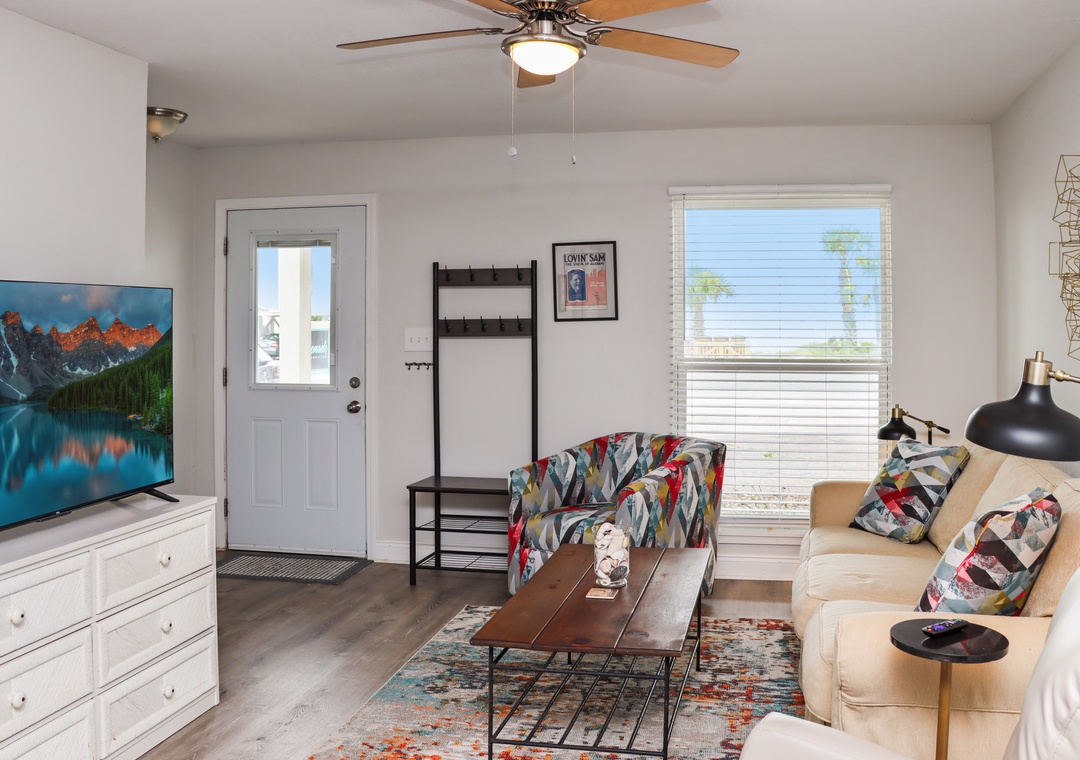 As an end unit in the building, Sunset Blvd provides a spacious and private environment for you and your party of up to 6. Upon entering the townhouse, you'll be greeted by a warm and inviting open living area with a cozy living room, dining area, fully equipped kitchen, half bathroom, and laundry facilities. The ground floor access ensures a convenient and comfortable stay for all guests.