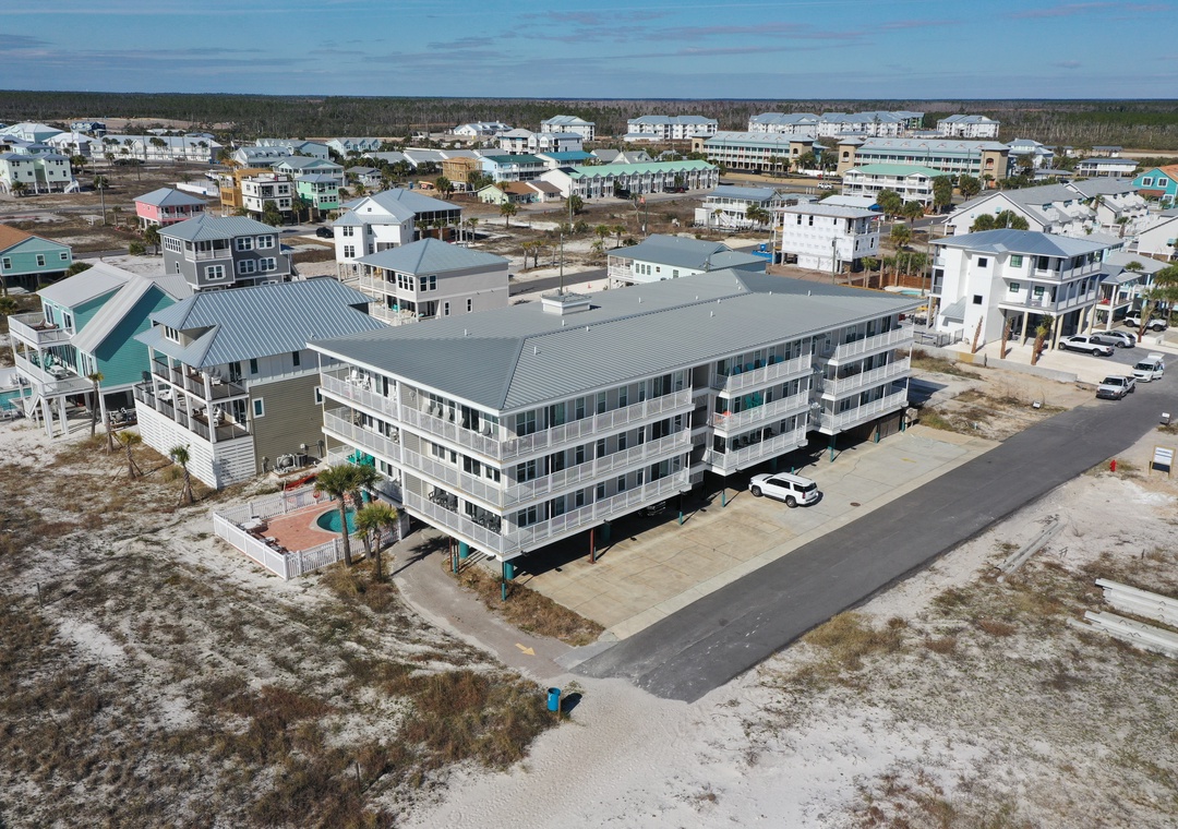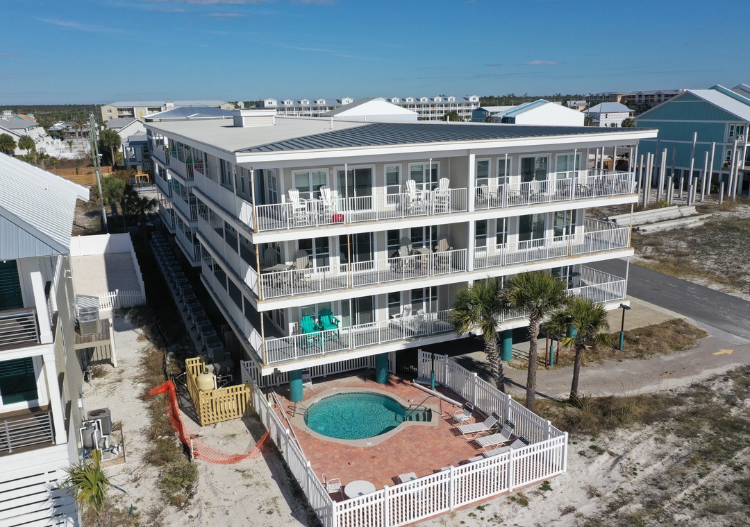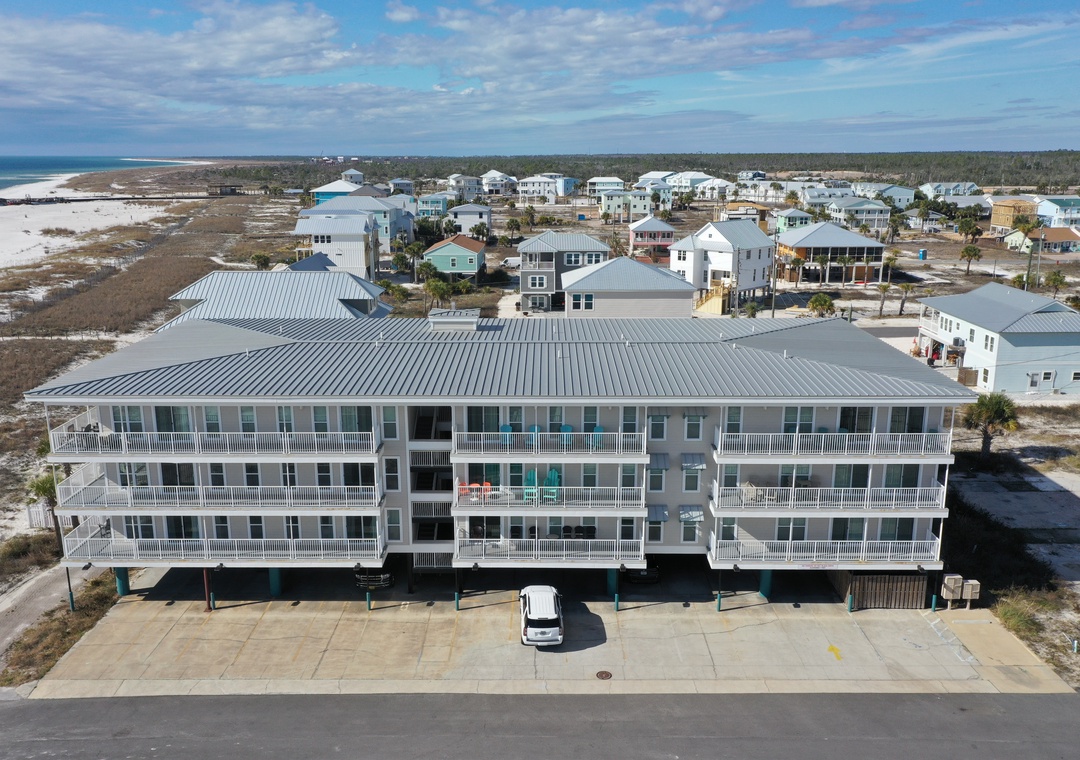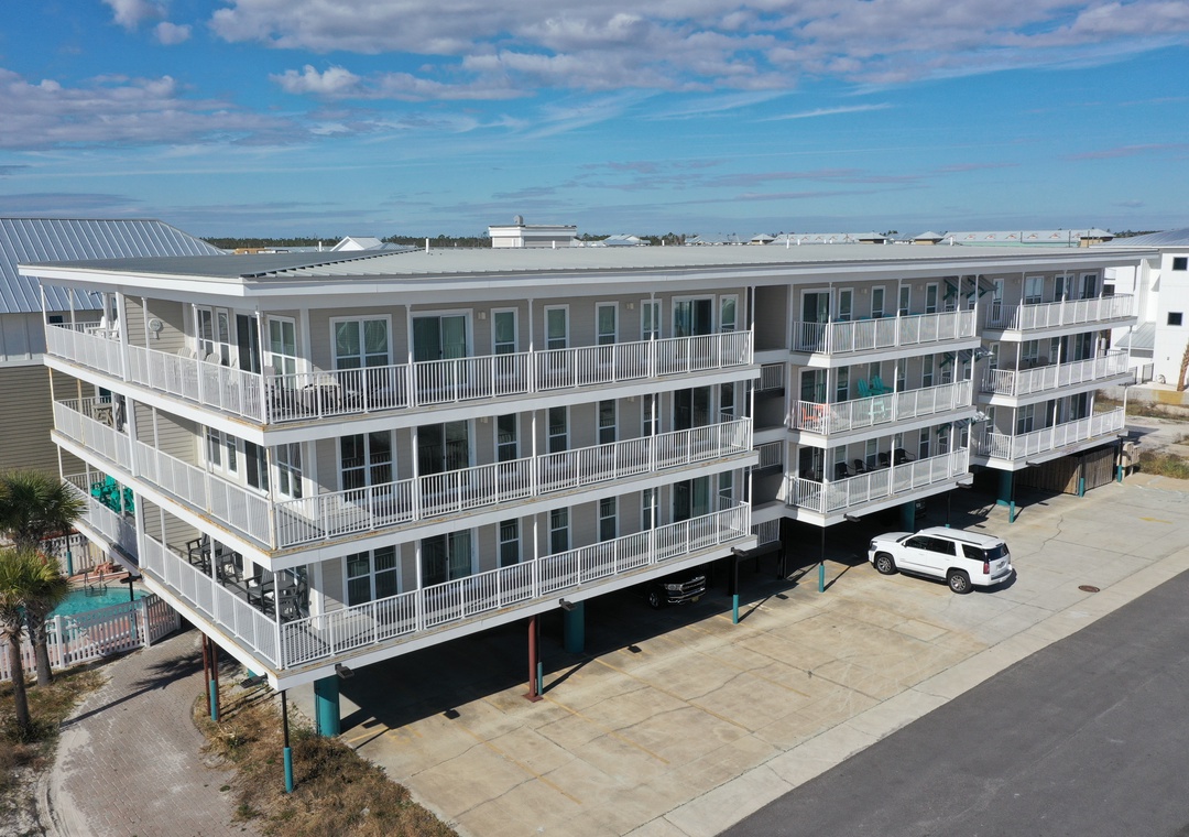 Located on the West End of Mexico Beach, Surfside is a gulf front condo complex with fantastic views and easy beach access. The building is the only condo complex located on a beachside street and not directly on Highway 98 making noise and traffic less of a concern. Surfside 15 is a 2 bedroom, 2 bath unit located on the top floor of the building. The views from the large furnished balcony are amazing and stretch down Mexico Beach as far as the eye can see. The unit is a single level and is accessed by either elevator or exterior stairs. The beach access is located just below the complex so access to beach and property are super easy.