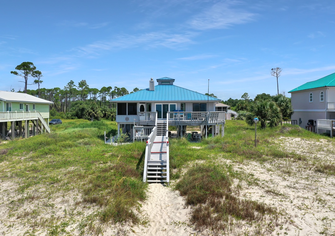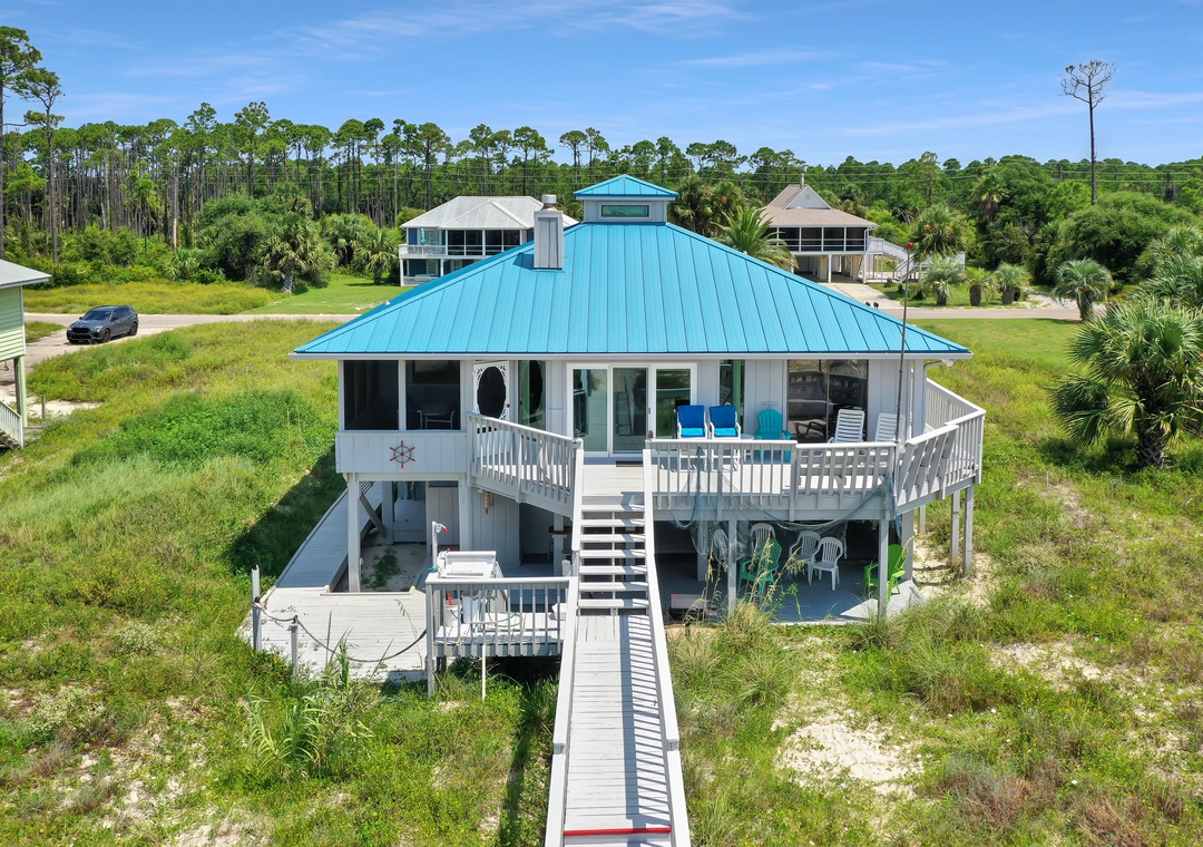 This beach house is absolutely perfect- we LOVED the style and decor! The location is great for accessing both amenities in Port St. Joe and the beautiful beaches, sunsets, and state parks on Cape San Blas. The kitchen is equipped with everything you need to cook anything from crab boils, shucking scallops, basic breakfast, and beyond. The set up outside was perfect for my partner to store all his fishing gear and clean and cook any catch right by the waterfront. I loved that there is a sound system to connect and play music inside and on the dining area on the porch! This home would very comfortably sleep many more but was also not too huge for a party of two. We loved having an essentially private beach right outside the house. The amount of cleaning supplies and bathroom essentials was plenty for the length of our stay, but we did bring extra just in case. You can tell that this is a home built and maintained by a loving family and we absolutely cannot wait to return!- Reviewed On: 8/30/2024