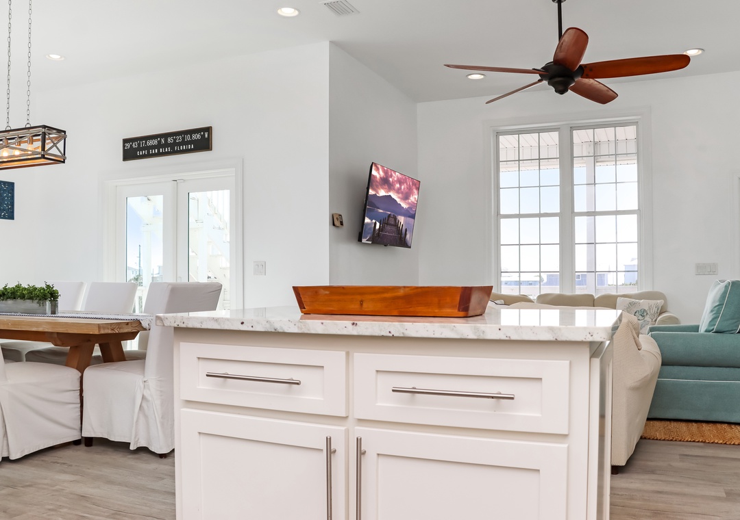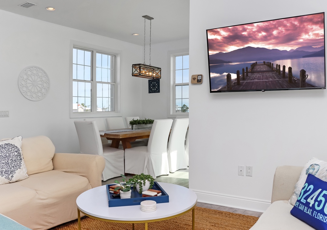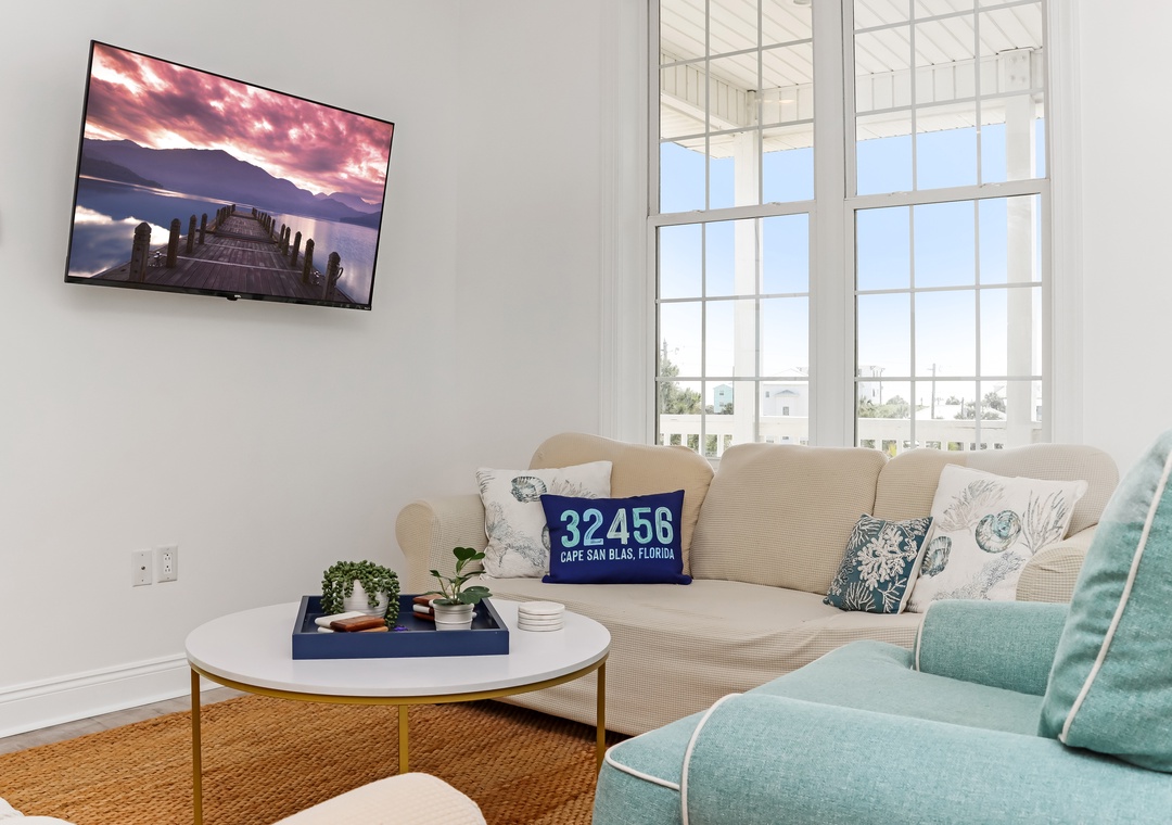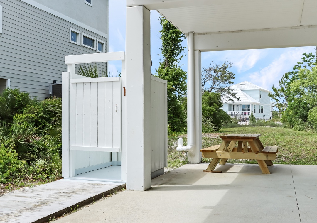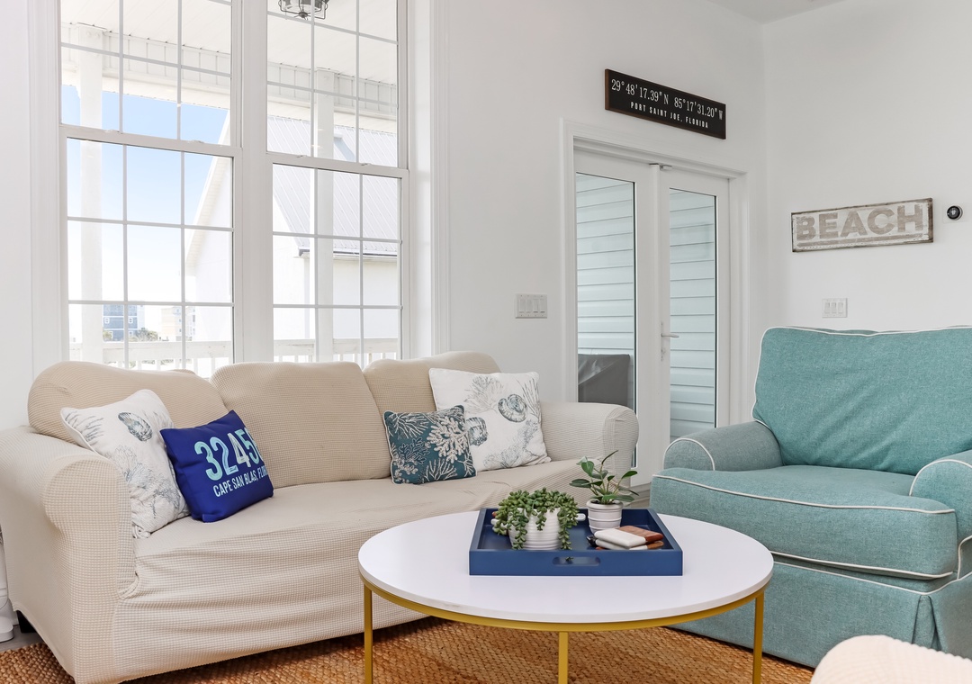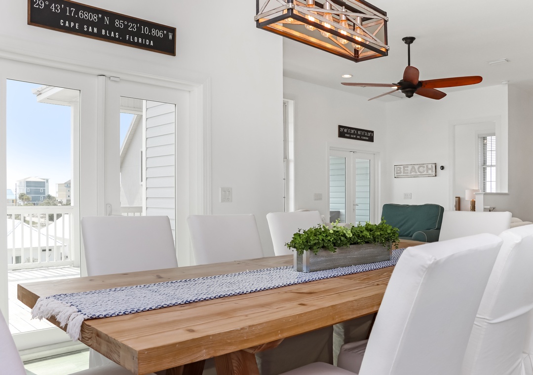 Welcome to The Blue Pelican, your perfect seaside escape on Cape San Blas's bayside. This stunning 5-bedroom, 3.5-bathroom beach home comfortably accommodates up to 12 guests and is also pet-friendly. Enjoy the outdoors in the spacious backyard and covered area under the house, which features an outdoor shower and a picnic table. The two levels of covered decks offer beautiful views of the Gulf and Bay, along with a rooftop deck for panoramic vistas. With luxurious outdoor furniture, including an oversized swing, you may find it hard to leave one of the two decks.