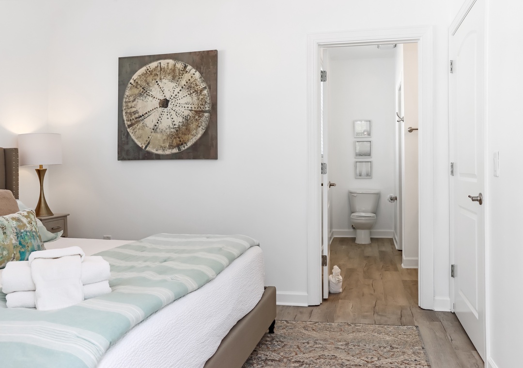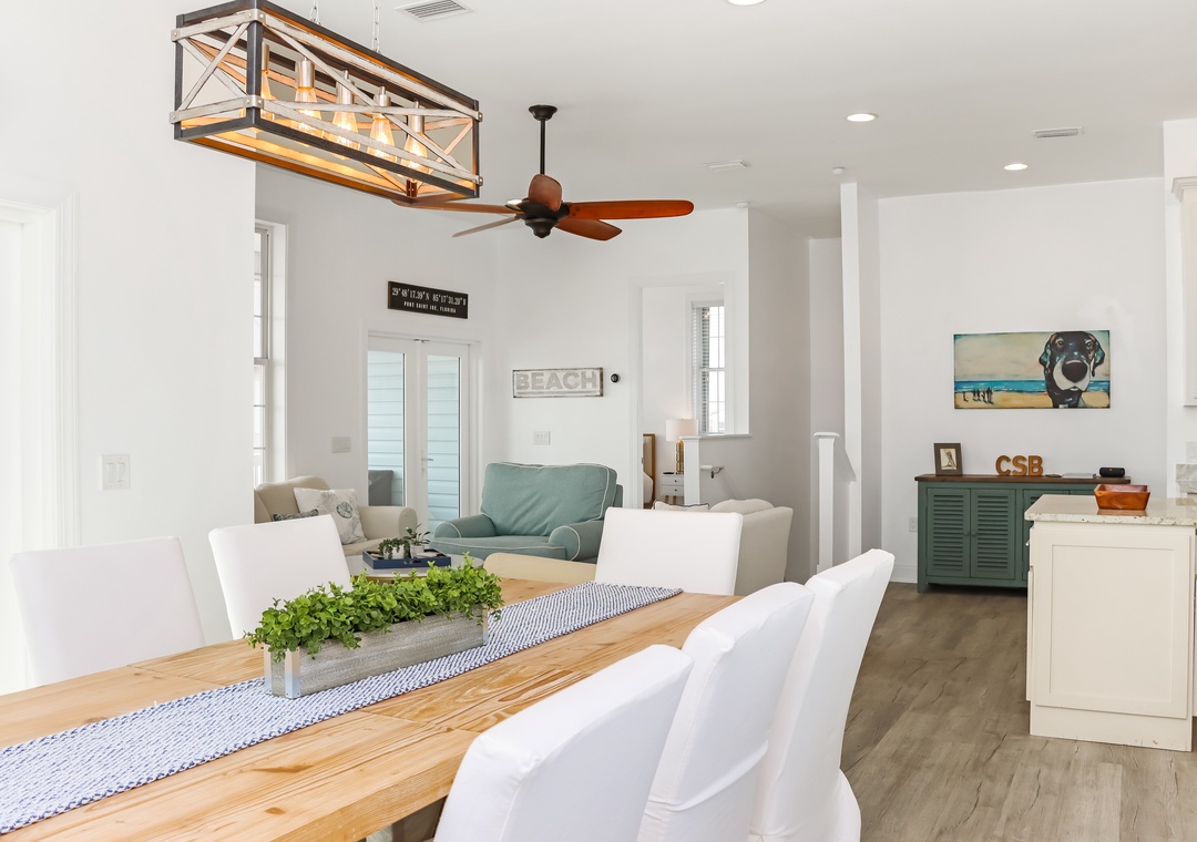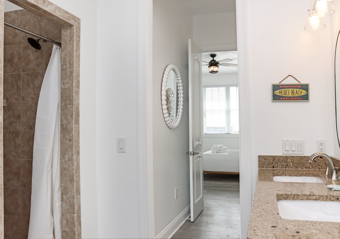 Inside, you can unwind in four luxurious bedrooms, each with a king bed, and a fifth bedroom with two bunk beds. The top-floor sanctuary includes a well-equipped kitchen, a living room with beach views, and a stylish dining area. The master bedroom is a private oasis, complete with a soaking tub and a separate shower. Experience a thoughtfully curated vacation rental where every detail enhances your enjoyment, and let the Gulf beckon you for an unforgettable stay.