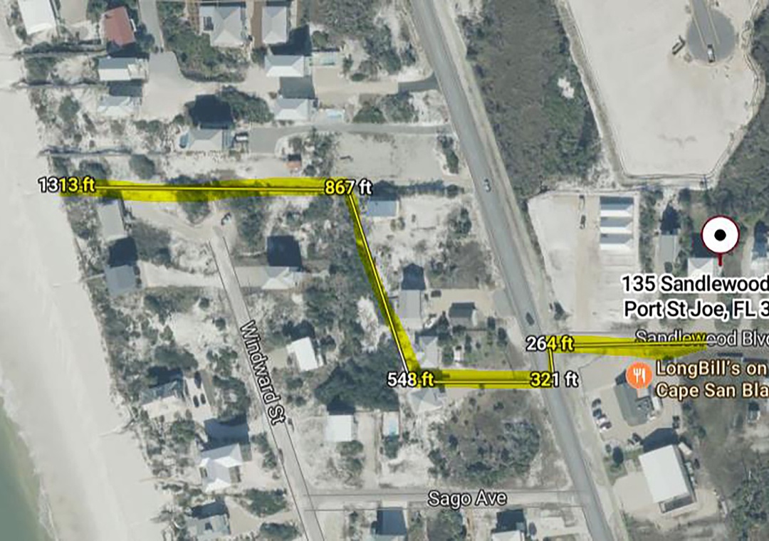 * Across the Street from Longbill’s restaurant on Cape San Blas