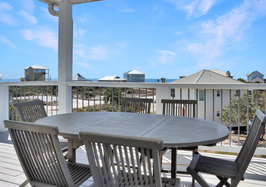 Discover The Gulf Club, a beautiful 3-bedroom, 3-bath beach house in Cape San Blas, accommodating up to 10 guests. It's perfect for family vacations or groups seeking relaxation by the sea. Just a short stroll from the beach, The Gulf Club invites you to indulge in breathtaking gulf views from multiple vantage points within the house and its expansive two-level decks. The decks offer covered and open areas, and plenty of outdoor furniture and dining spaces. You'll have the perfect spot for alfresco meals or simply soaking up the sun. The private pool provides a tranquil retreat. Inside, the beach house features two distinct living areas. The first-floor living area includes a sleeper sofa, sliding glass doors leading to the deck, two comfortable bedrooms, and two bathrooms. The open-concept main living area on the top floor encompasses a spacious living room, dining area, fully equipped kitchen, and the third bedroom. For your convenience, an additional refrigerator on the ground floor ensures ample space for all your culinary needs, making it easy to store extra food and beverages for your stay. Whether lounging by the pool with an ocean view, dining under the stars, or enjoying the comfort and style of the interior spaces, The Gulf Club promises a memorable and rejuvenating beachside escape.