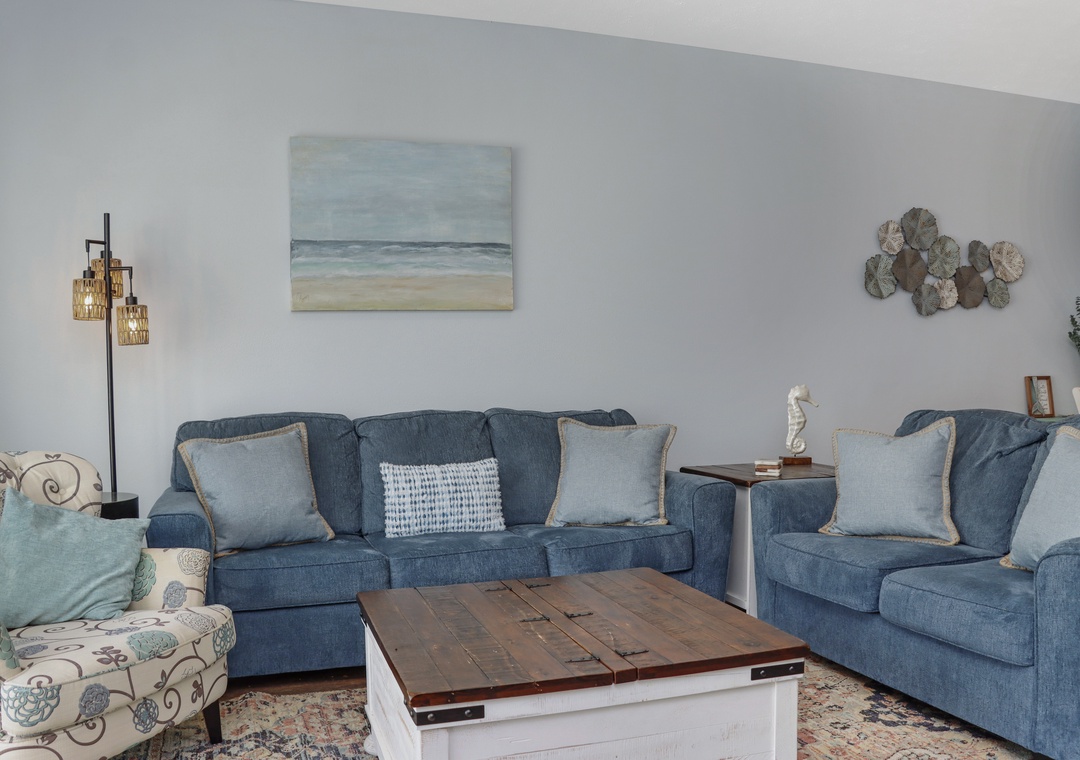 Discover the charm of coastal living at The Salty C Shell, a cozy 2BR/2BA townhouse in Oceanside Village. Perfect for creating seaside memories in Mexico Beach. Accommodating up to 7 guests, the first bedroom has a twin-over-queen bunk bed, a TV, and a deck with beach views. The private master suite features a king bed, a TV, and a deck overlooking the community pool, along with a master bath boasting a spacious tub and separate shower. The main living area includes a fully equipped kitchen, dining space, and a sleeper sofa. Enjoy outdoor relaxation on two poolside decks and a covered roadside deck. With covered parking for one and an additional vehicle in the driveway, your stay is hassle-free. Embrace beach life and make unforgettable memories at your perfect home away from home!