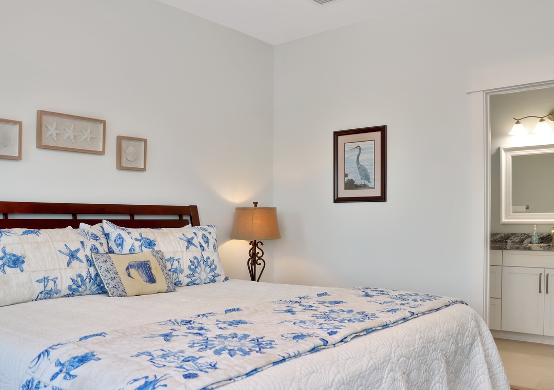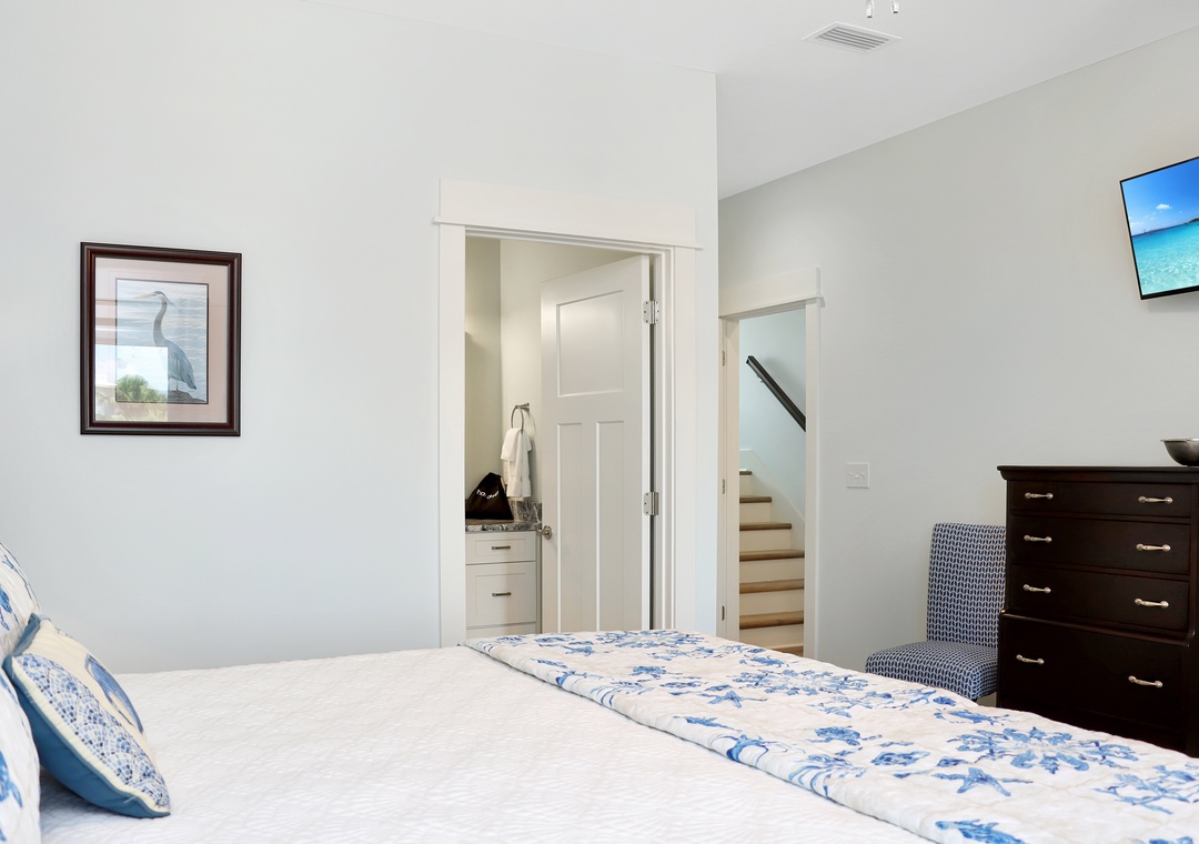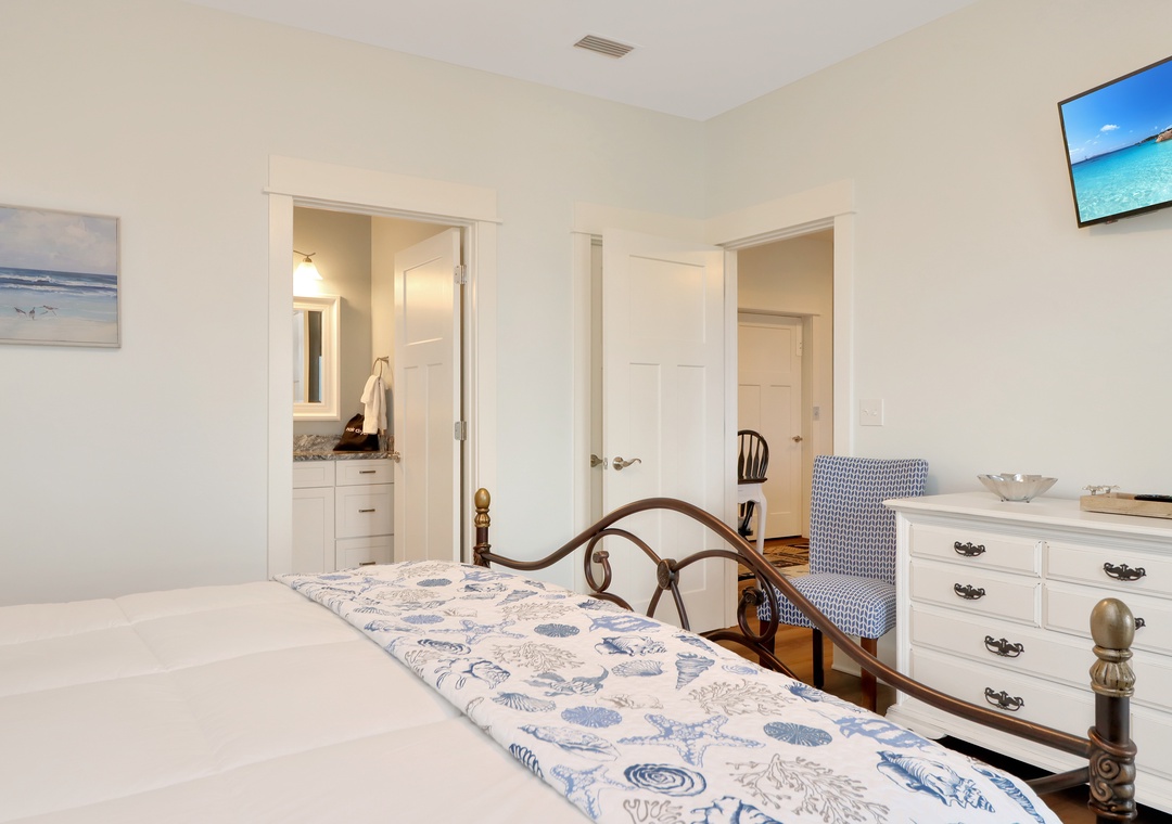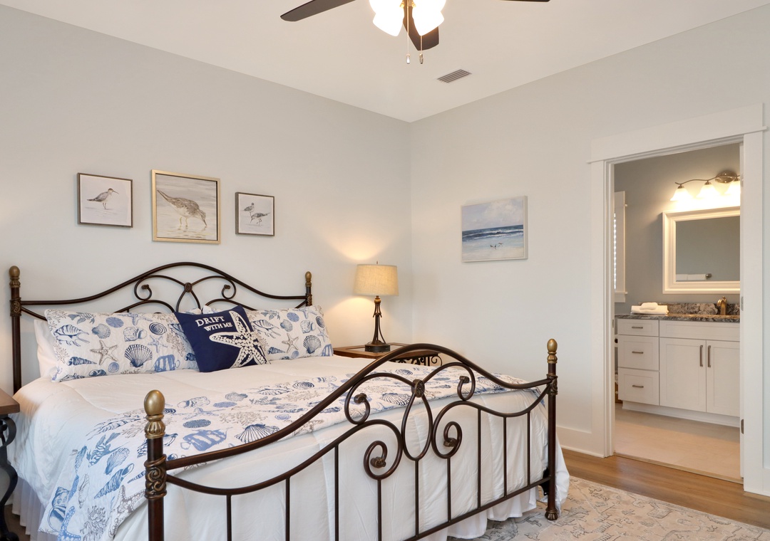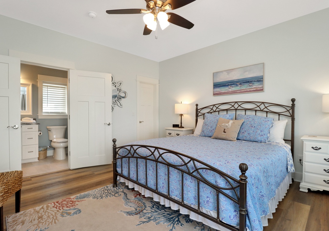 Master bedroom with king bed and master bathroom attached.