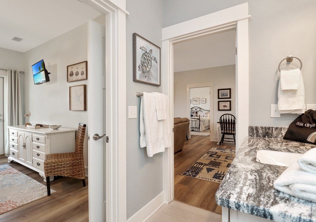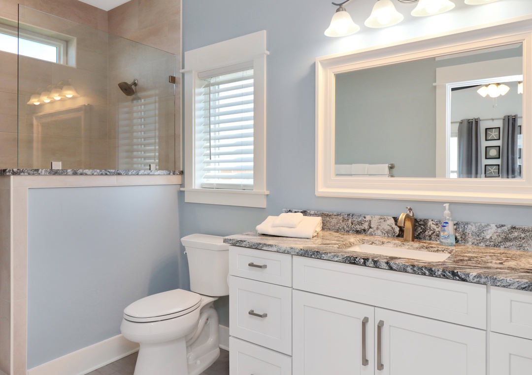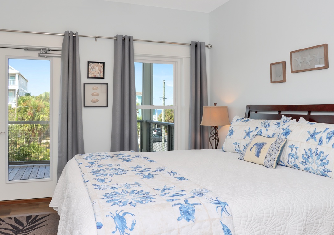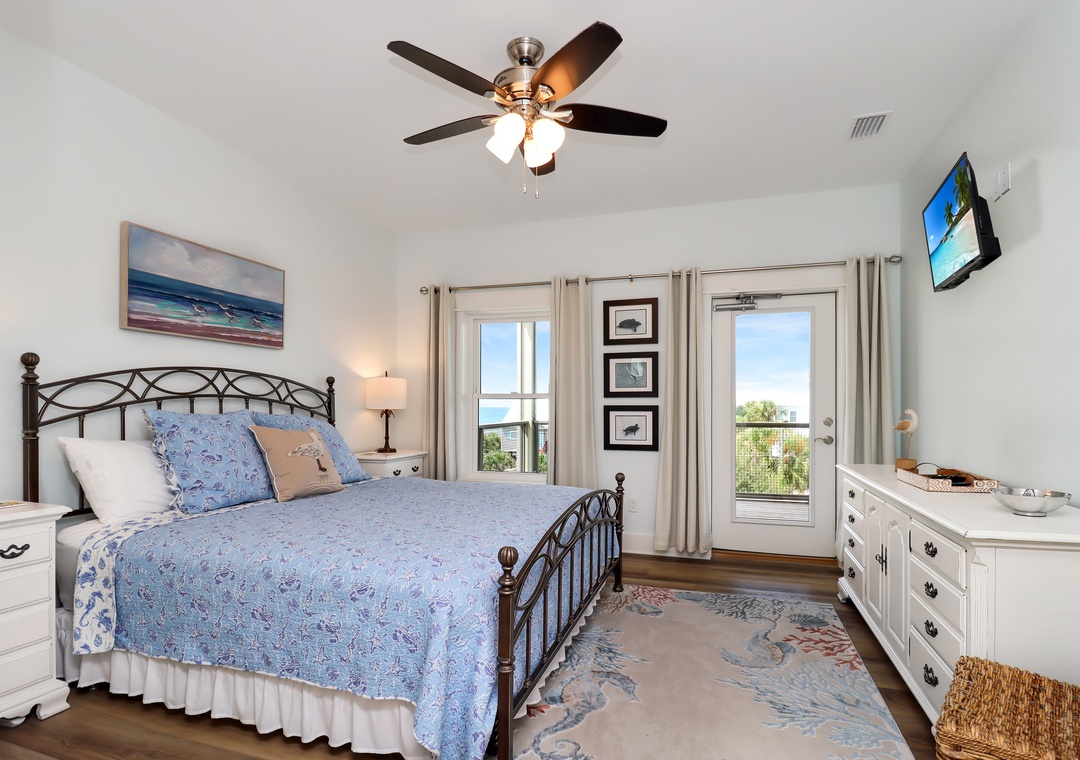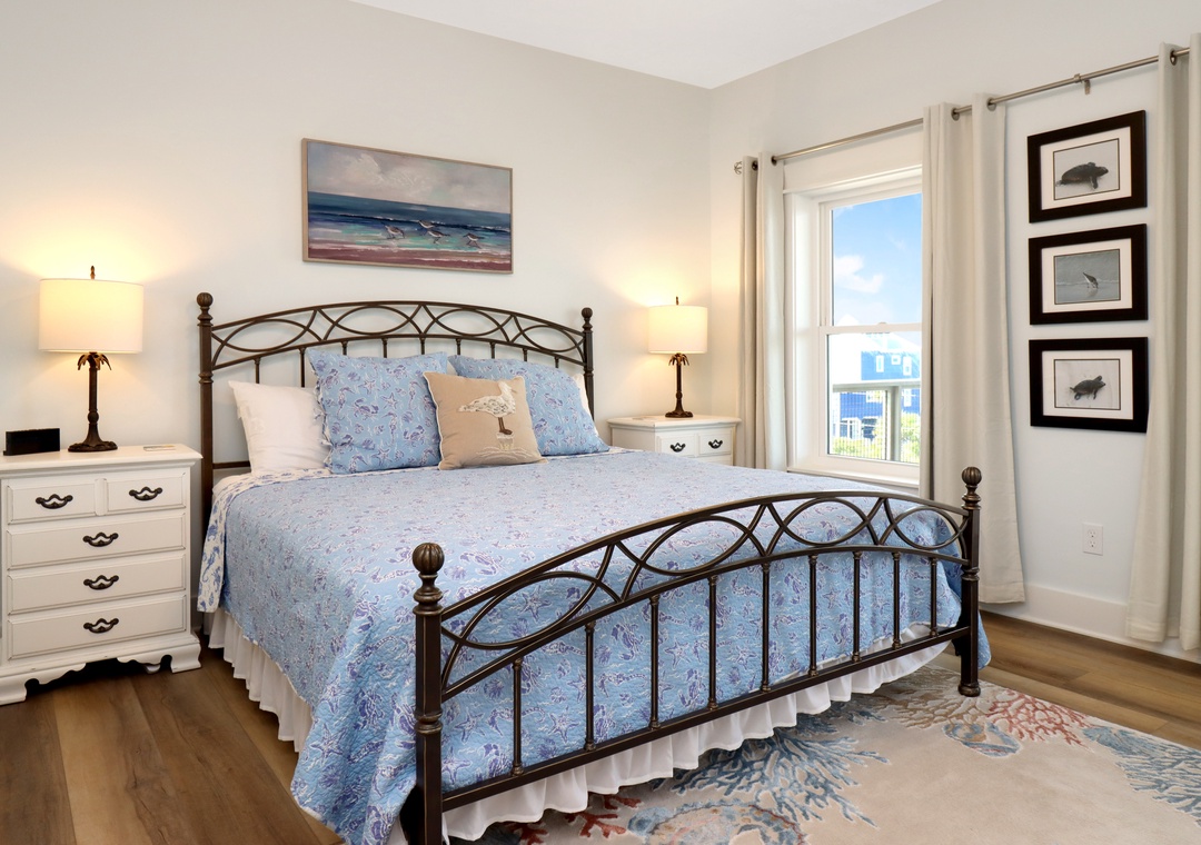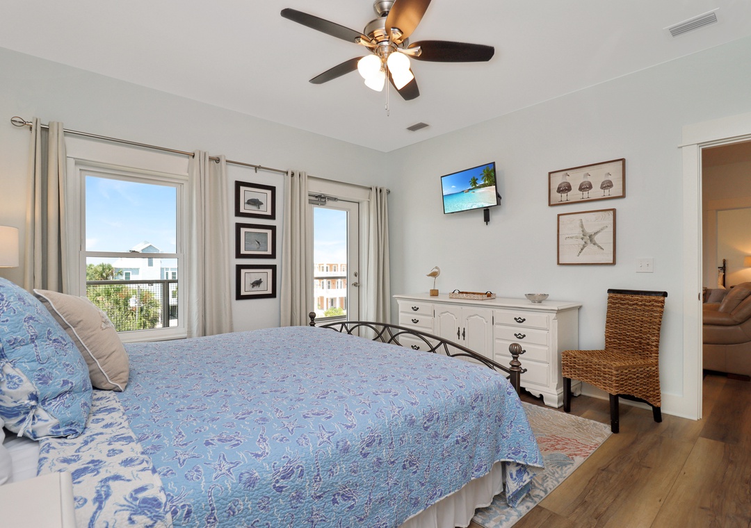 Master bedroom with king bed and master bathroom attached.