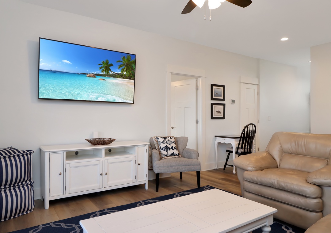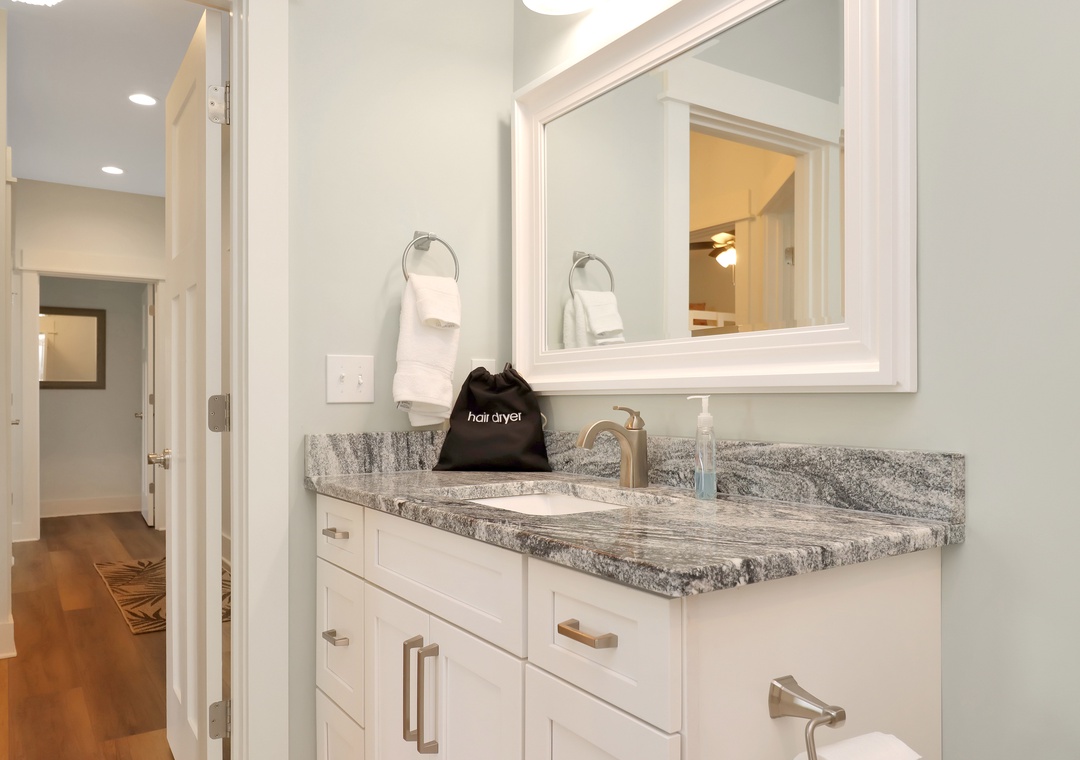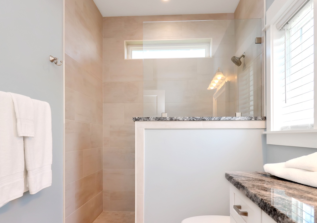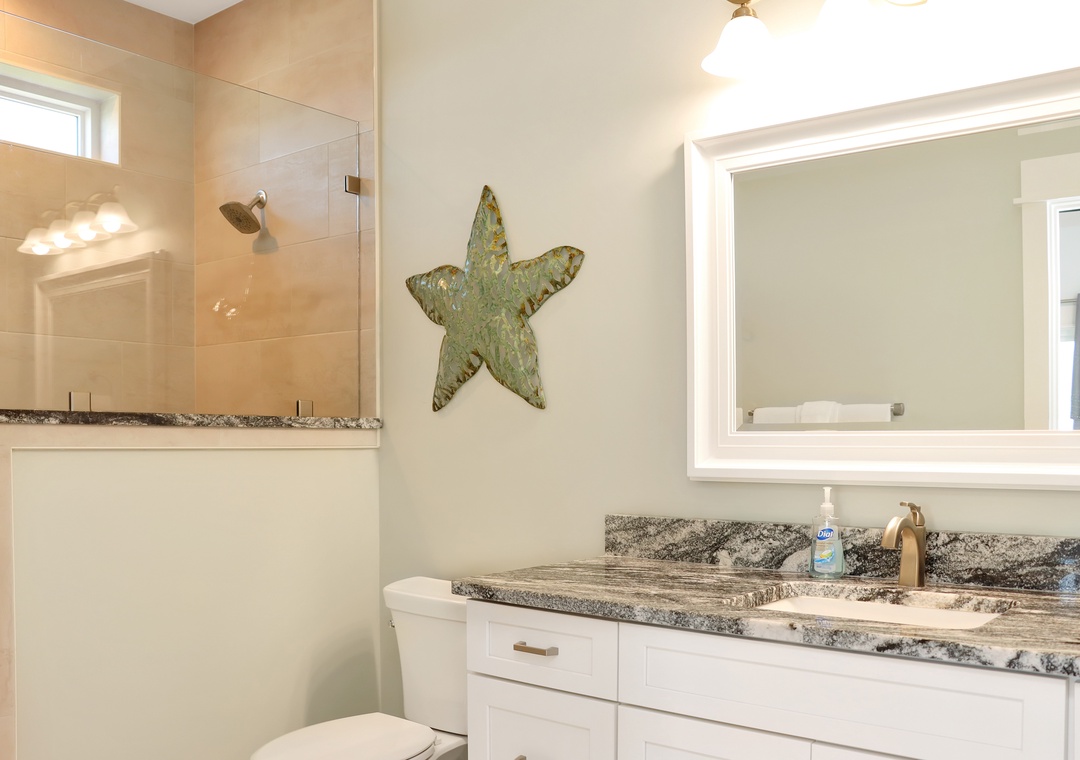The five bedrooms in this beach home are all tastefully decorated and offer comfortable sleeping arrangements for up to fourteen guests. Four of the five bedrooms come complete with their own private bathroom, three of which include king beds.
