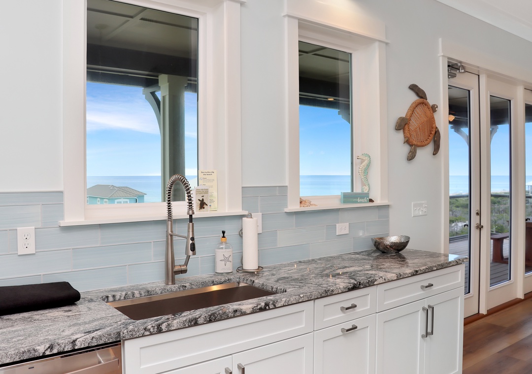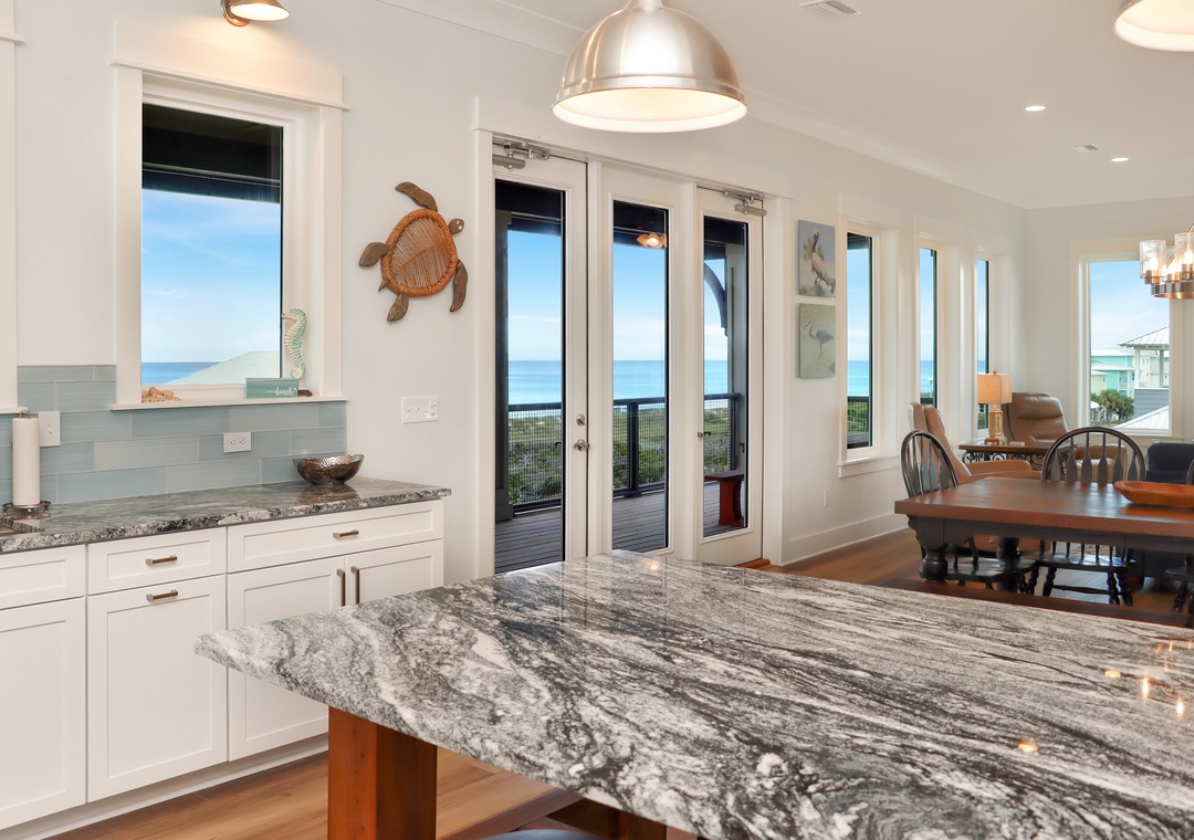 Came with my family and parents to the Sea Life. The views from the house are absolutely amazing of both the Gulf and the bay. One house back from the Gulf but with very close beach access and and a very wide wonderful beach. Located on a very quiet street off the main road. The house is immaculate, spacious and extremely comfortable with very tasteful decor. Loved the elevator for my parents, suit cases and groceries. Two of the bedrooms had low rise walk in showers which were great for my parents. The kitchen is well stocked with everything we needed and even a Weber gas grill on the top floor outside deck. We also enjoyed having two living rooms so the kids could have their space as well. Our favorite part besides the beach was the kitchen and main living room being on the top floor along with the expansive decks. We will definitively be back to the Sea Life.from Atlanta - Posted: 1/6/2024