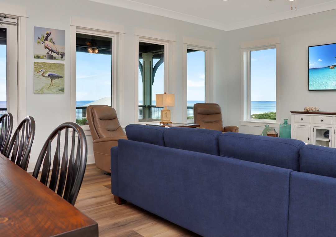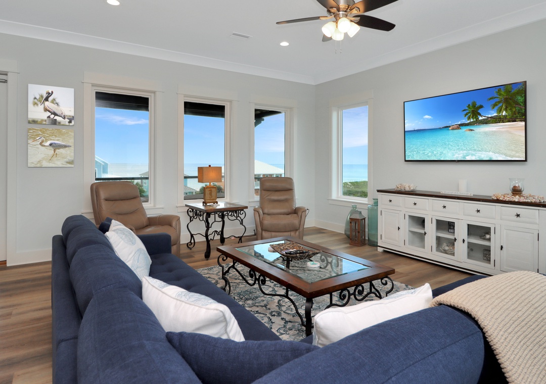 One of the highlights of this rental home is the three levels of beach side decks. Imagine sipping your morning coffee while watching the sunrise over the Gulf, or enjoying a glass of wine in the evening while the sun sets on the horizon. The decks are also equipped with outdoor furniture, making them the perfect place to relax and unwind.