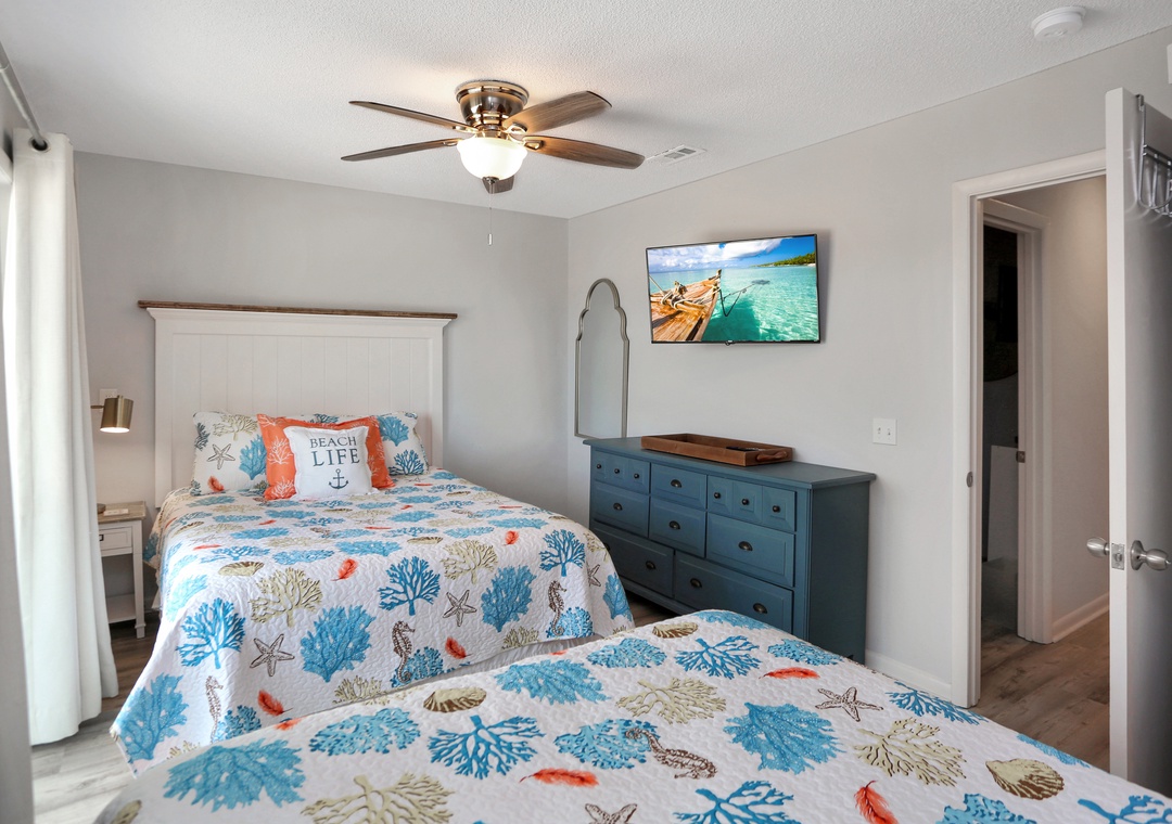 Thank you for your feedback, Alanna. It’s great to hear that you enjoyed your stay and appreciated the easy beach access and well-stocked kitchen. We’re glad the AC was working well for you and that you found some great seafood. We appreciate your feedback regarding the size of “kid” bedroom; we always value guest suggestions for improvement. Looking forward to welcoming you back next year!Visit Florida Beaches staff