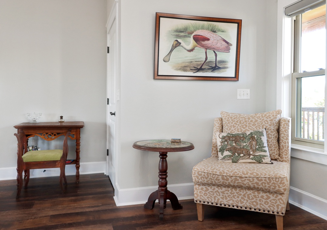 Thank you for your review, Sharon. Glad Treetops provided a peaceful retreat — the back porch with bay views, easy walk across to the beach, and the nearby dining options. Happy you enjoyed the unique decor and that it was dog friendly. We look forward to hosting you again.Visit Florida Beaches staff
