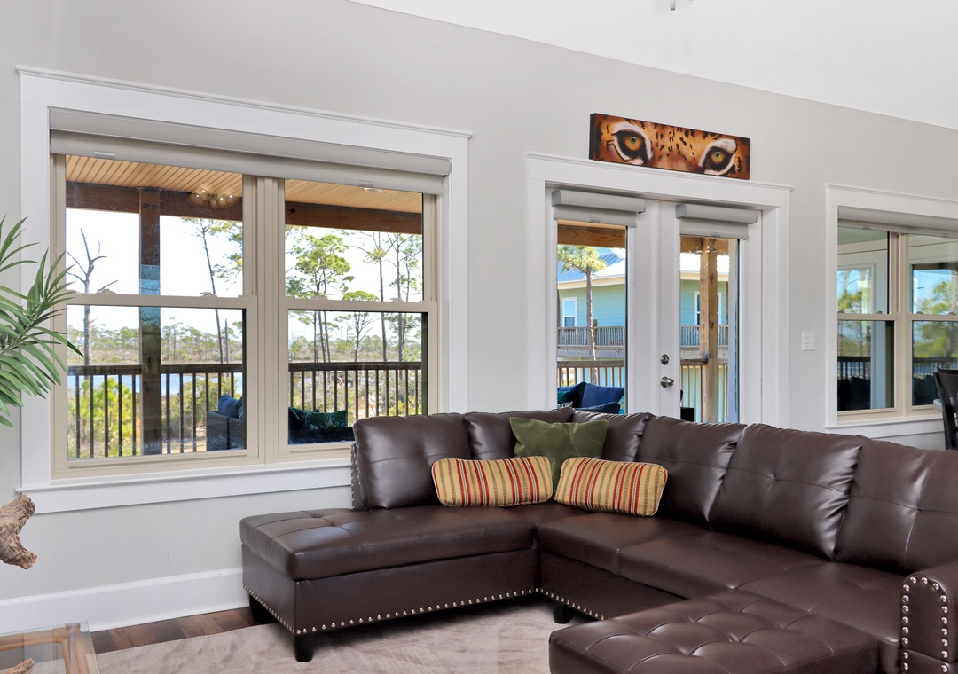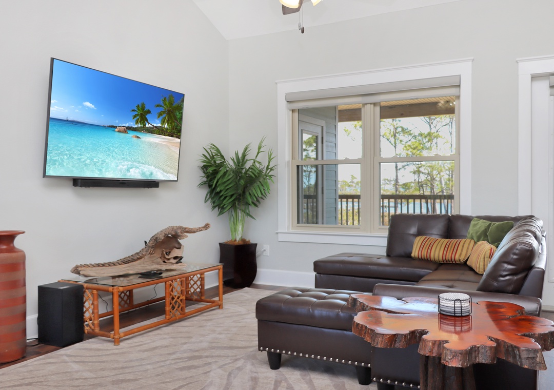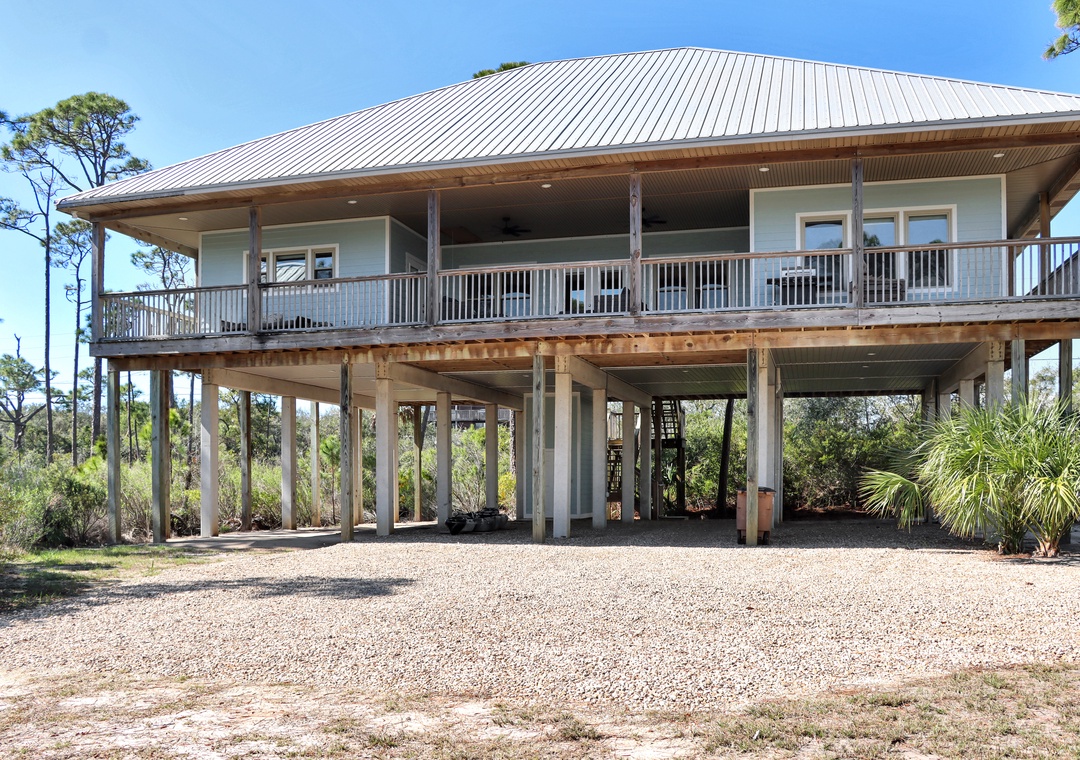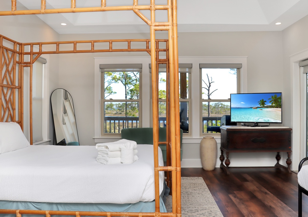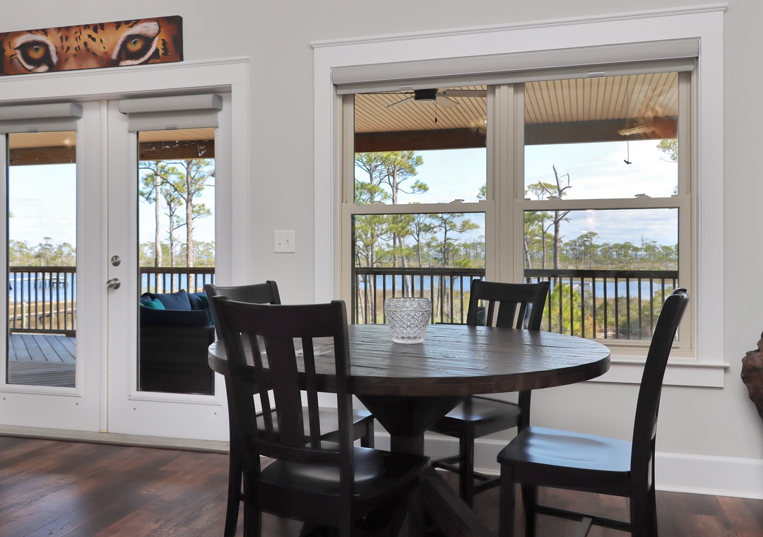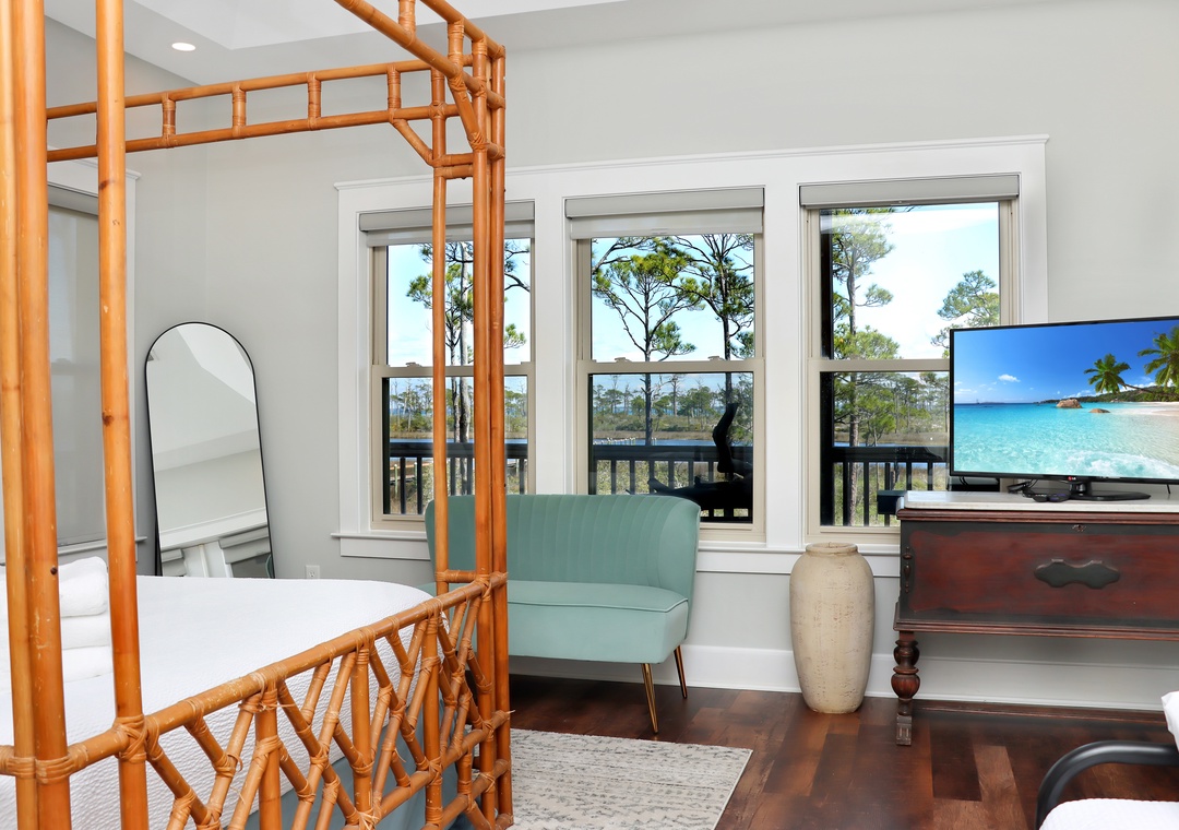 This was our first vacation rental experience and our first time visiting Gulf County and both were amazing. I loved the Treetops house from the first time I saw the pics online. It was just what we were looking for from the location, the privacy and the amazing waterfront views. The home was so clean upon our arrival and true to the pics. I loved the safari/tropical decor, split floor plan, wraparound porch, vaulted ceiling in the great room, windows with a view everywhere! The master bathroom has a huge shower and a claw foot tub. The kitchen is full of dishes, glassware, pots & pans and all the appliances except for an ice maker. The back porch was my favorite place. Comfortable outdoor furniture, ceiling fans, and an amazing view of the bay and the private dock. The house is conveniently located to the 2 main stores on the cape. Pet owners be aware that the area is not as pet friendly as you read online. Several businesses and beaches on the cape weren’t dog friendly. Additionally, Treetops is a dog friendly rental but we had some challenges with the stairs and rocks underneath the house with our small senior dog. Pristine Properties made everything run smoothly and we definitely recommend them. I would like to suggest larger and more comfortable living room furniture, some kind of furniture for the dock, and a king size bed for at least the master bedroom. We would definitely book Treetops again if it gets a new couch.- Reviewed On: 7/1/2025