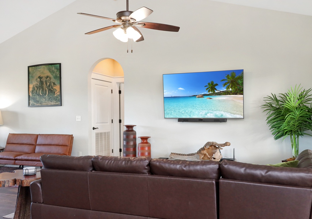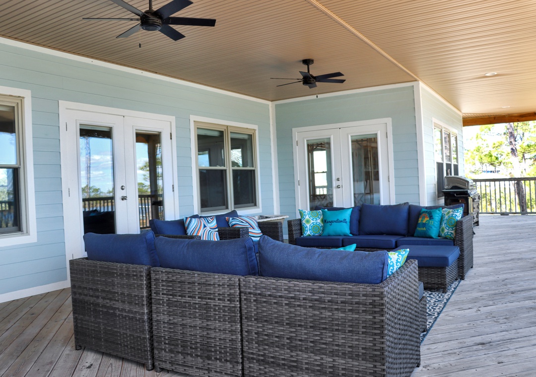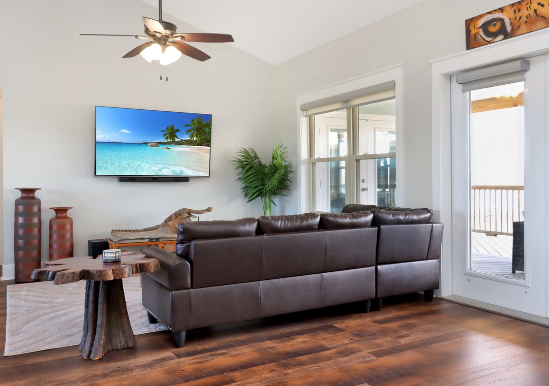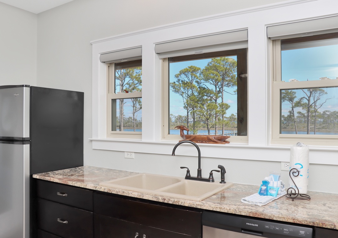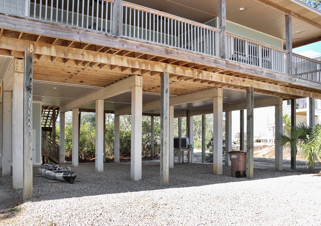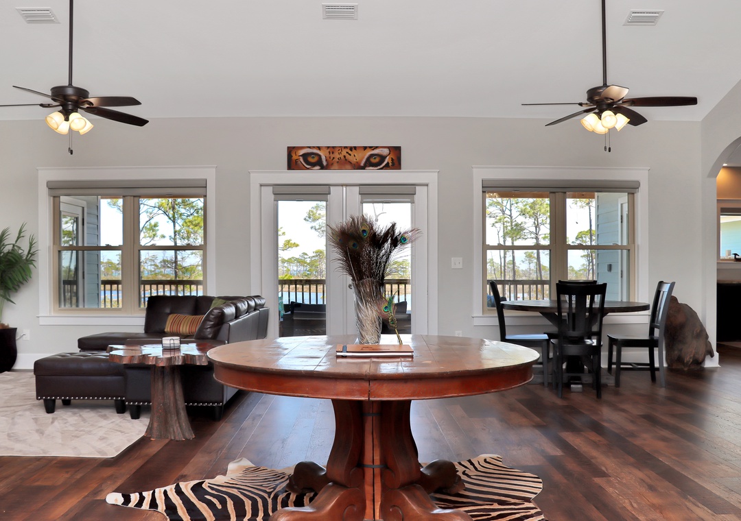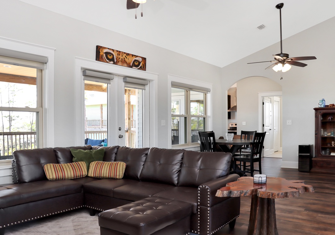 This was our first vacation rental experience and our first time visiting Gulf County and both were amazing. I loved the Treetops house from the first time I saw the pics online. It was just what we were looking for from the location, the privacy and the amazing waterfront views. The home was so clean upon our arrival and true to the pics. I loved the safari/tropical decor, split floor plan, wraparound porch, vaulted ceiling in the great room, windows with a view everywhere! The master bathroom has a huge shower and a claw foot tub. The kitchen is full of dishes, glassware, pots & pans and all the appliances except for an ice maker. The back porch was my favorite place. Comfortable outdoor furniture, ceiling fans, and an amazing view of the bay and the private dock. The house is conveniently located to the 2 main stores on the cape. Pet owners be aware that the area is not as pet friendly as you read online. Several businesses and beaches on the cape weren’t dog friendly. Additionally, Treetops is a dog friendly rental but we had some challenges with the stairs and rocks underneath the house with our small senior dog. Pristine Properties made everything run smoothly and we definitely recommend them. I would like to suggest larger and more comfortable living room furniture, some kind of furniture for the dock, and a king size bed for at least the master bedroom. We would definitely book Treetops again if it gets a new couch.- Reviewed On: 7/1/2025