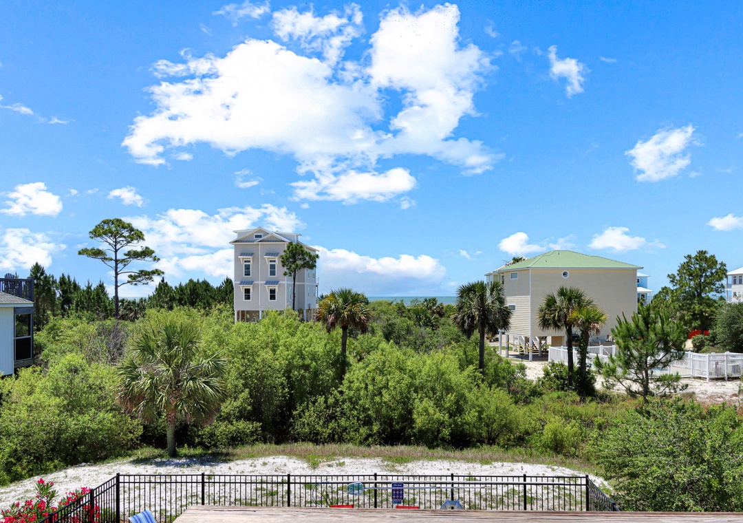 Ascend to the top floor, where two additional master bedrooms with king beds await, along with a loft housing a twin futon. The loft leads out to a top-floor sundeck, offering unparalleled views of the gulf and the perfect backdrop for sun-soaked memories.