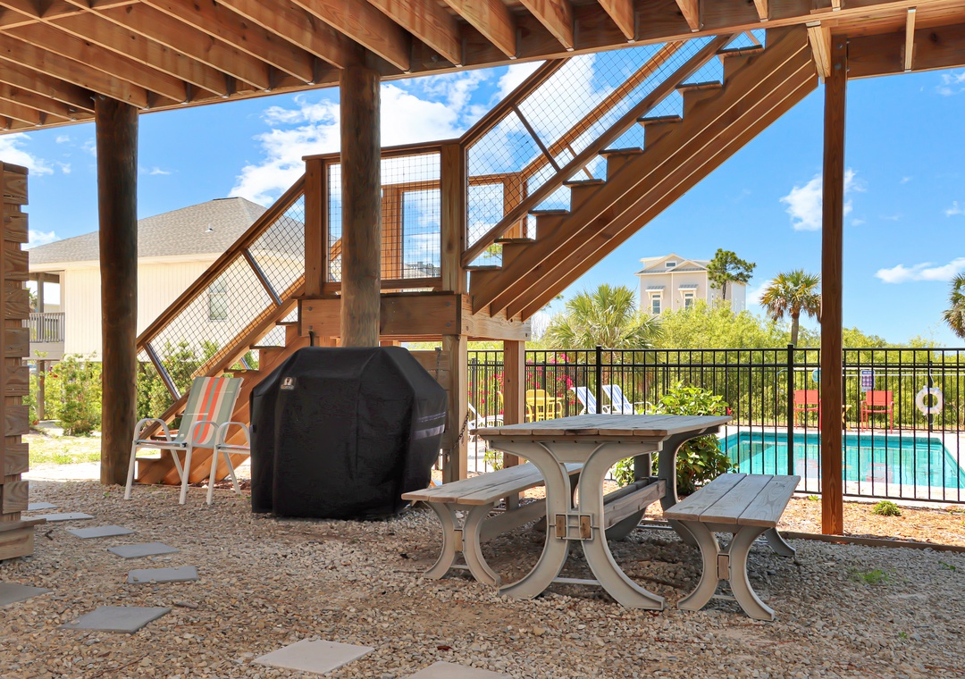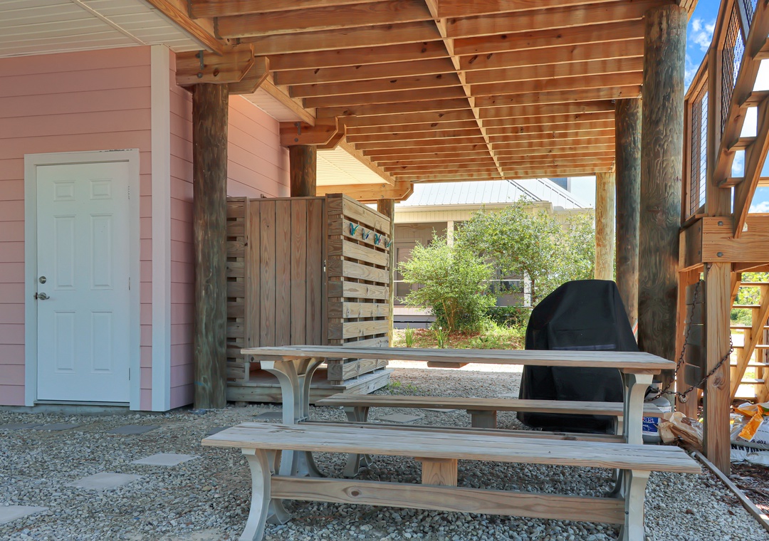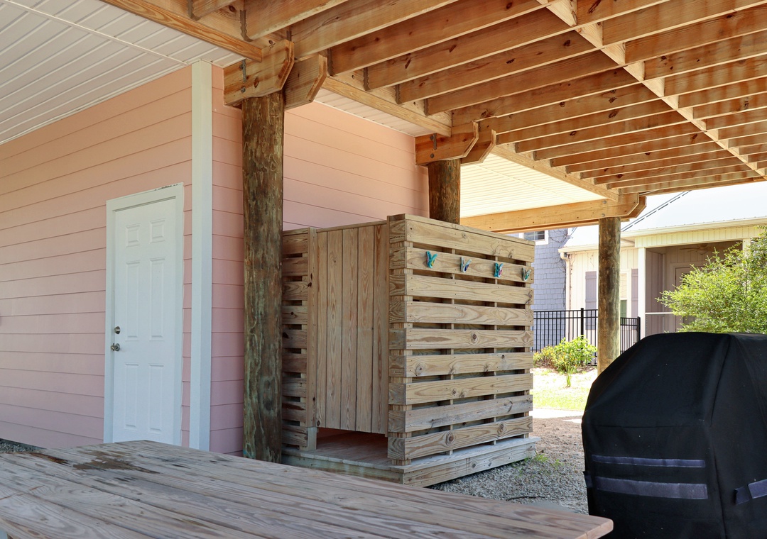 At Turtle Town, we pride ourselves on our unique amenities. With five parking spaces, we cater to those who wish to bring their boats along for endless aquatic adventures. Our property is rich with outdoor amenities, including a private pool where you can cool off under the Florida sun, a grilling area ideal for family cookouts, and a picnic space for al fresco dining. But what truly sets us apart is our enclosed outdoor shower, providing a convenient spot to rinse off the salt and sand after a day on the shore.