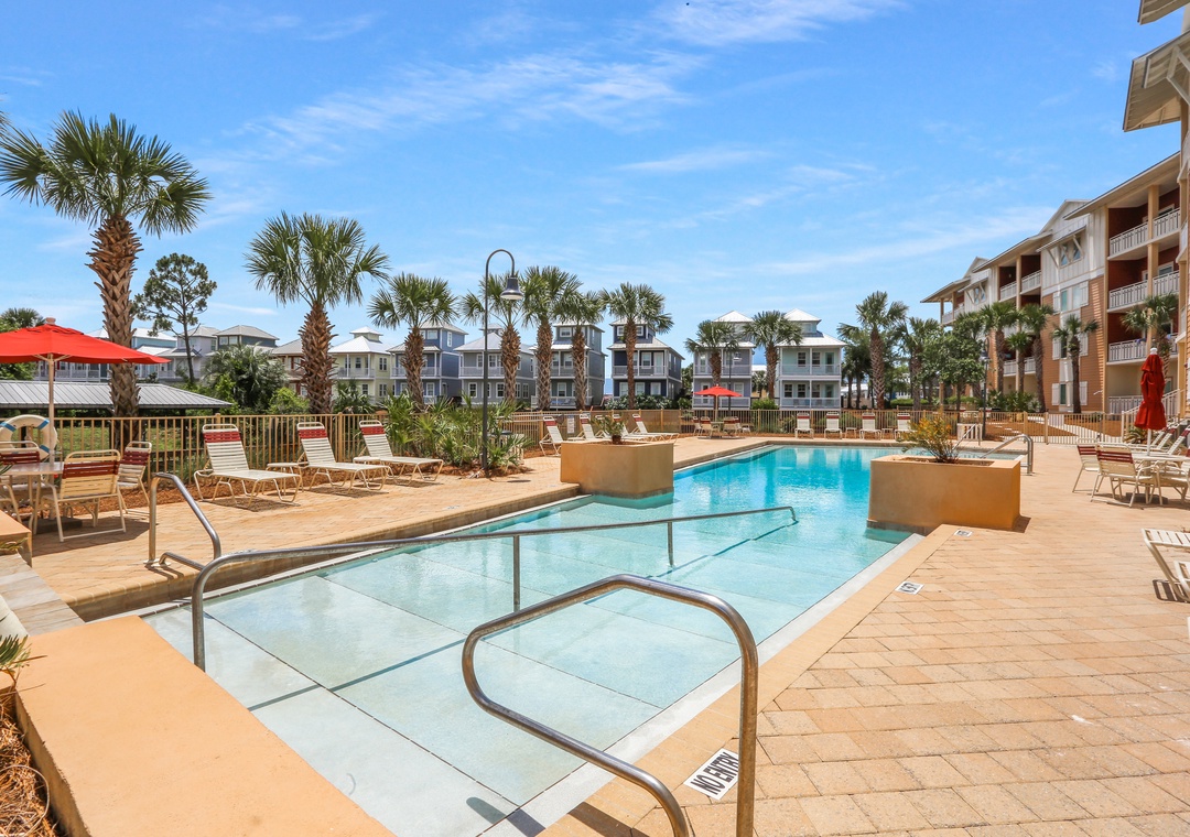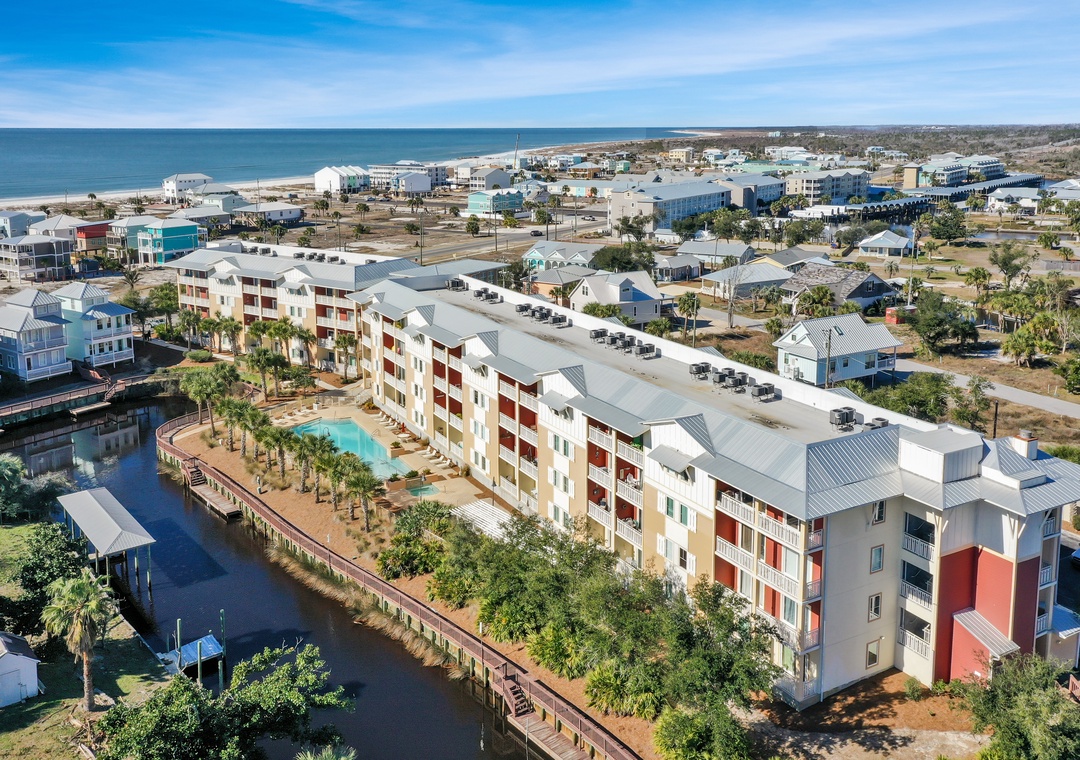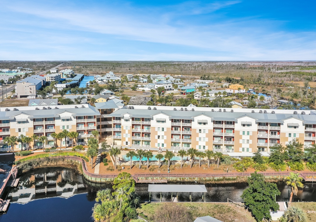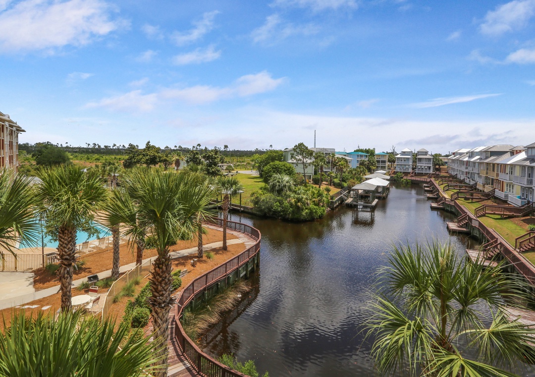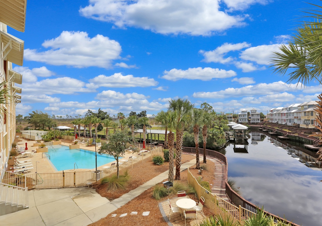 Waterside Village is a gated community located on the West End of Mexico Beach with condo buildings and cottage-style houses. The community layout is centered around the gorgeous, zero-entry community pool and hot tub, which sits on the bank of the canal. The outdoor features of Waterside Village add just the right touch to make any vacation laid back and enjoyable. Around the pool are lounging chairs, outdoor dining space, parkside grills, and boardwalks. The pool and canal have great views from the balcony of Waterside Village Condo 203, and the beach is just a short walk away. Grab the wagon and walk down for a day at the beach, then come back up to let the kids play in the pool while grilling hamburgers for an evening cookout.