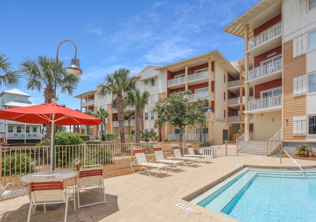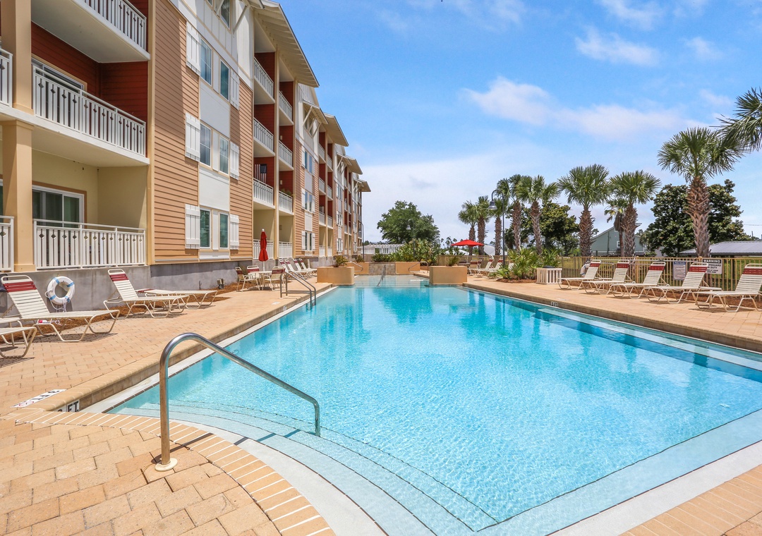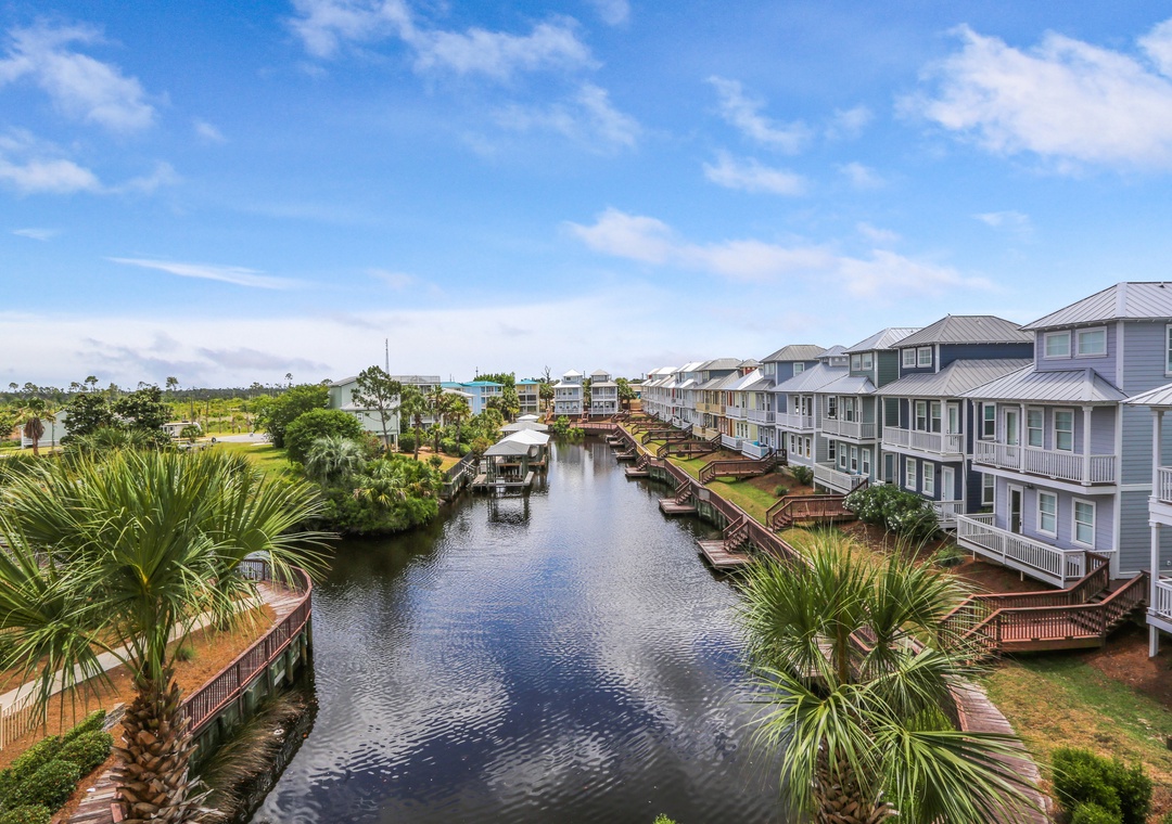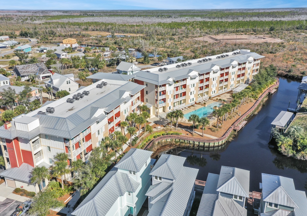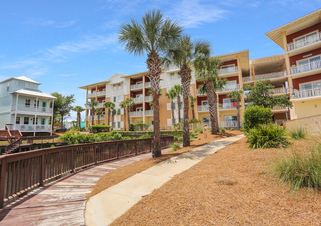 Waterside Village is a gated community located on the West End of Mexico Beach with condo buildings and cottage-style houses. The community layout is centered around the gorgeous, zero-entry community pool and hot tub, which sits on the bank of the canal. The outdoor features of Waterside Village add just the right touch to make any vacation laid back and enjoyable. Around the pool are lounging chairs, outdoor dining space, parkside grills, and boardwalks. The pool and canal have great views from the balcony of Waterside Village Condo 203, and the beach is just a short walk away. Grab the wagon and walk down for a day at the beach, then come back up to let the kids play in the pool while grilling hamburgers for an evening cookout.