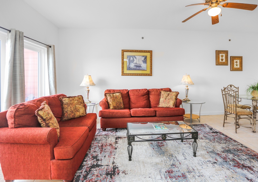 This is a second floor condo in Mexico Beach. This condo complex is equipped with all the amenities to allow a great beach vacation. Complex amenities include a no entry pool, hot tub, an ample amount of pool furniture, elevator and parkside grill. It is a single-floor unit, just right for 6 people. The unit is nicely furnished and has a great view of the gulf, canal and community pool. Enjoy the afternoon breeze or watch the kids swim on the furnished balcony off of the living room.