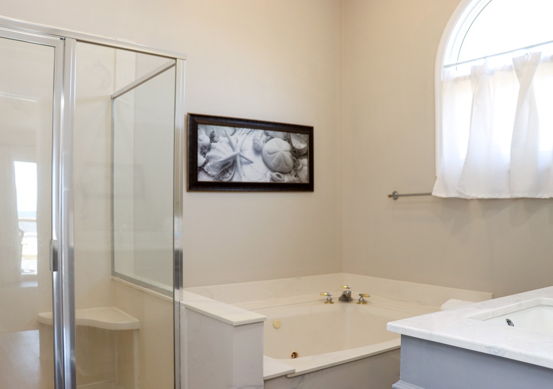 Overall we liked this house a lot. The layout is good (each room is a healthy size- the 2 without beach views share a hallway bathroom, and the beach view room is the master an en suite bath). The kitchen, dining, and living is all one open room, which worked great for us. The beds and couches were comfortable and felt clean. The kitchen was pretty well equipped, and I saw a few nonporous metal pots/pans if that's important to you for dietary reasons. There are shaded and non-shaded areas of the deck, which we (and the dogs) appreciated along with the recess, where you can be outside but escape some of the wind. The house felt clean, and the flooring is updated. There were a couple soft spots in the floor. The indoor dining table was a good size. This is like a true traditional vacation rental vs airbnb style in that you need to use a separate client portal for information and need to bring all essentials (dishwasher detergent, toilet paper, etc). There is not a hot tub as currently listed in the amenities section, they have a large jacuzzi tub in the master en suite. The house is pet friendly, but does require an additional fee payable directly to the management company. We brought 2 dogs, and our fee was $262.50. Not a deal breaker or anything, but we would have preferred to see it in the listing up front. If your party includes young children, older, or disabled members, you may want to know that the dunes were just restored very high directly behind the home making beach access more challenging. It was quite tough for our parents and me to navigate every time we wanted to get the beach and back, and even my husband (fit in his late 20s) agreed it was pretty difficult. Perhaps this will settle some with time and rain, or a boardwalk will be built. I'm not great at estimating measurements, but if I was standing on the beach looking to the house at the base of the dune, I could not see the lower half of the house. I'm about five and a half feet tall. There was some loud, all-day beach construction related to this near the house which was unfortunate for us, but should be completed soon if it's not already. If the access was made easier, we would definitely stay here again.- Posted: 4/27/2022