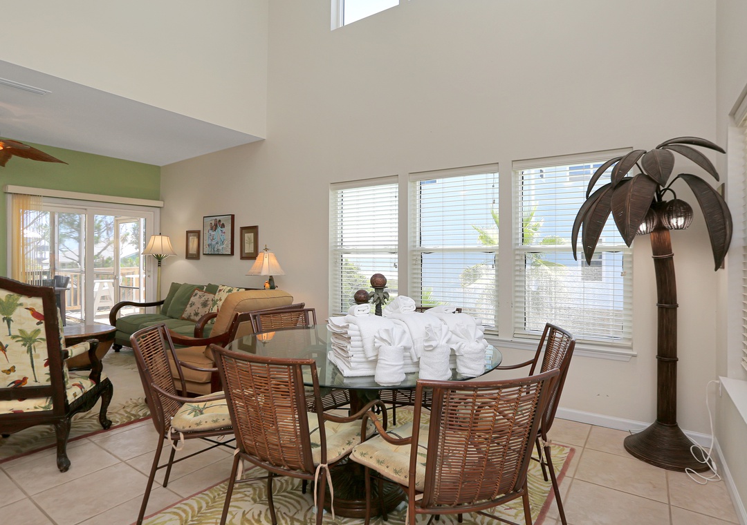 The top balcony was the best view for a sunset and a clear sky. The beach was a block away which was perfect. There was a body of water that was calm for paddle boarding. Seashells everywhere and crab hunting at night is perfect for kids. More of a local vibe which we loved. Beach was not crowded at all and loved how friendly everyone was. Would def visit again.- Reviewed On: 6/21/2025