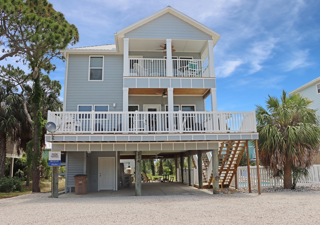 YellowBird is one of the few single family homes available on Indian Pass that also has a private pool. This beautiful 4 bedroom, 3.5 bath home is just a short walk to the beach and has views from almost everywhere inside. You get the best of both worlds with the privacy of Indian Pass Beach and your own private pool. There is also a screened porch as well as other decking so that you have no choice but to enjoy the outdoors. But, if you don’t want to spend all of your time outside, indoors you have lots of room for everyone to spread out and still enjoy one another. This home is accommodating to all the family including pets (fees do apply limit 2 dogs). If you’re a stargazer, you’ll love having a telescope here for your use.